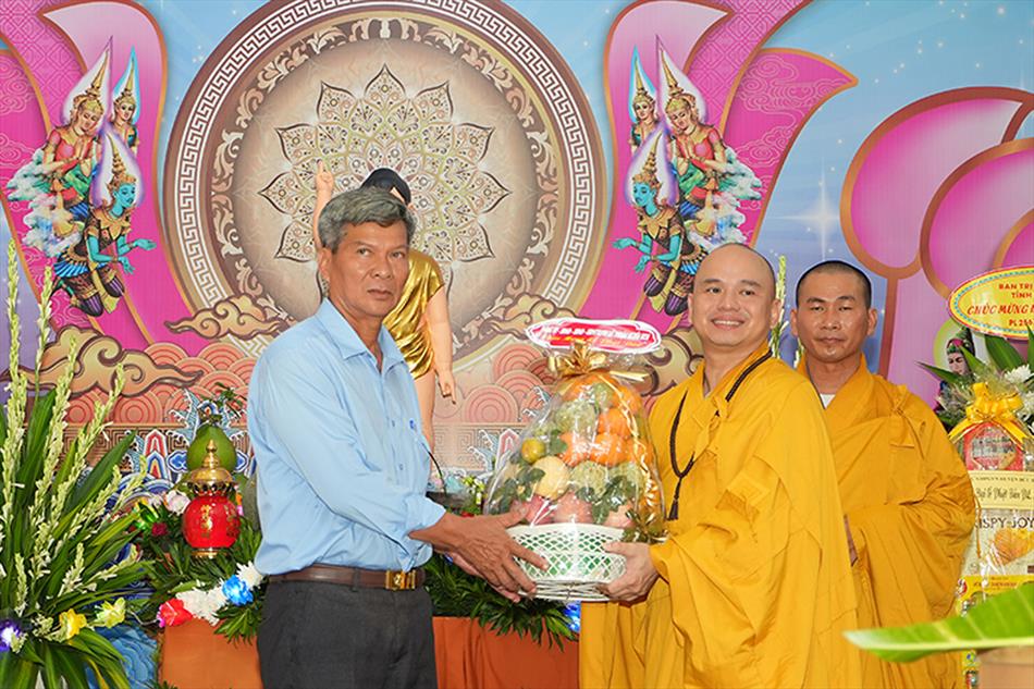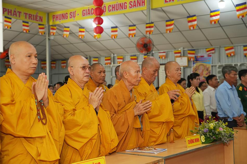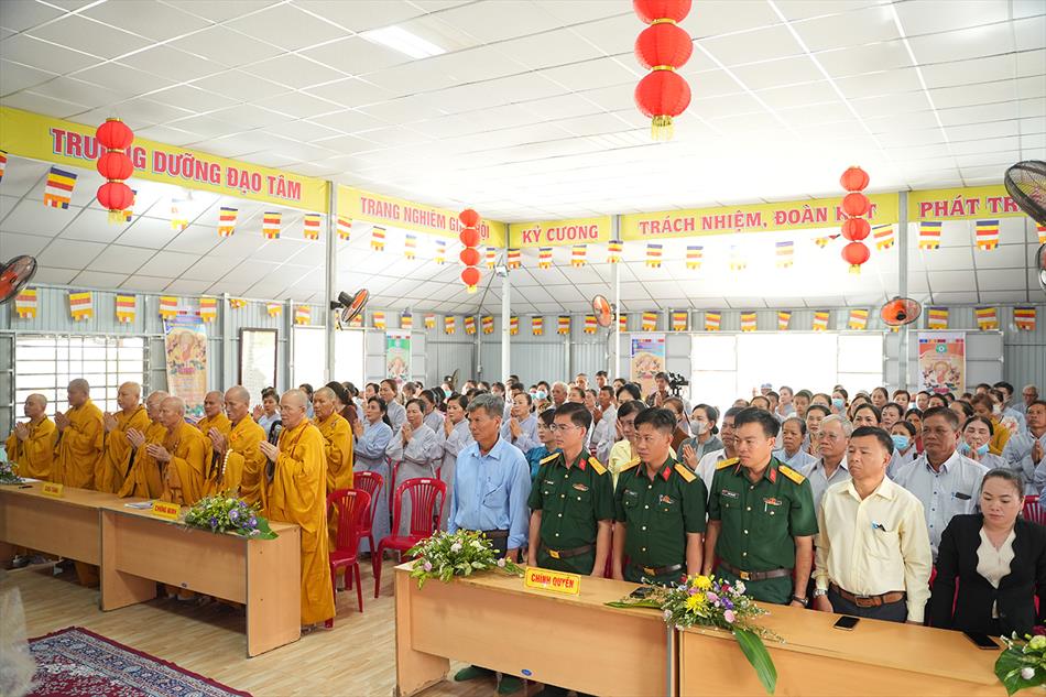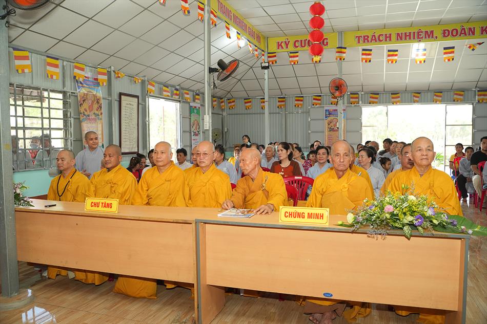 Buổi lễ được cung nghinh sự quang lâm chứng minh của Hòa thượng Thích Huệ Hồng – CM BTS GHPGVN tỉnh Long An, CM BTS GHPGVN huyện Thạnh Hóa, Hòa thượng Thích Quảng Ý – CM BTS GHPGVN tỉnh Long An, Hòa thượng Thích Minh Thiện – UV HĐTS, Phó Trưởng Ban Hoằng pháp TƯ, Trưởng BTS GHPGVN tỉnh Long An, Thượng tọa Thích Quảng Tâm – UV HĐTS – Phó Trưởng Ban Thường trực BTS GHPGVN tỉnh Long An, Đại đức Thích Lệ Duyên – Phó Trưởng BTS kiêm Chánh Thư ký BTS GHPGVN tỉnh Long An, Thượng tọa Thích Đức Hoàng – Phó Trưởng Ban Trị sự GHPGVN tỉnh Long An, Đại đức Thích Lệ Ngôn – Phó Trưởng Ban Trị sự kiêm Trưởng Ban Hoằng pháp BTS GHPGVN tỉnh, Trưởng BTS GHPGVN huyện Thạnh Hóa, Đại đức Thích Giác Huệ – Phó Trưởng BTS GHPGVN huyện, cùng chư tôn đức thành viên BTS GHPGVN huyện, chư tôn đức Tăng, Ni đồng tham dự.
