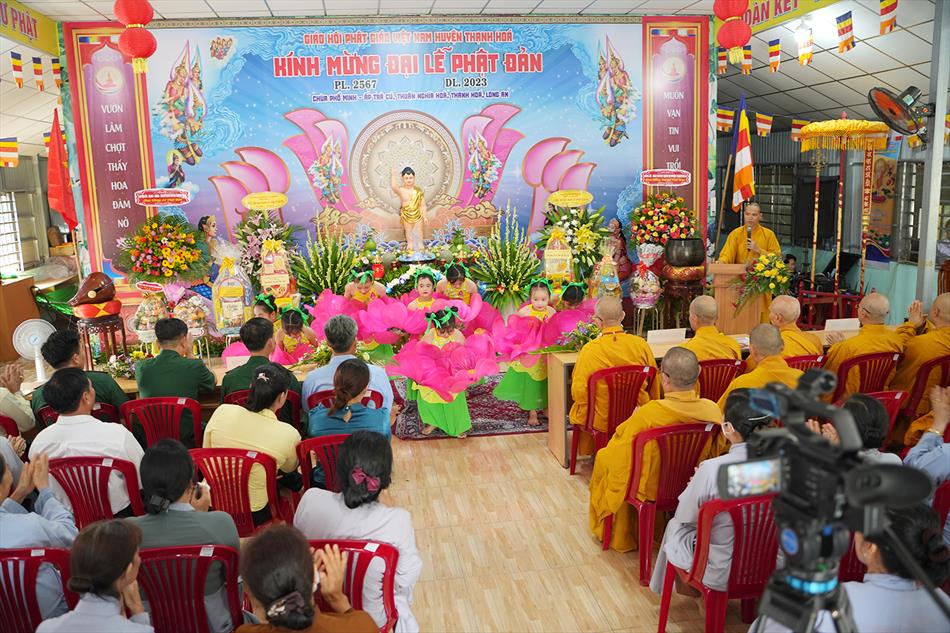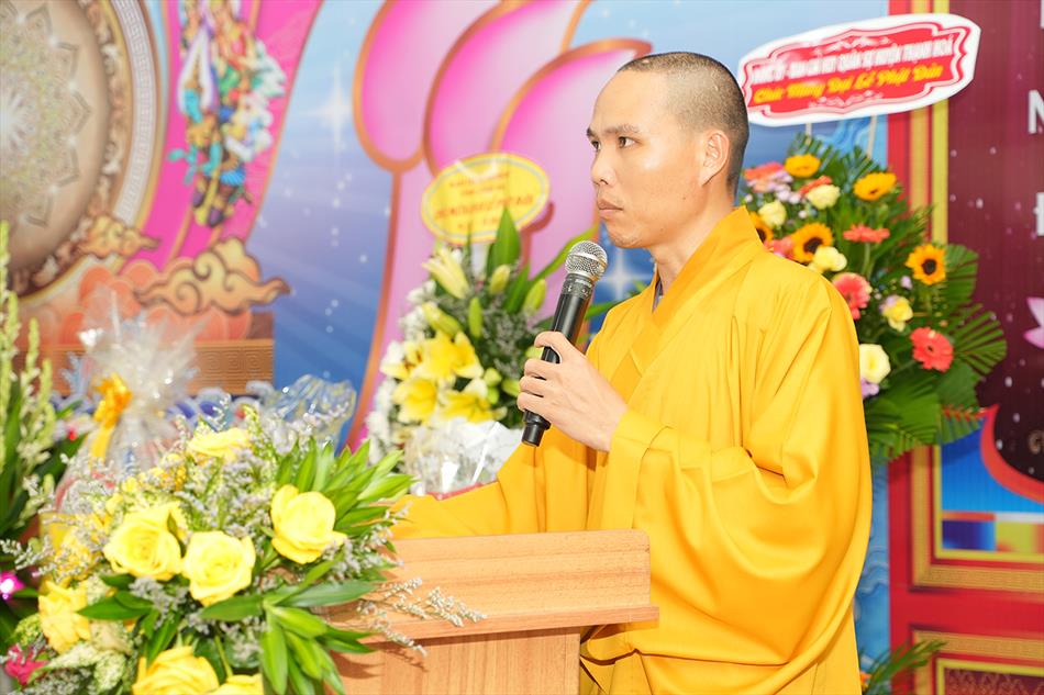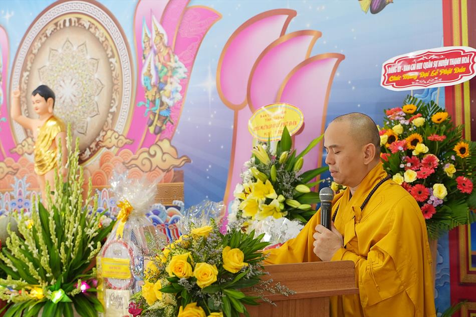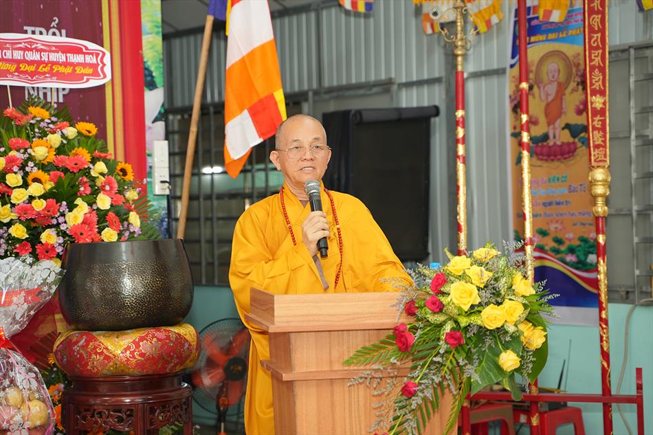 Đại đức Thích Lệ Ngôn – Phó Trưởng BTS, Trưởng Ban Hoằng pháp GHPGVN tỉnh Long An, Trưởng BTS GHPGVN huyện Thạnh Hóa đã thay tuyên đọc ý nghĩa Phật đản của Ban Hoằng pháp TƯ, đồng thời Đại đức đã tỏ lòng tri ân đến Chư tôn Hòa thượng Chứng minh BTS Phật giáo tỉnh, tri ân sự quan tâm, chỉ đạo của Hòa thượng Thích Minh Thiện – Trưởng BTS GHPGVN tỉnh Long An và các cấp chính quyền lãnh đạo đã luôn hỗ trợ về mọi mặt để Phật giáo huyện Nhà được phát triển và đồng hành cùng dân tộc.