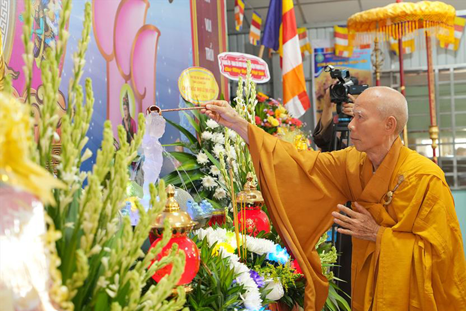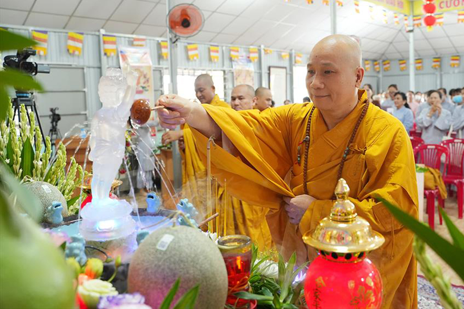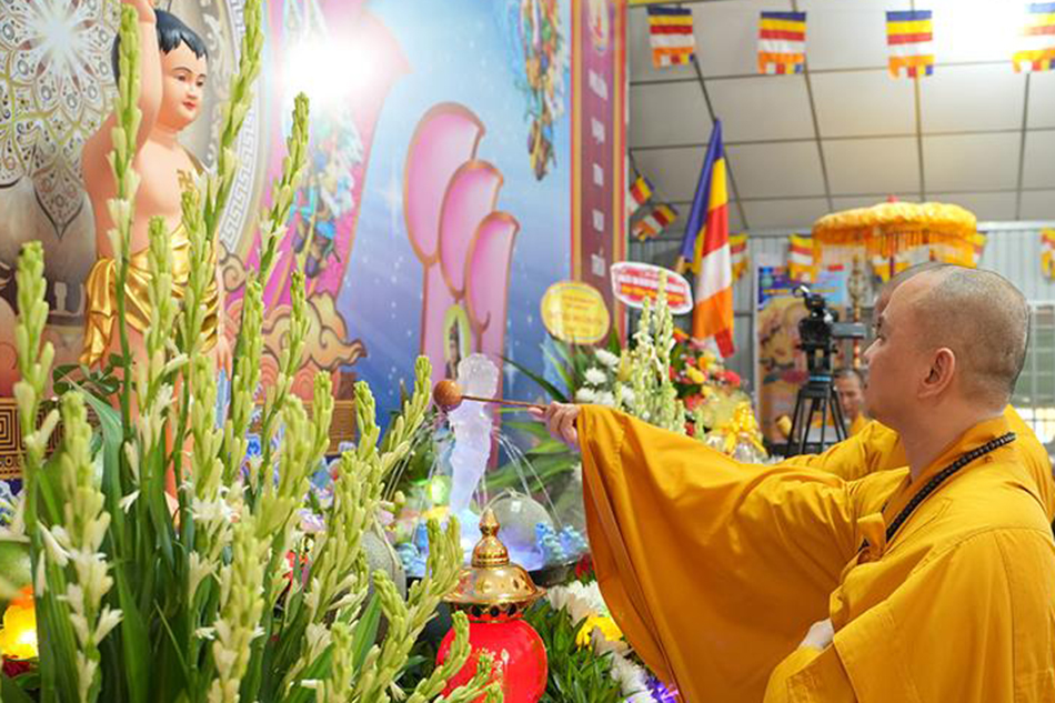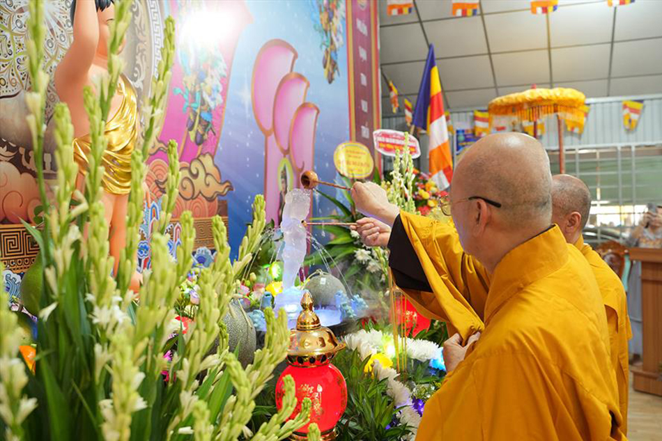 Tiếp đó, Chư tôn đức đã niêm hương bạch Phật, sái tịnh và thực hiện nghi thức tắm Phật và kết thúc trong tinh thần hoan hỷ.