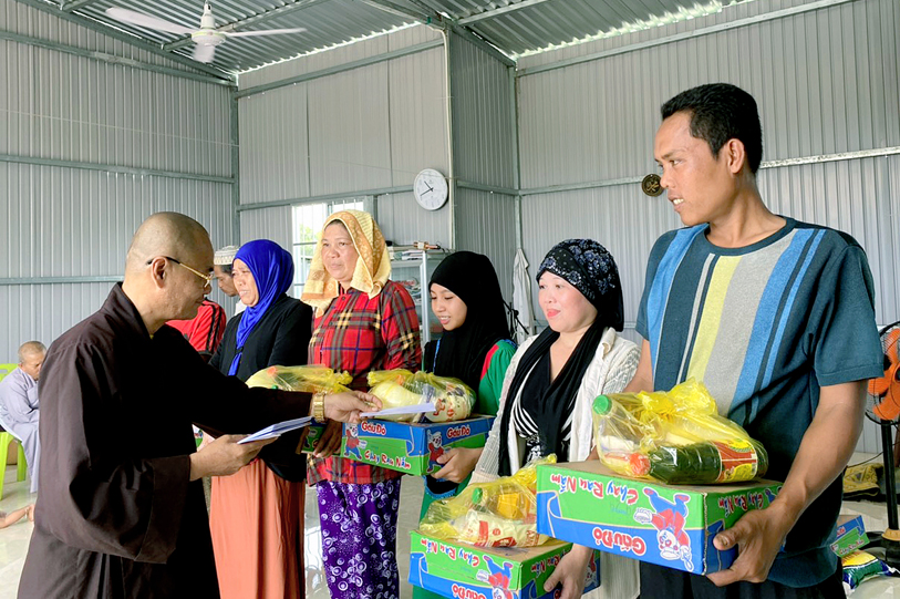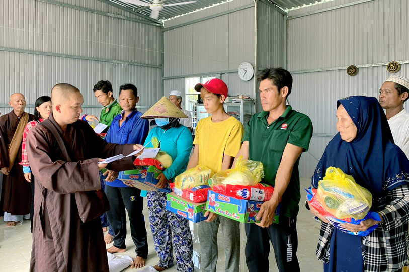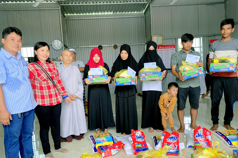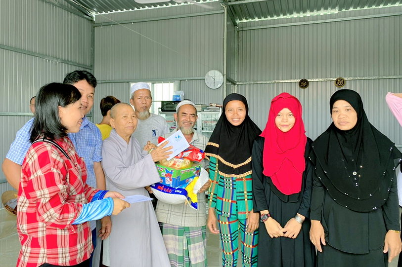 Theo sự chỉ đạo của HT. Thích Minh Thiện- Uỷ viên HĐTSTƯ, Phó Ban Hoằng pháp trung ương, Trưởng Ban Trị sự GHPGVN tỉnh Long An, sáng ngày 10/9, chùa Pháp Thạnh, xã Hựu Thạnh, huyện Đức Hoà, tỉnh Long An tổ chức trao 50 phần quà cho đồng bào dân tộc Chăm tại ấp Vườn Xoàn, xã Thuận Nghĩa Hòa, huyện Thạnh Hóa, TỈNH lONG aN.