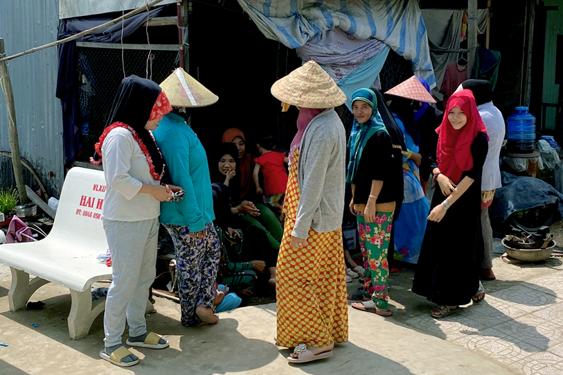 Hiện nay, đồng bào dân tộc Chăm tại ấp Vườn Xoài sống chủ yếu bằng nghề đánh bắt cá, nhà cửa xập xệ, luôn sống trong cảnh thiếu trước hụt sau,… Tuy nhiên, những năm qua, đồng bào dân tộc Chăm luôn chấp hành tốt các chủ trương, đường lối của Đảng, chính sách, phát luật của Nhà nước. Chia sẻ với hoàn cảnh của đồng bào dân tộc Chăm, chính quyền địa phương, các nhà hảo tâm, Phật giáo tỉnh luôn tạo điều kiện cho đồng bào dân tộc Chăm ổn định cuộc sống bằng việc tặng quà, xây nhà tình thương, đại đoàn kết, đưa nước hợp vệ sinh về sử dụng,…