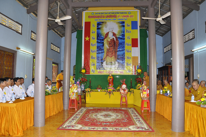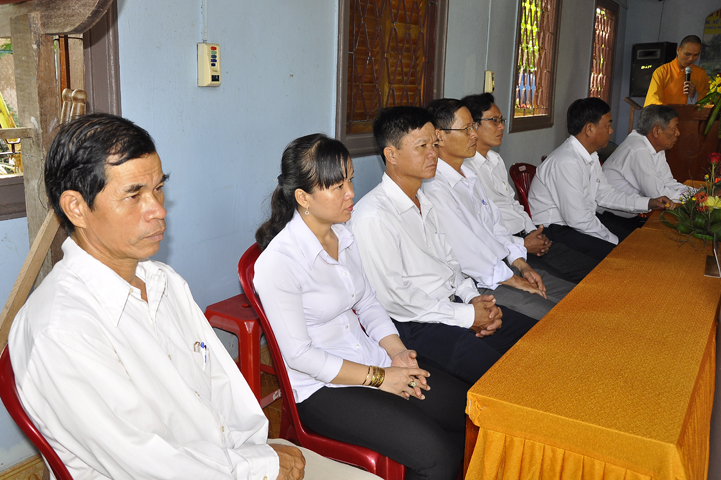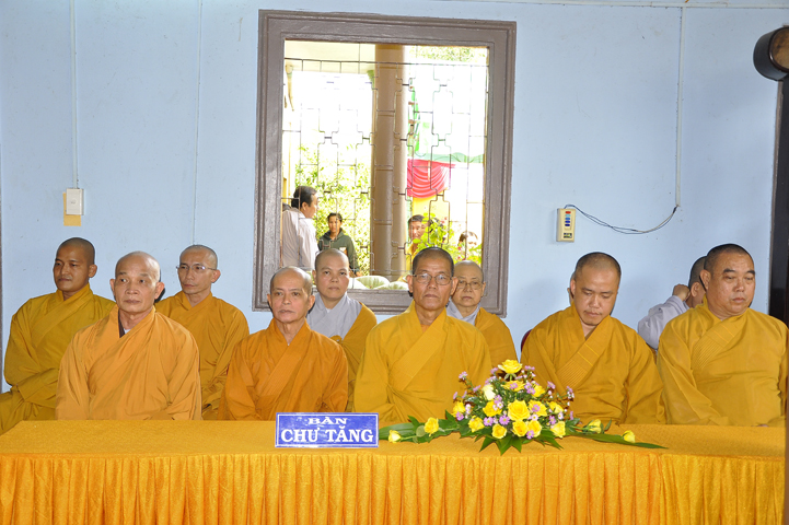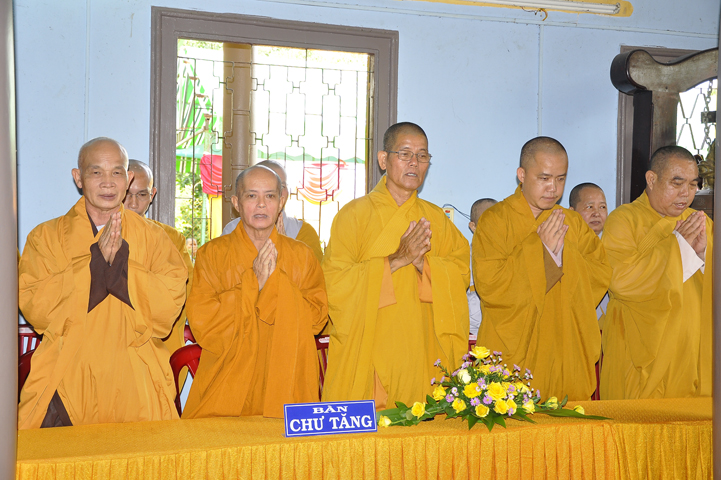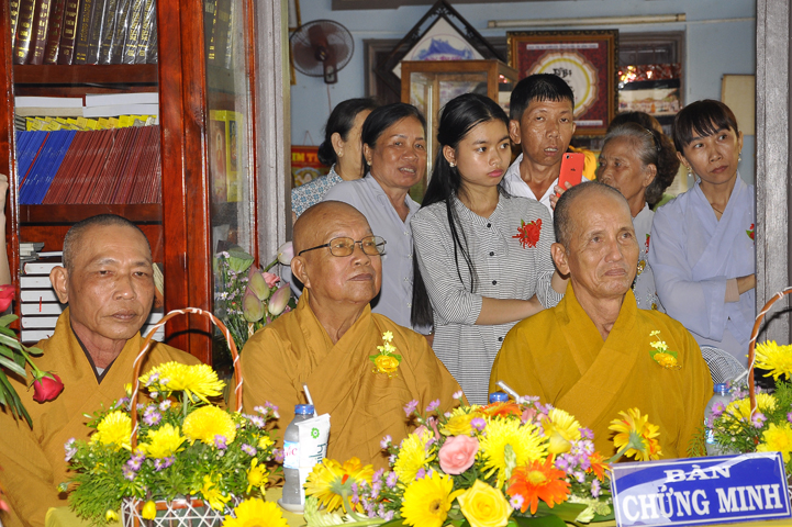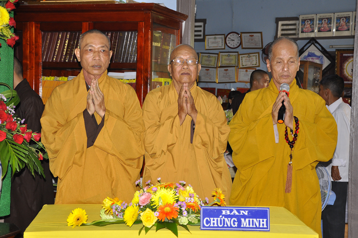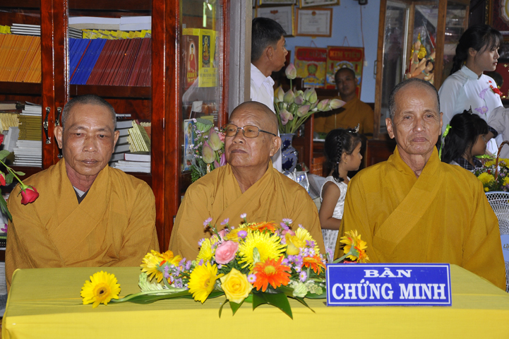 Chứng minh buổi lễ, ban tổ chức được cung tiếp Hòa thượng Thích Thiện Huệ: Chứng minh Ban Trị sự Giáo hội Phật giáo Việt Nam tỉnh Long An; Hòa thượng Thích Huệ Hồng: Phó ban Trị sự giáo hội Phật giáo Việt Nam tỉnh Long An; Hòa thượng Thích Quảng Ý: Trưởng ban Trị sự Phật giáo liên huyện Tân Thạnh, thị xã Kiến Tường, Vĩnh Hưng; Đại Đức Thích An Nhựt: Trưởng ban Hướng dẫn Phật tử Giáo hội Phật giáo Việt Nam tỉnh Long An; Đại Đức Thích Lệ Thông: Chánh thư ký Phật giáo liên huyện Tân Thạnh, thị xã Kiến Tường, Vĩnh Hưng; Ni sư Thích nữ Tuệ Đăng: Phó ban Trị sự Giáo hội Phật giáo Việt Nam tỉnh Long An; cùng chư tôn thiền đức Tăng Ni trụ trì các tự viện.