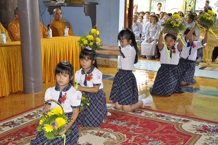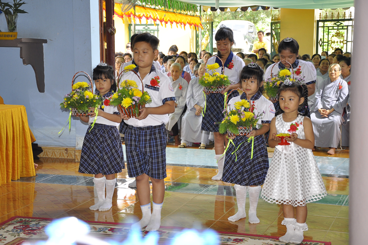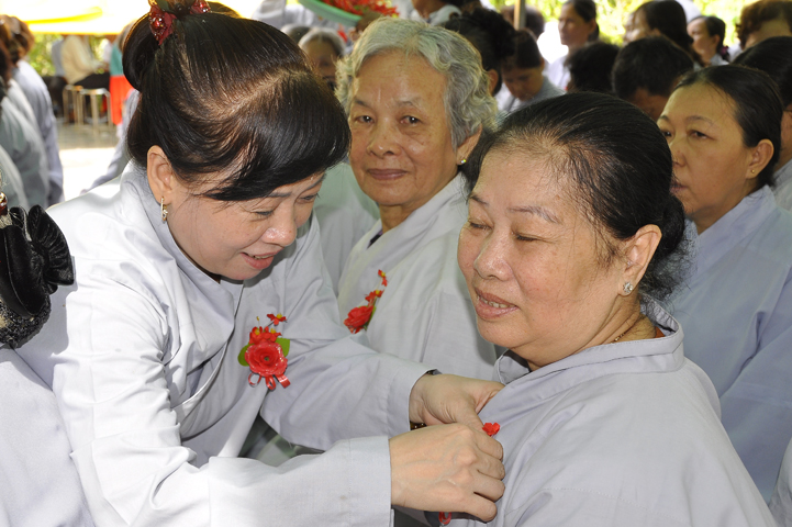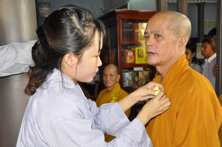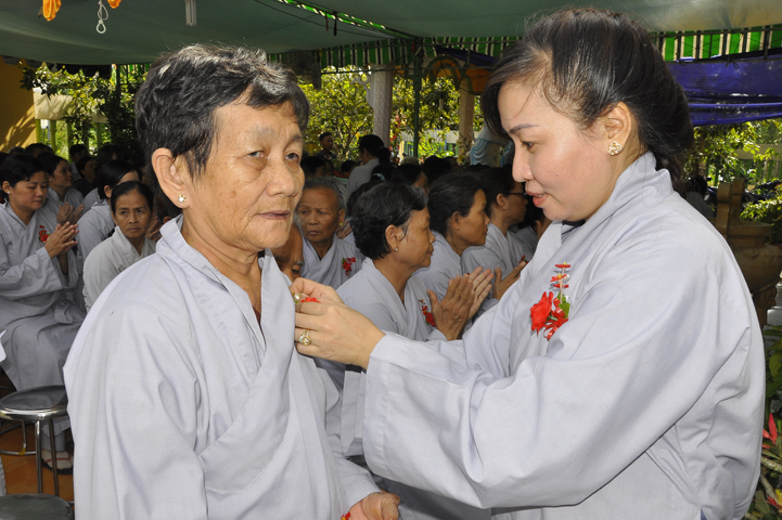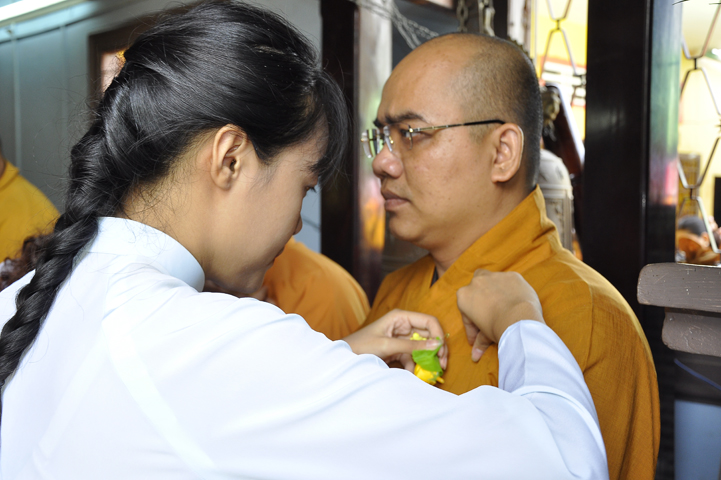 08g30 Lễ Vu Lan – Cài hoa hồng diễn ra trang nghiêm tại giảng đường chùa Phổ Hương.