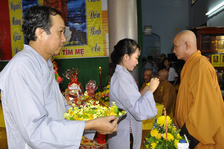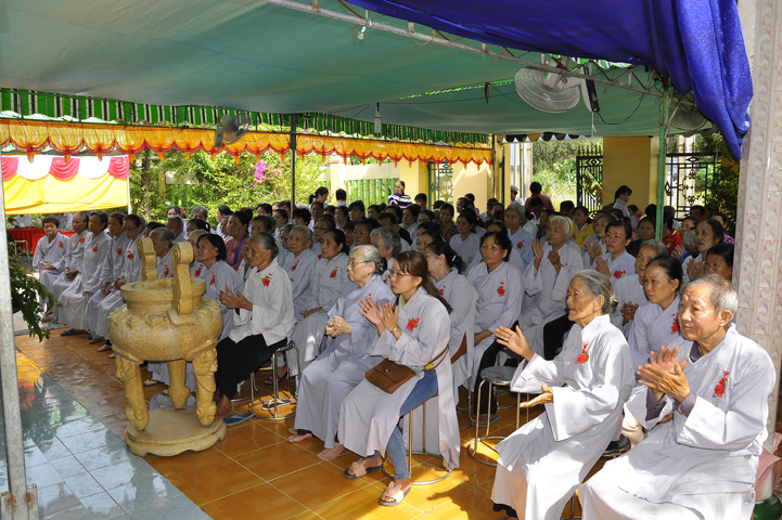 Đặc biệt quý Phật tử được nghe pháp ngữ của hòa thượng Thích Thiện Huệ – Chứng minh Ban Trị sự Giáo hội Phật giáo Việt Nam tỉnh Long An. Trong lời pháp ngữ Hòa thượng nhắc lại truyền thống Luật tạng tu học của đệ tử xuất gia của Đức Phật và Hòa thượng nhắc lại bổn phận của người Phật tử luôn giữ năm giới và làm các việc thiện trong cuộc sống.