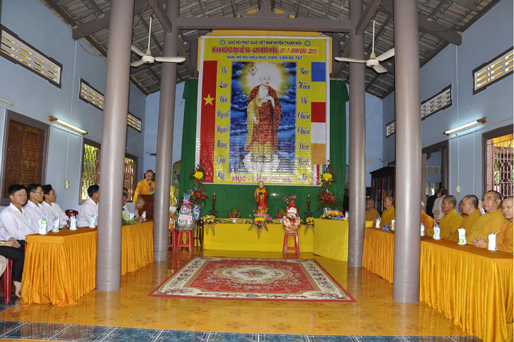 08g00 Ban tổ chức hoan hỷ cung kính đón tiếp quý chư tôn giáo phẩm Tỉnh hội và huyện hội cùng chư tôn đức Tăng Ni quang lâm.