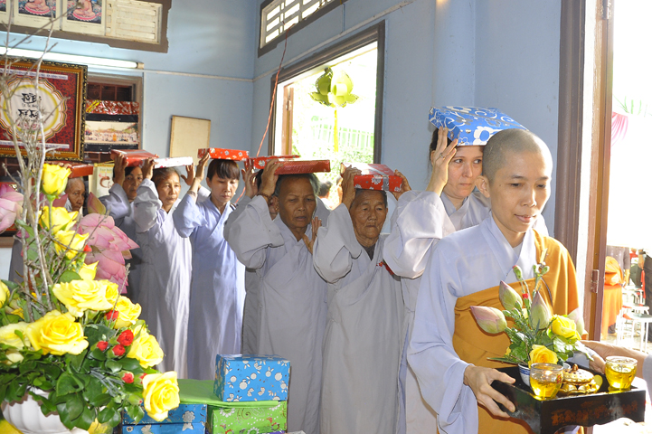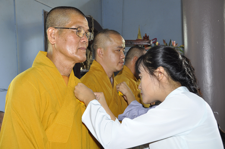 Trong chương trình, quý Phật tử được cô hội tu tọa phước điền dâng Pháp y cúng dường quý chư tôn Tịnh đức để hồi hướng đến cha mẹ quá cố và cha mẹ hiện tiền.