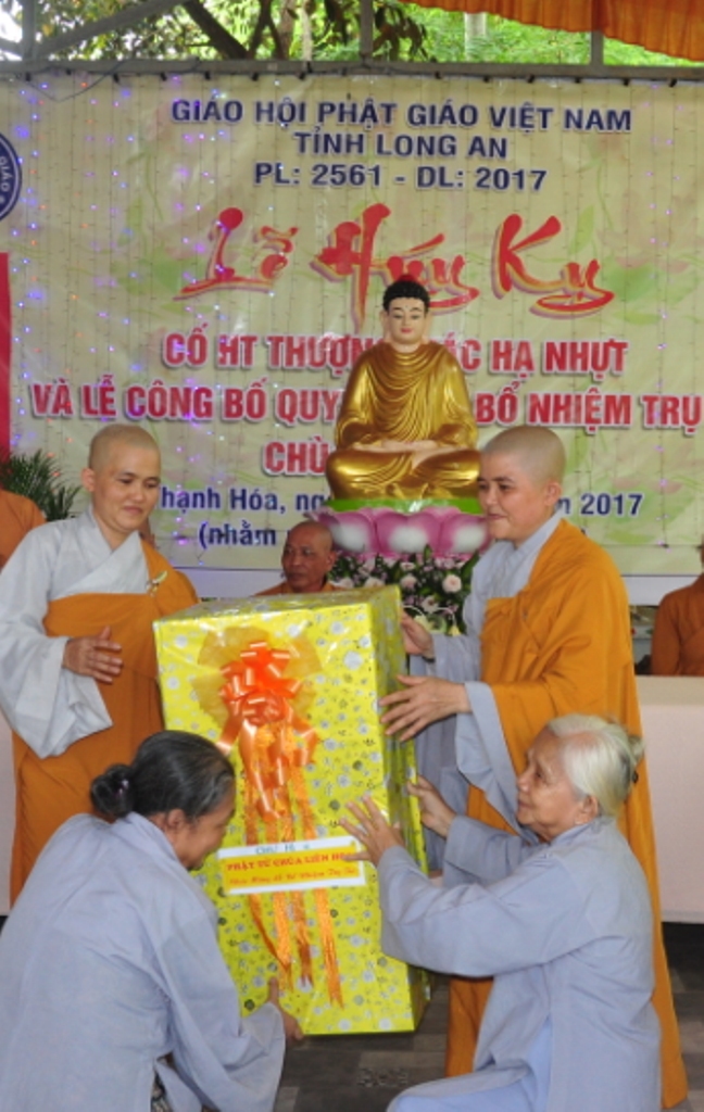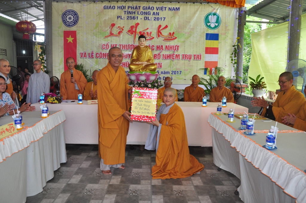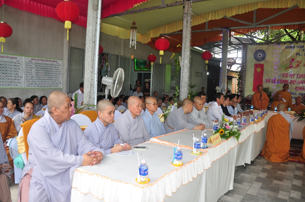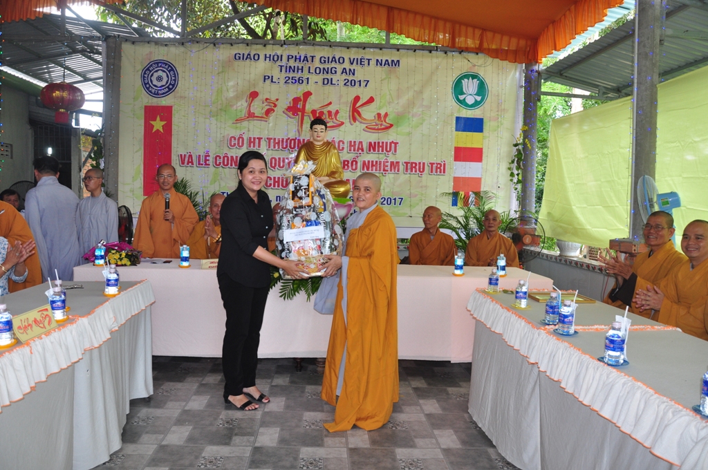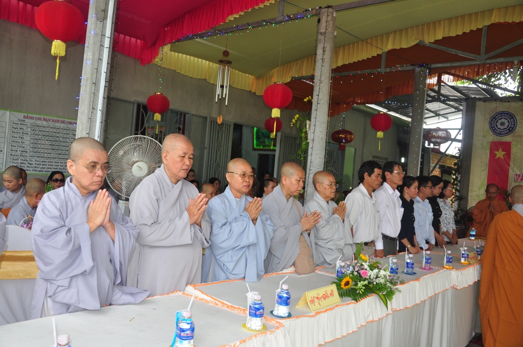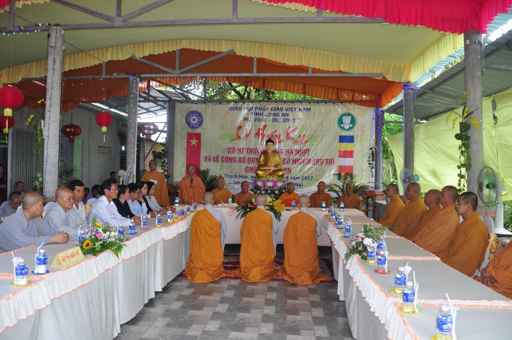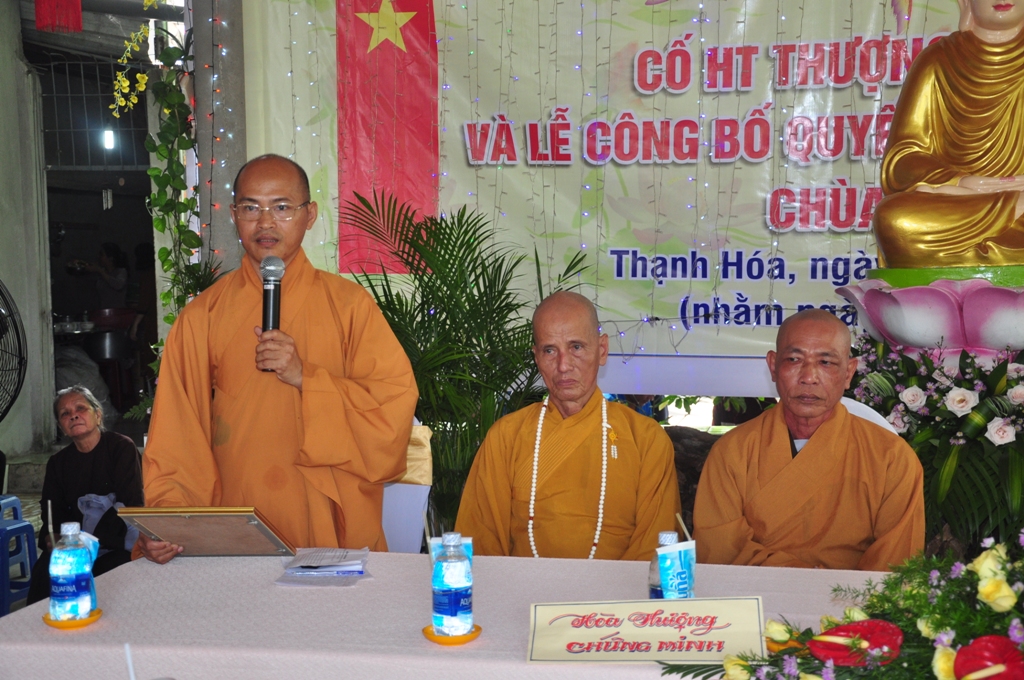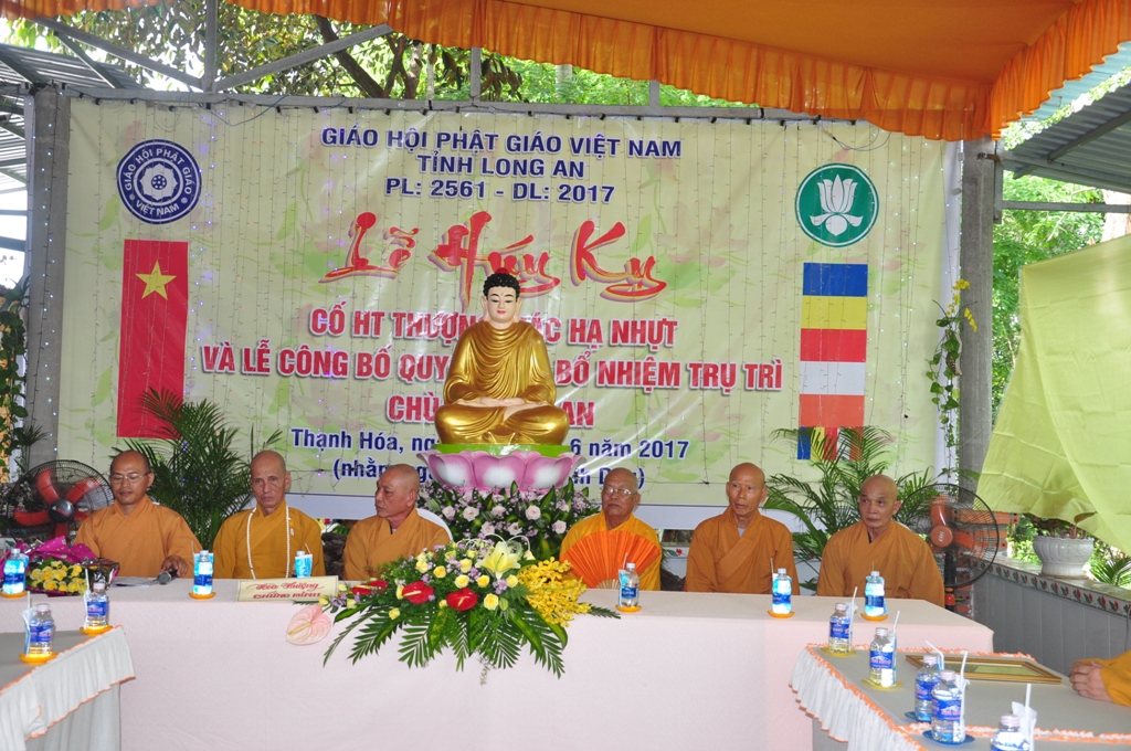 Chứng minh buổi lễ: HT Thích Thiện Huệ – Chứng minh BTS GHPGVN tỉnh Long An; HT Thích Thiện Tâm – Phó trưởng ban BTS kiêm trưởng ban Kiểm soát GHPGVN tỉnh Long An; HT Thích Huệ Hồng – Phó trưởng ban BTS GHPGVN tỉnh Long An, chứng minh BTS GHPGVN huyện Thạnh Hoá; HT Thích Quảng Ý – Trưởng ban BTS GHPGVN liên huyện Tân Thạnh – Kiến Tường – Vĩnh Hưng; ĐĐ Thích Lệ Trí – UV HĐTS, Chánh thư ký BTS GHPVN tỉnh Long An; ĐĐ Thích Lệ Tấn – Phó ban thường trực BTS GHPGVN liên huyện Tân Thạnh – Kiến Tường – Vĩnh Hưng; NT Thích nữ Như Phương – Chứng minh phân ban Ni giới BTS GHPGVN quận Bình Tân; NS Thích nữ Như Hương – Trưởng ban BTS GHPGVN huyện Thạnh Hoá; NS Thích nữ Diệu Phước – UV TT BTS GHPGVN tỉnh Long An.