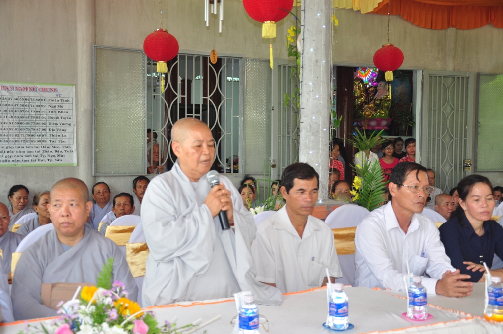 Đạo từ tại buổi lễ, HT Thích Thiện Huệ đã tán dương việc hộ trì Tam Bảo và hoằng pháp tại địa phương của vị tân trụ trì sau khi Cố hoà thượng khai sơn viên tịch đến nay. Hoà thượng đã truyền đạt lời nhắn gửi của HT Thích Minh Thiện (UV HĐTS, Trưởng ban BTS GHGHPGVN tỉnh Long An) đến Sư cô vừa được bổ nhiệm trụ trì: hãy cố gắng hết sức mình để hoàn thành tốt nhiệm vụ trụ trì của một ngôi tự viện để báo Phật ân đức và công đức của Tổ Thầy.