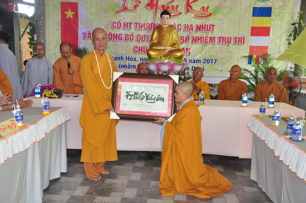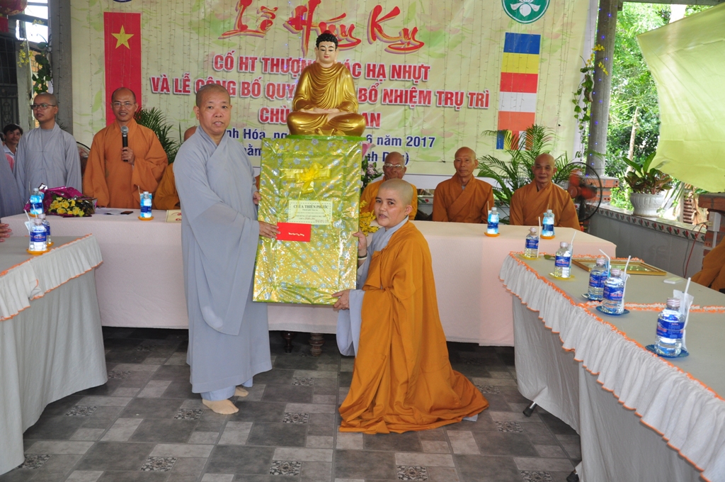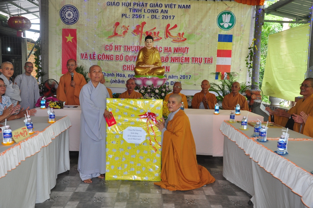 ĐĐ Thích Lệ Trí thay mặt Thường trực BTS GHPGVN tỉnh Long An đã tuyên đọc quyết định bổ nhiệm Sư cô Thích nữ Như Cảnh đảm nhiệm trụ trì chùa Phước An. Sau đó, HT Thích Thiện Tâm đã trao quyết định đến vị tân trụ trì.