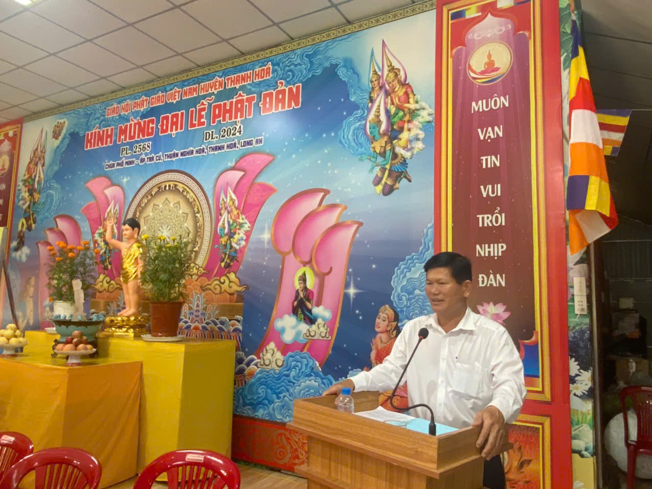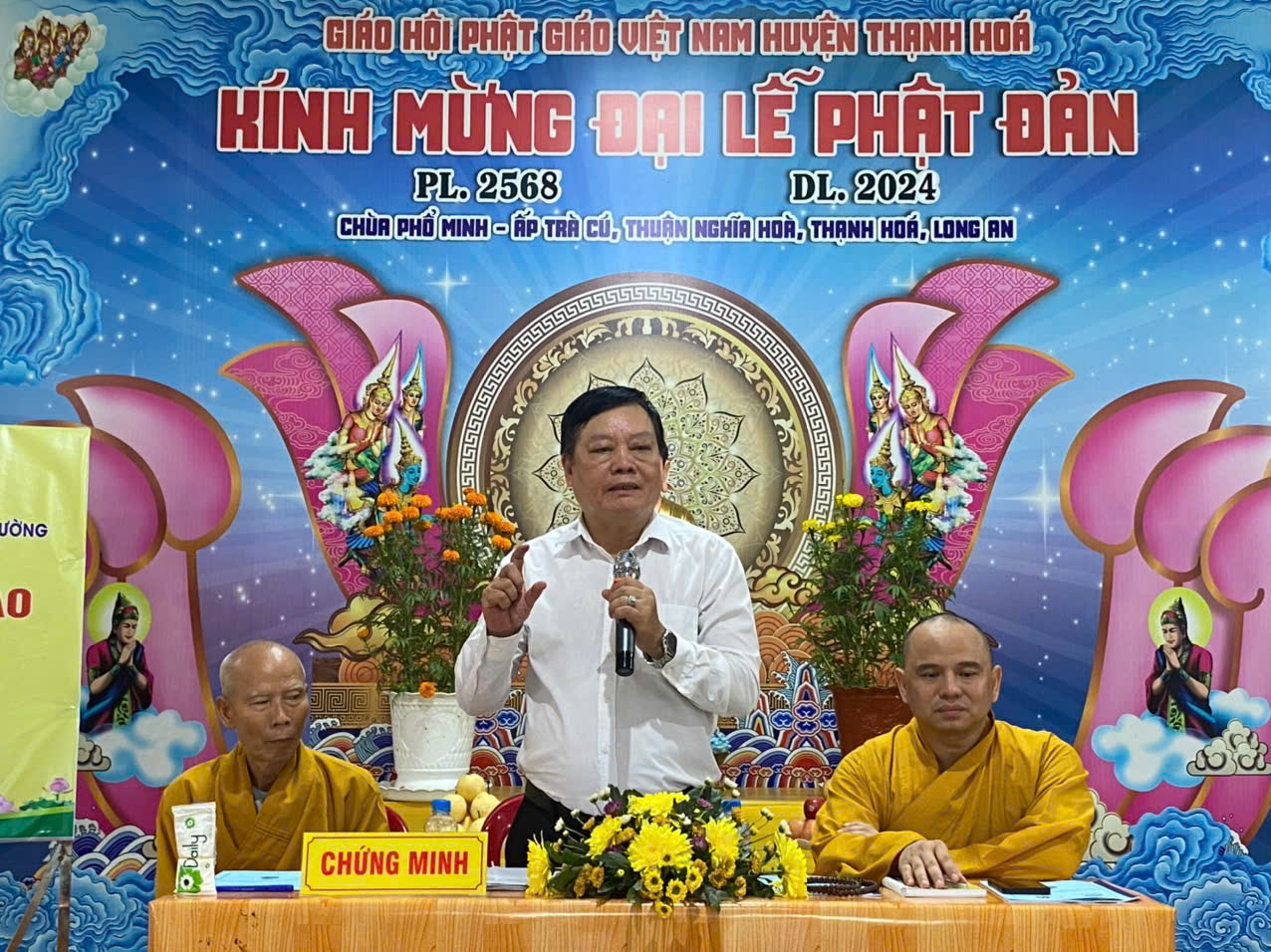 Về phía Chính quyền có Ông Phan Văn Nam – Chuyên viên UBMTTQVN tỉnh Long An; ông Lê Văn Lý – Phó Chủ tịch UBMTTQVN huyện Thạnh Hóa, đại diện UBMTTQVN các xã – thị trấn và 100 Phật tử đồng tham dự .