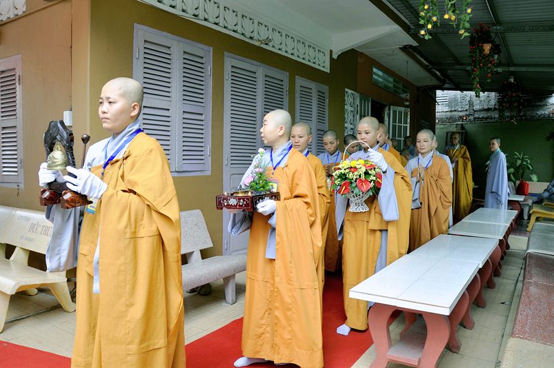 Trong quang cảnh thanh tịnh của Đàn tràng, sự hiện diện trang nghiêm của chư Tôn đức Tam sư Thất chứng chứng minh và sự giúp đỡ của chư Tôn đức Ni Hộ đàn, các nghi thức hành lễ tại phạm vi Giới trường được diễn ra vô cùng trang trọng.
