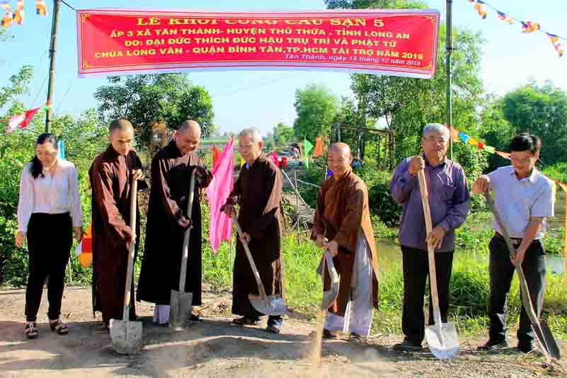 Tại buổi lễ Đại đức Thích Trung Hậu đại diện chư Phật tử chùa Long Vân hoan hỷ phát biểu khi được tài trợ xây dựng cầu và với mong muốn rằng việc thi công xây dựng cầu Sạn 5 thuận lợi. Việc xây dựng Cầu sẽ giúp được bà con nơi đây đi lại thuận tiện trong sinh hoạt và giúp các em học sinh an tâm đến trường.