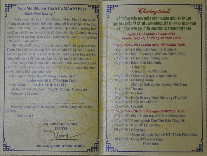 Trân trọng kính mời quý Phật tử hoan hỷ tham dự và hỗ trợ cho lễ trai đàn được thành tựu tốt đẹp.