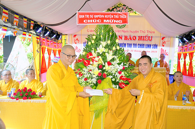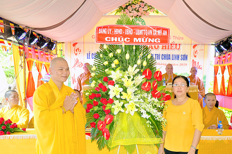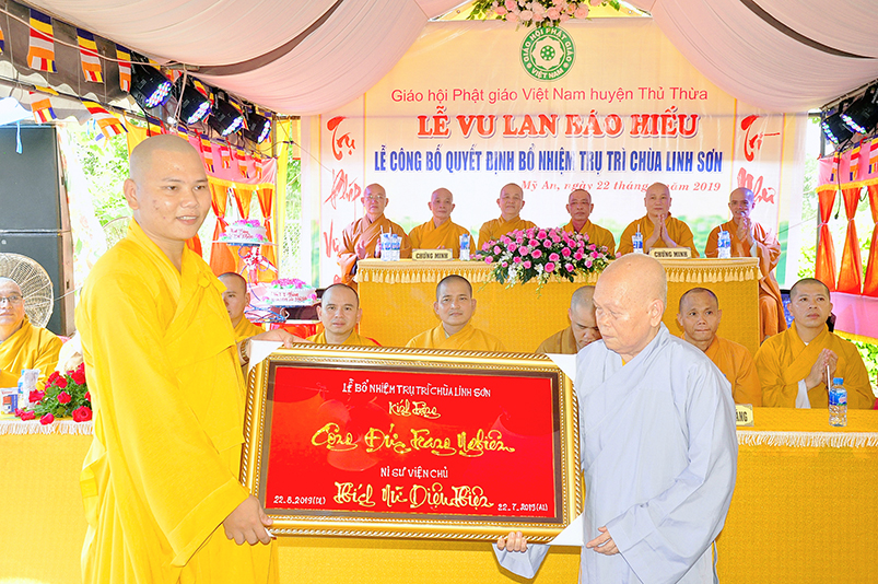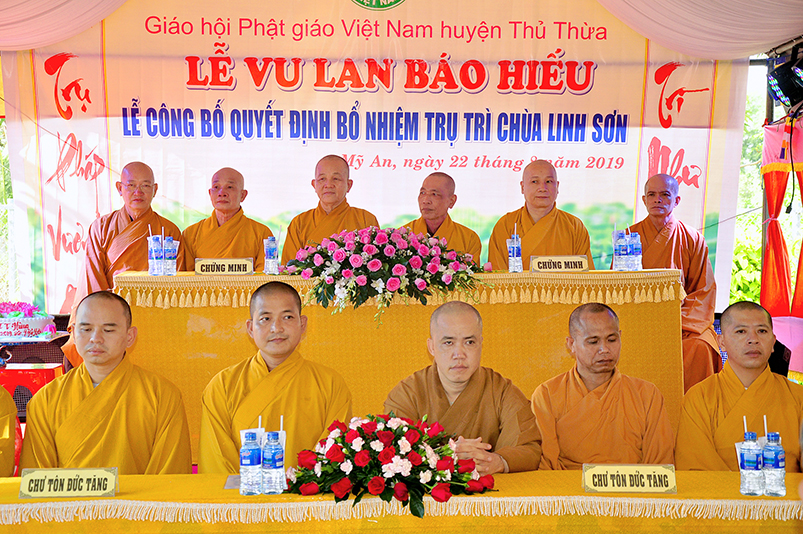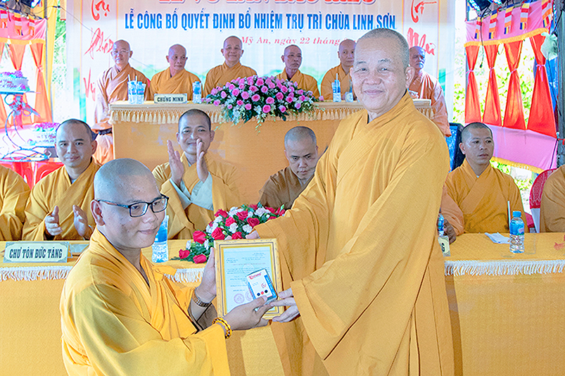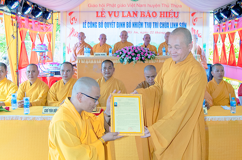 Thừa uỷ nhiệm của Thường trực BTS GHPGVN tỉnh Long An, ĐĐ. Thích Lệ Duyên – Chánh Thư ký BTS GHPGVN tỉnh Long An đã tuyên đọc Quyết định Bổ nhiệm trụ trì. Căn cứ Quyết định Bổ nhiệm Đại đức Thích Thiện Hùng, thế danh Nguyễn Trung Hưng, sinh ngày 10/09/1992 tại huyện Thủ Thừa, tỉnh Long An, chứng minh nhân dân số 301501802, cấp ngày 03/06/2019 tại Công an tỉnh Long An, chứng nhận Tăng Ni số 23981, cấp ngày 30/08/20013. Hộ khẩu thường trú tại chùa Linh Sơn, ấp 1, xã Mỹ An, huyện Thủ Thừa, tỉnh Long An giữ nhiệm vụ trụ trì Chùa Linh Sơn, ấp 1, xã Mỹ An, huyện Thủ Thừa, tỉnh Long An.