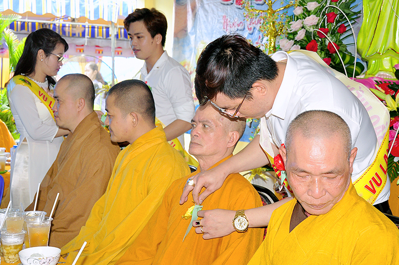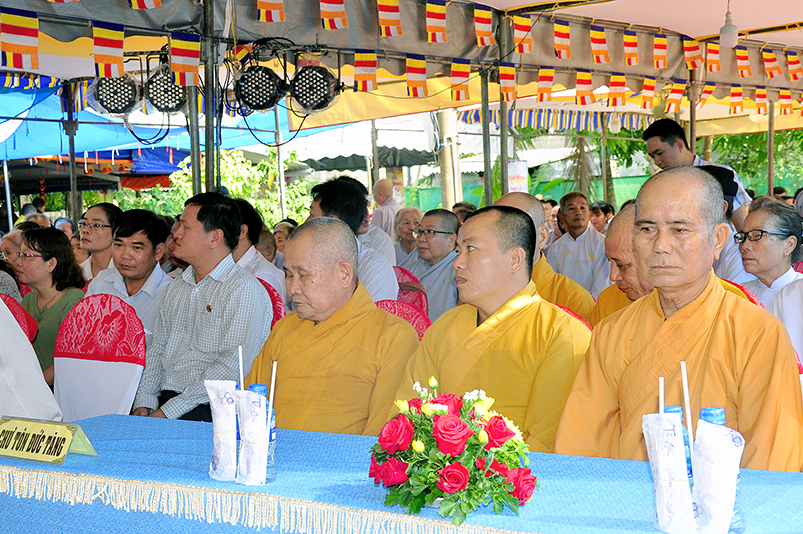 Quang lâm Chứng minh tham dự buổi lễ: Hoà thượng Thích Thiện Huệ – Chứng minh BTS Phật giáo tỉnh Long An; HT. Thích Minh Thiện – Ủy viên Hội Đồng Trị Sự, Phó Trưởng ban Hoằng pháp Trung Ương, Trưởng Ban Trị sự GHPGVN tỉnh Long An; HT. Thích Chơn Đạo – Giáo thọ trường Trung cấp Phật học Long An; Thượng Toạ Thích Minh Thọ – Ủy viên HĐTSTƯ, Phó Ban Trị sự kiêm Trưởng Ban Pháp chế Ban Trị sự GHPGVN tỉnh Long An; Đại Đức Thích Đức Hoàng – Phó Ban Trị Sự GHPGVN tỉnh Long An; Đại Đức Thích Lệ Duyên – Chánh Thư ký BTS GHPGVN tỉnh Long An; Đại Đức Thích Thiện Danh – Phó thư kí văn phòng BTS. GHPGVN Tỉnh Long An; Đại đức Thích Lệ Ngôn – Trưởng Ban Hoằng Pháp GHPGVN tỉnh Long An; Đại đức Thích An Nhựt – Trưởng Ban Hướng dẫn Phật tử GHPGVN tỉnh Long An; Đại đức Thích Huệ Quang – Phó Ban hướng dẫn Phật tử Ban Trị sự GHPGVN tỉnh Long An; Đai đức Thích Hóa Minh – Trưởng BTS.GHPGVN huyện Thủ Thừa; Đại đức Thích Đức Biến – Chánh Thư kí GHPGVN huyện Thủ Thừa; Ni Sư Thích Ninh liên – chứng minh BTS.GHPGVN huyện Thủ Thừa; Ni Sư Thích An Huệ – Phó Ban Trị Sự GHPGVN huyện Thủ Thừa; Ni Sư Thích Ánh Liên – Uỷ viên BTS. GHPGVN tỉnh Long An, cùng chư Tôn đức Tăng Ni Trụ trì các Tự Viện.