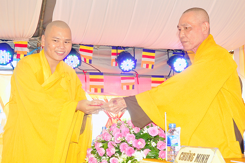 Vừa nhận được trọng trách thiêng liêng cao cả, trước hình ảnh uy nghiêm của Chư Tôn Đức chứng Minh, Đại đức Tân Trụ trì đã phát nguyện sẽ nối tiếp ánh sáng Phật pháp, làm rạng rỡ Tổ Tông, Phật pháp ngày được huy hoàng, nguyện dấn thân làm tròn trọng trách, tốt đạo đẹp đời, kế thừa và phát huy noi theo gương hạnh của người xưa, xiển dương Phật pháp truyền khắp thế gian. Xin hiến dâng thân xác làm viên ghạch nhỏ đắp xây ngôi nhà Phật pháp. Nguyện tròn đời lấy sự giải thoát làm mục tiêu, lấy Trí huệ làm sự nghiệp, lấy Giới luật làm vị Đạo Sư, lấy chúng sanh làm trường học, lấy tình thương làm chất liệu xây dựng cuộc đời, có như thế mới đền đáp ân đức ơn Tổ Thầy, Tam Bảo và Đàn Na Tín chúng.