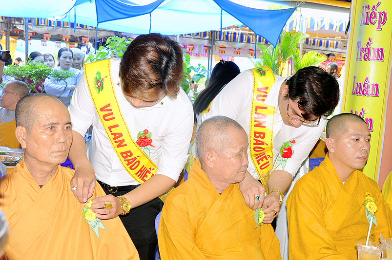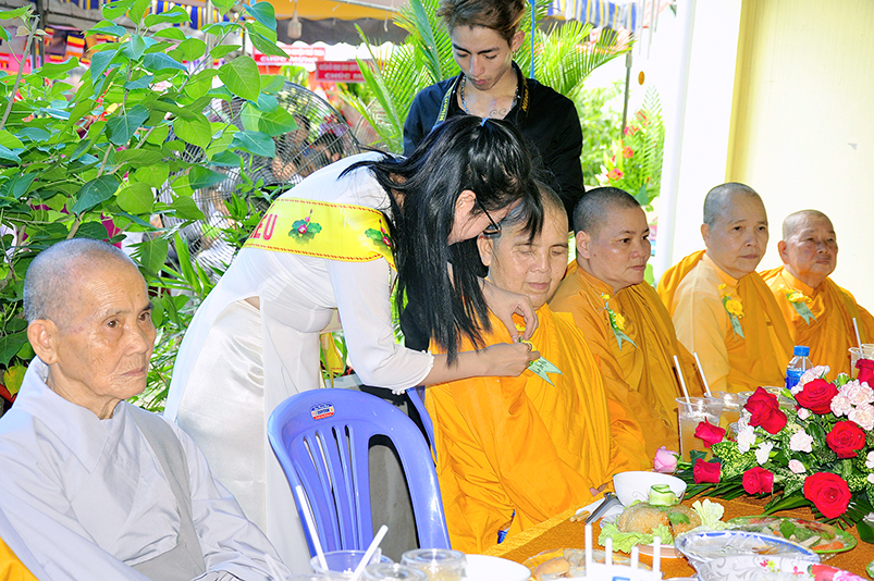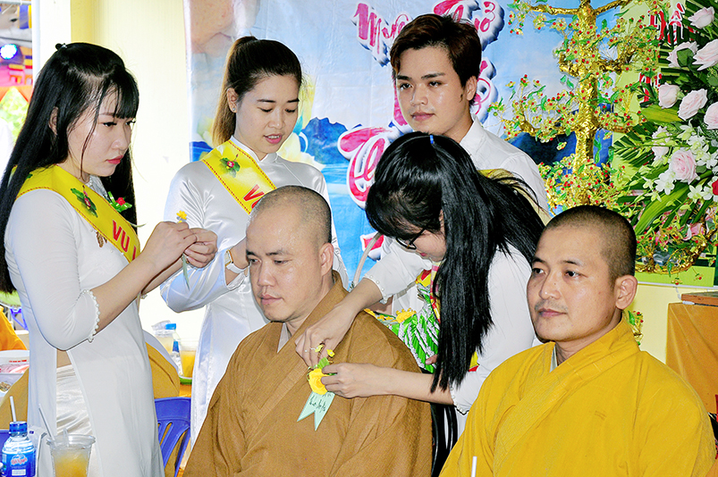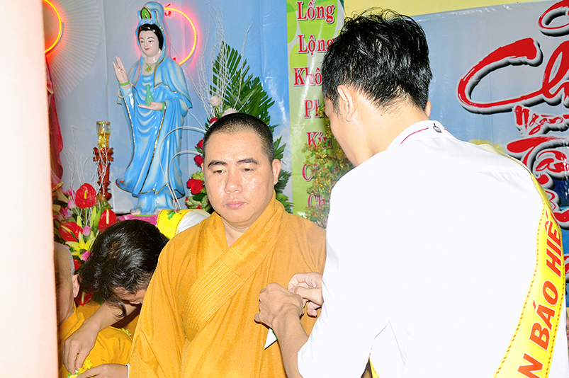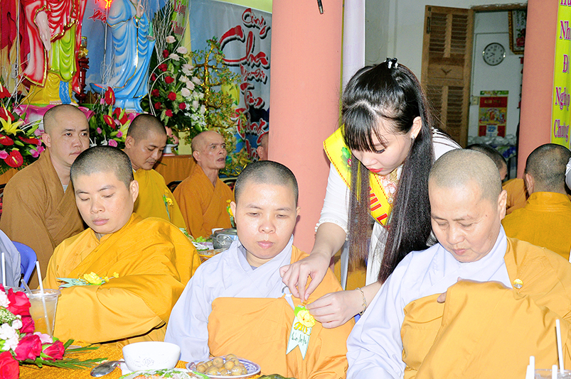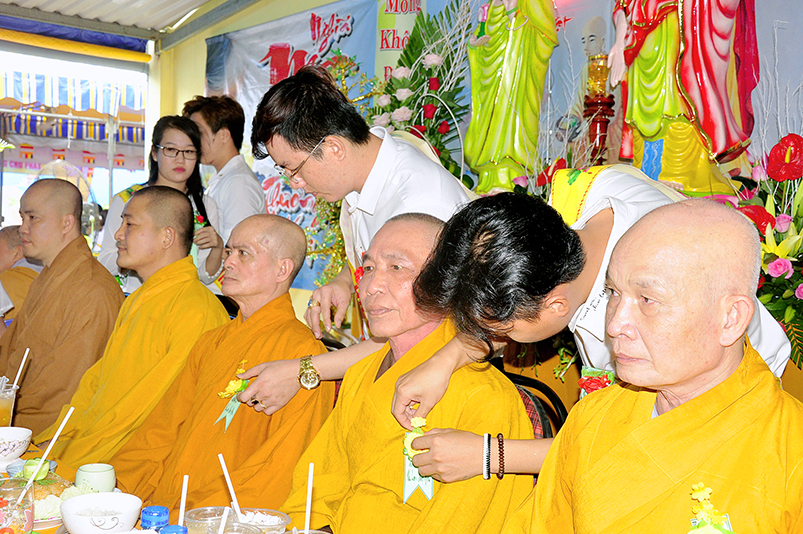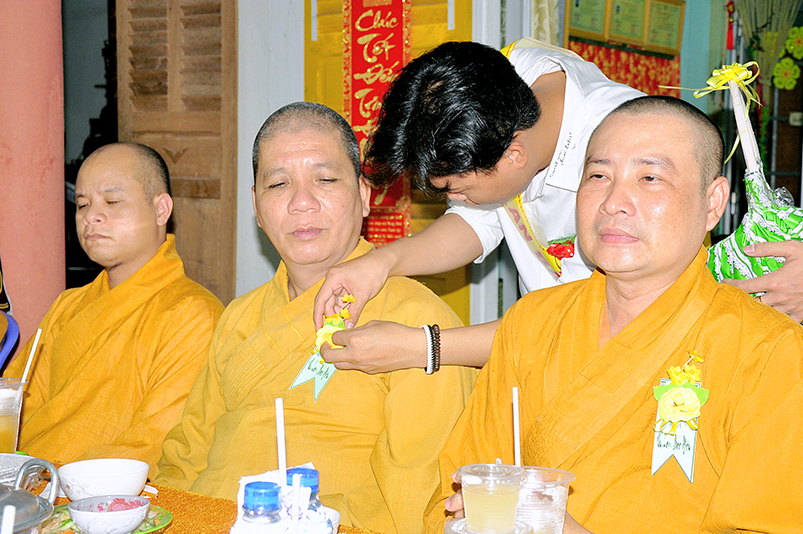 Nhân lễ Bổ nhiệm trụ trì Đại đức tân trụ trì và quý Phật tử tổ chức lễ cài Hoa hồng và dâng cúng Pháp y đến Chư tôn đức Tăng Ni.