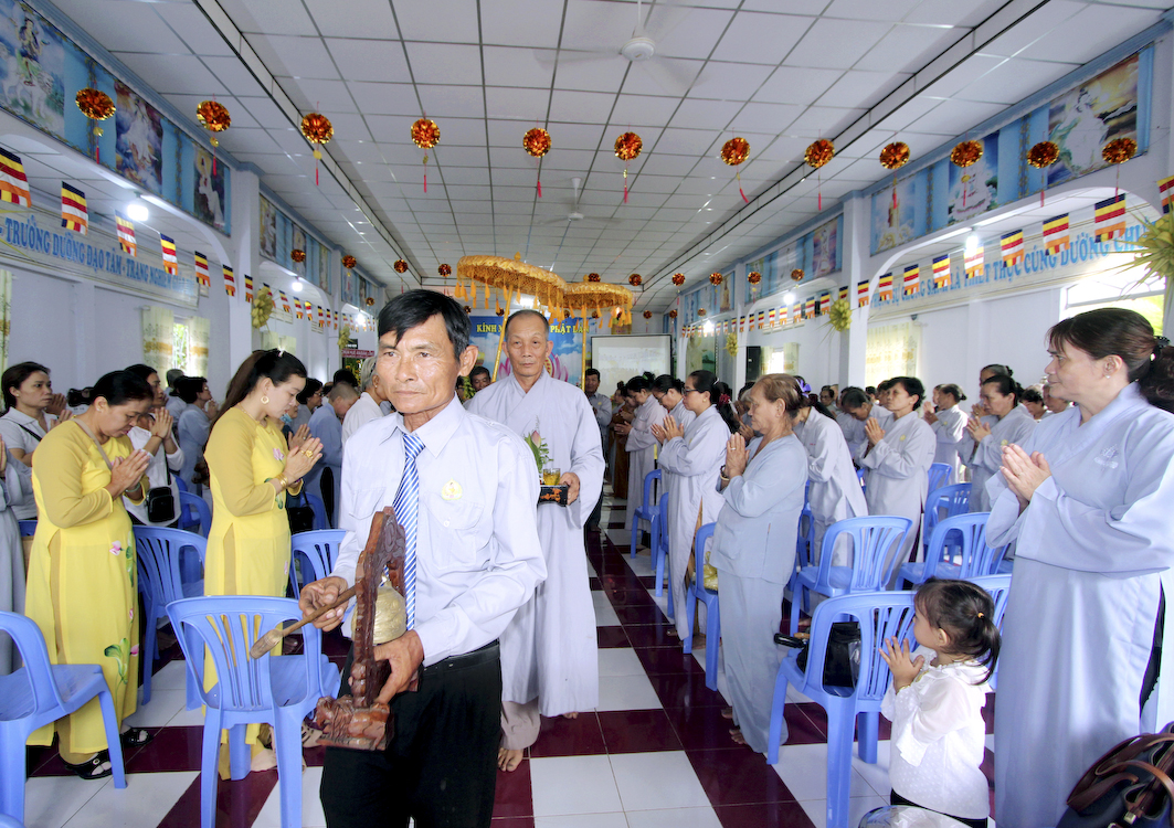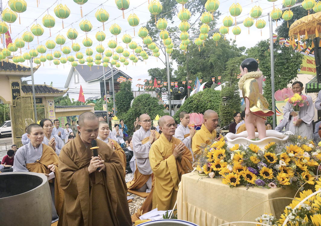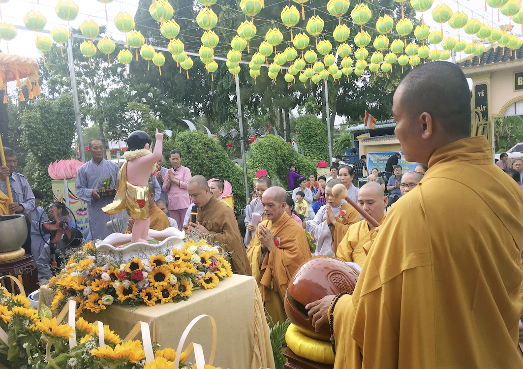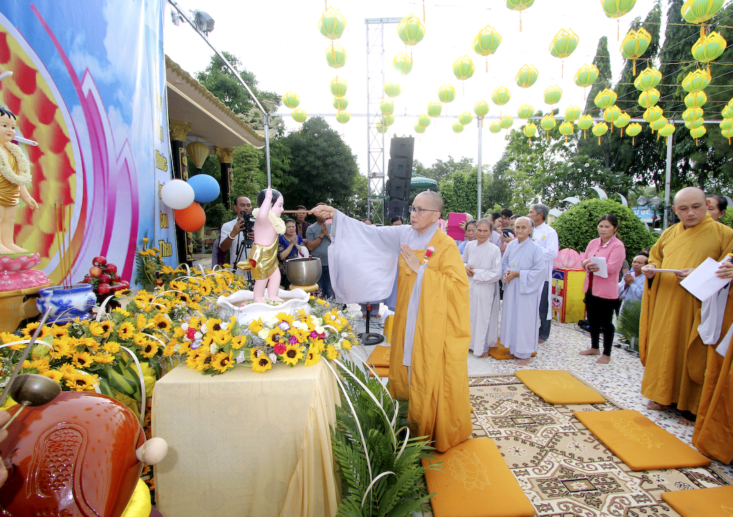 Sau nghi thức hành chánh là Lễ Tắm Phật theo truyền thống Phật giáo do Đại đức Thích An Nhựt – Trưởng Ban Hướng Dẫn Phật Tử GHPGVN tỉnh Long An làm sám chủ và chư Tôn đức Tăng Ni Phật tử đồng tham dự .