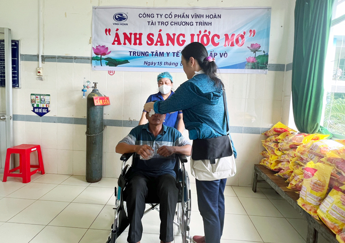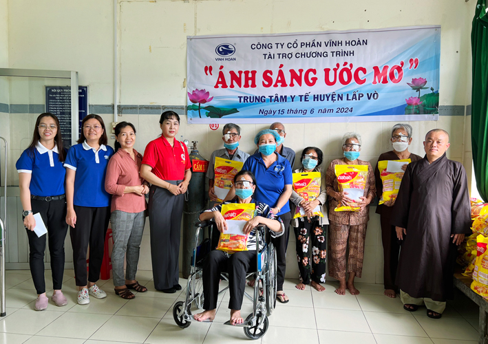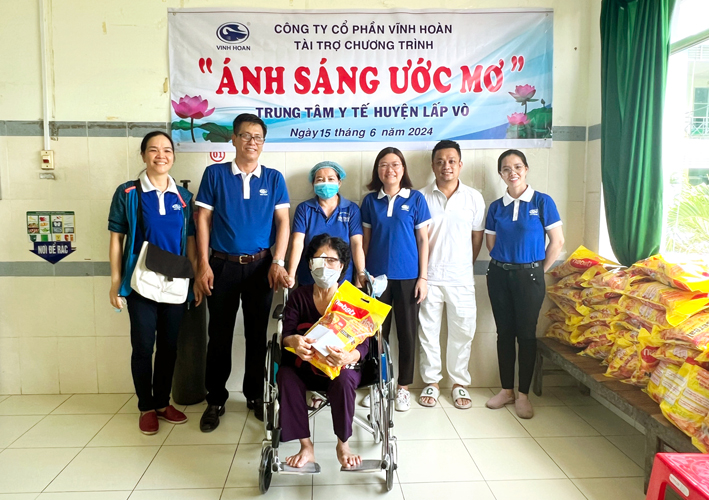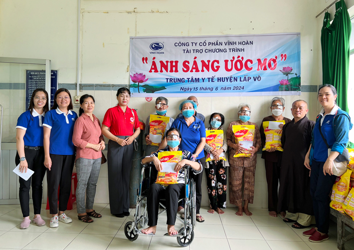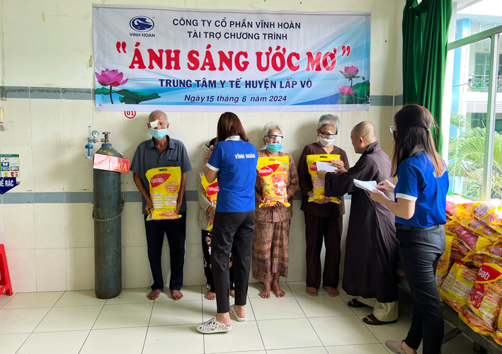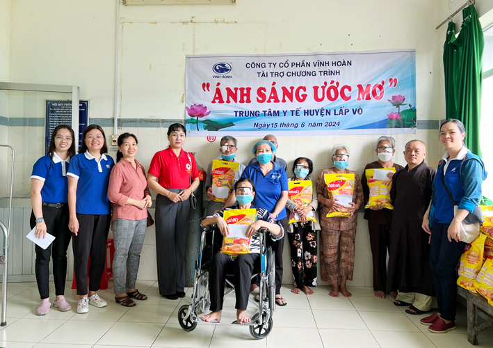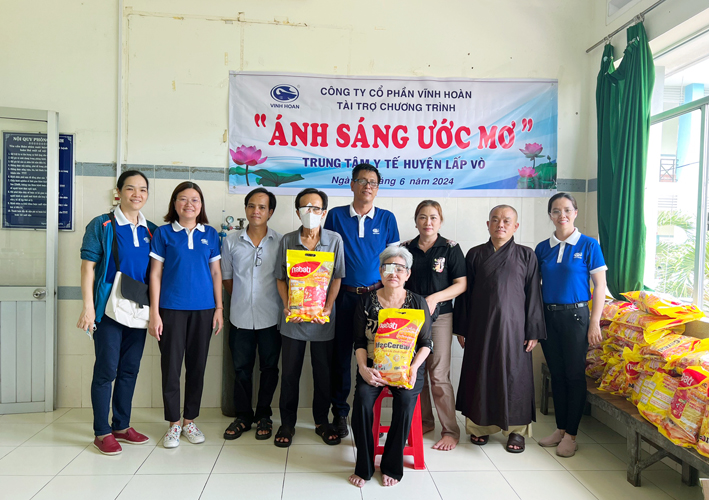 Đồng hành trong chuyến đi này, đại diện Cty Vĩnh Hoàn là Bà Hồ Thị Như Nguyệt – trưởng phòng hành chánh dân sự cùng các nhân viên trong đoàn, đã nhiệt tình quan tâm chăm sóc các bệnh nhân; đặc biệt là các Y bác sĩ ở đây rất chu đáo, ân cần trấn an các vị lớn tuổi, tạo không khí thân tình khiến cho mọi người thoải mái tâm lý trước giờ phẫu thuật.