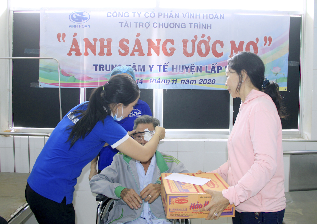 Ngày 14 tháng 11 năm 2020, thực hiện chương trình “Ánh sáng ước mơ”, đoàn từ thiện Công ty cổ phần Vĩnh Hoàn kết hợp cùng Đại đức Thích An Phúc – Trưởng ban Từ thiện Tổ đình Kim Cang, Thủ Thừa, Long An đã đến huyện Lấp , tỉnh Đồng Tháp tài trợ phẫu thuật mắt cho bà con vùng sâu vùng xa thiếu điều kiện y tế chăm sóc, luôn khao khát có được đôi mắt tinh anh lúc tuổi về chiều.