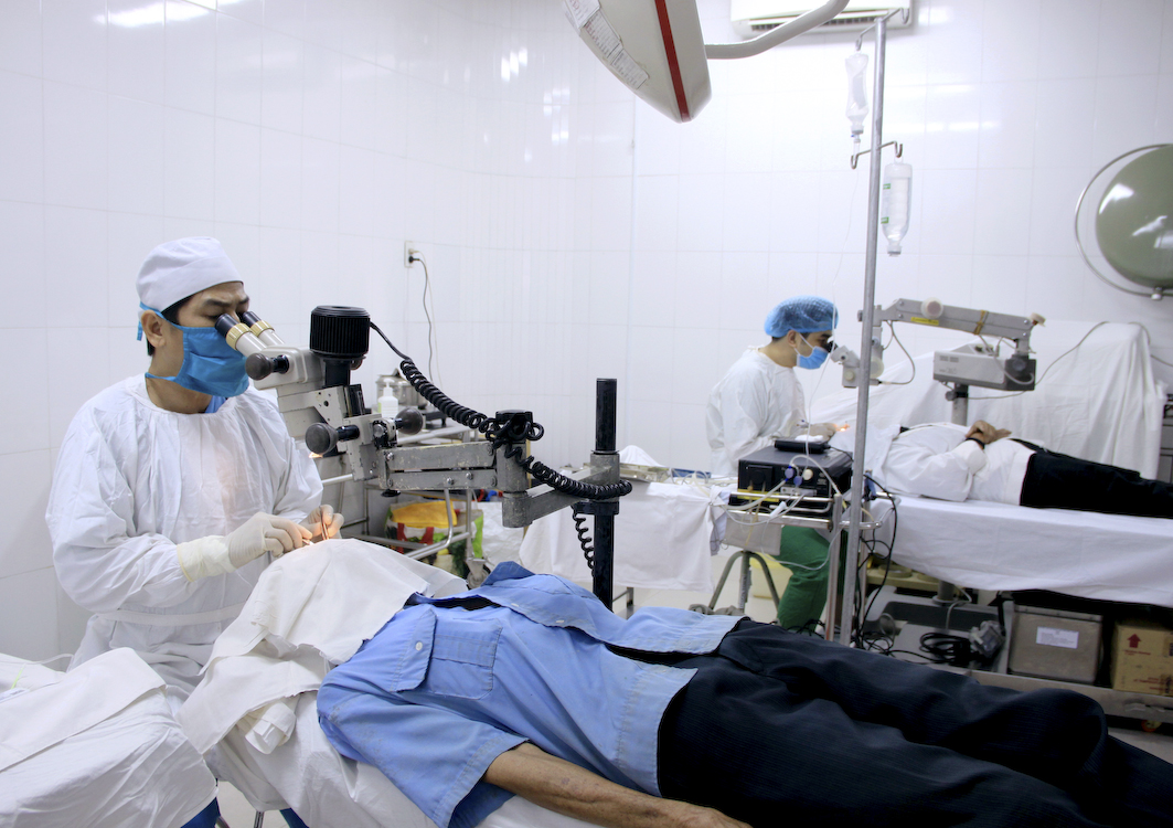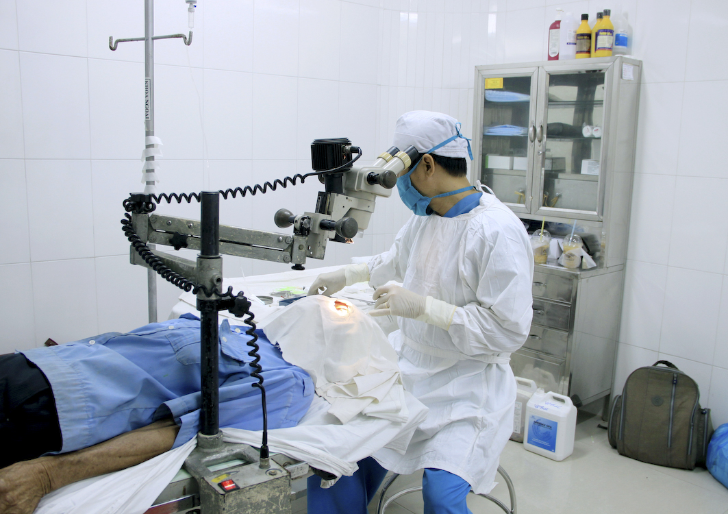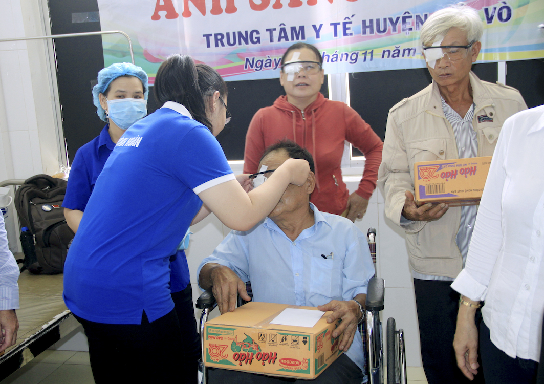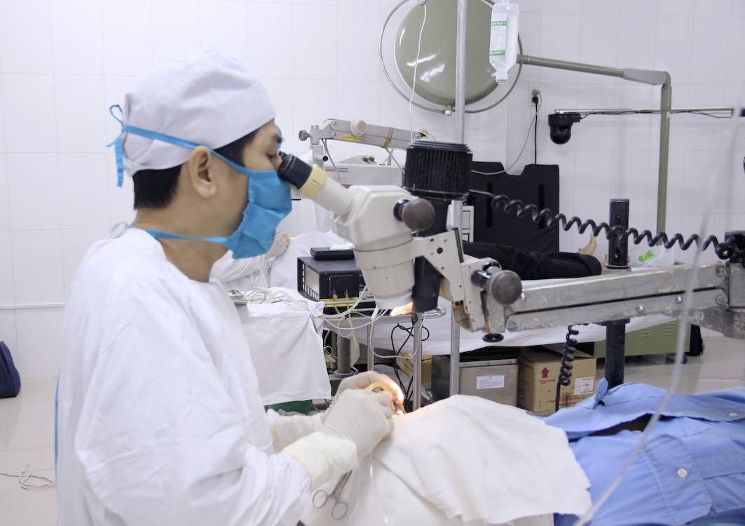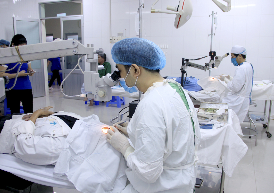 Tại đây, đoàn từ thiện đã theo sự hướng dẫn của các y bác sĩ địa phương, đưa bà con làm các thủ tục, tiến hành phẫu thuật.