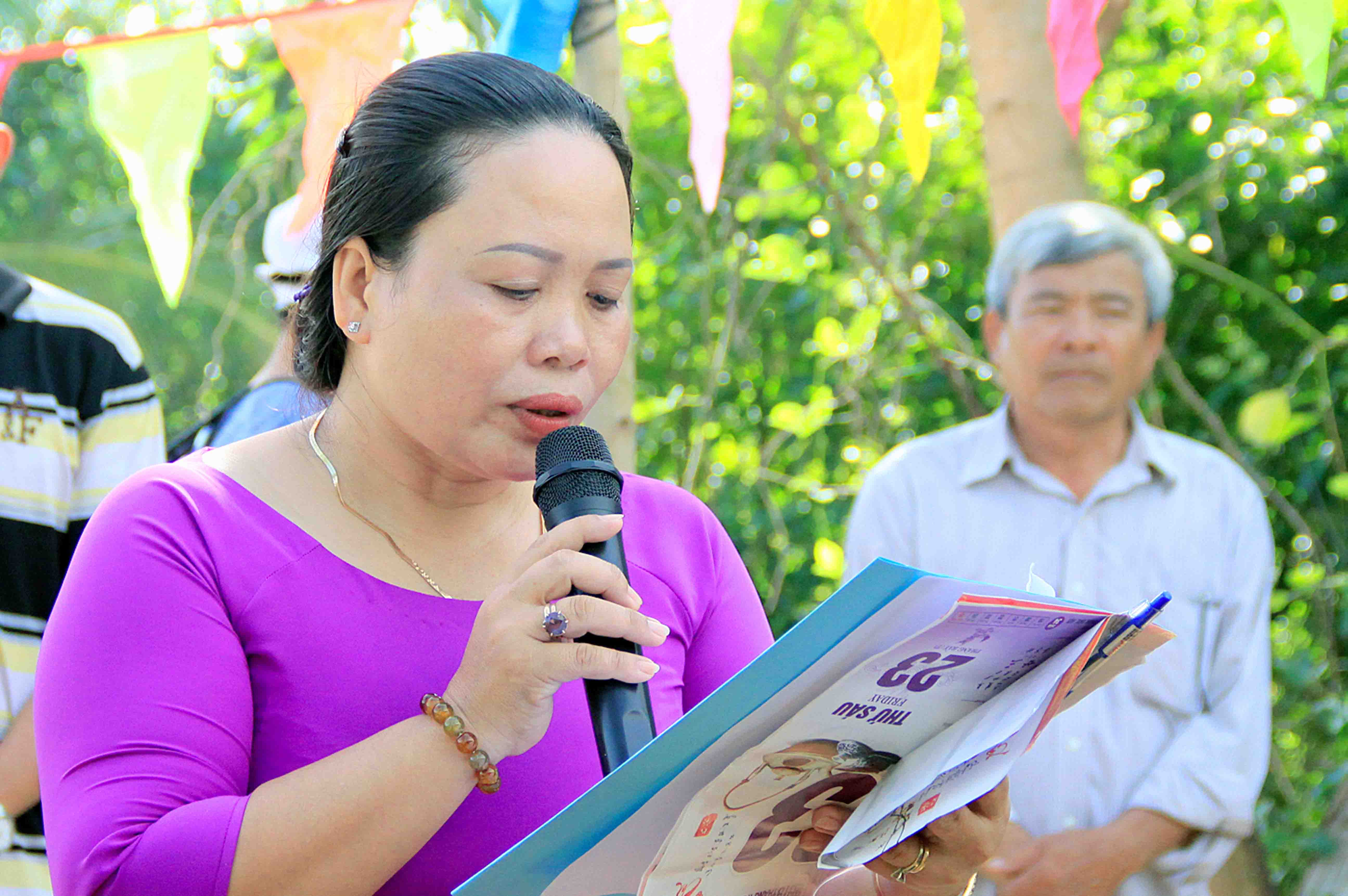 Phát biểu tại buổi lễ Ni Trưởng Thích nữ Như Lộc, bày tỏ niềm hoan hỷ sau khi thấy cây cầu đã được hoàn thành và chính thức đi vào sử dụng. Ni trưởng thay mặt quý thiện nam, tín nữ Phật tử đạo tràng Chùa Bảo Quang trao tặng 100.000.000đ (một trăm triệu đồng)và gửi lời chúc sức khỏe đến toàn thể bà con nơi đây hưởng mùa Vu Lan an lạc.
