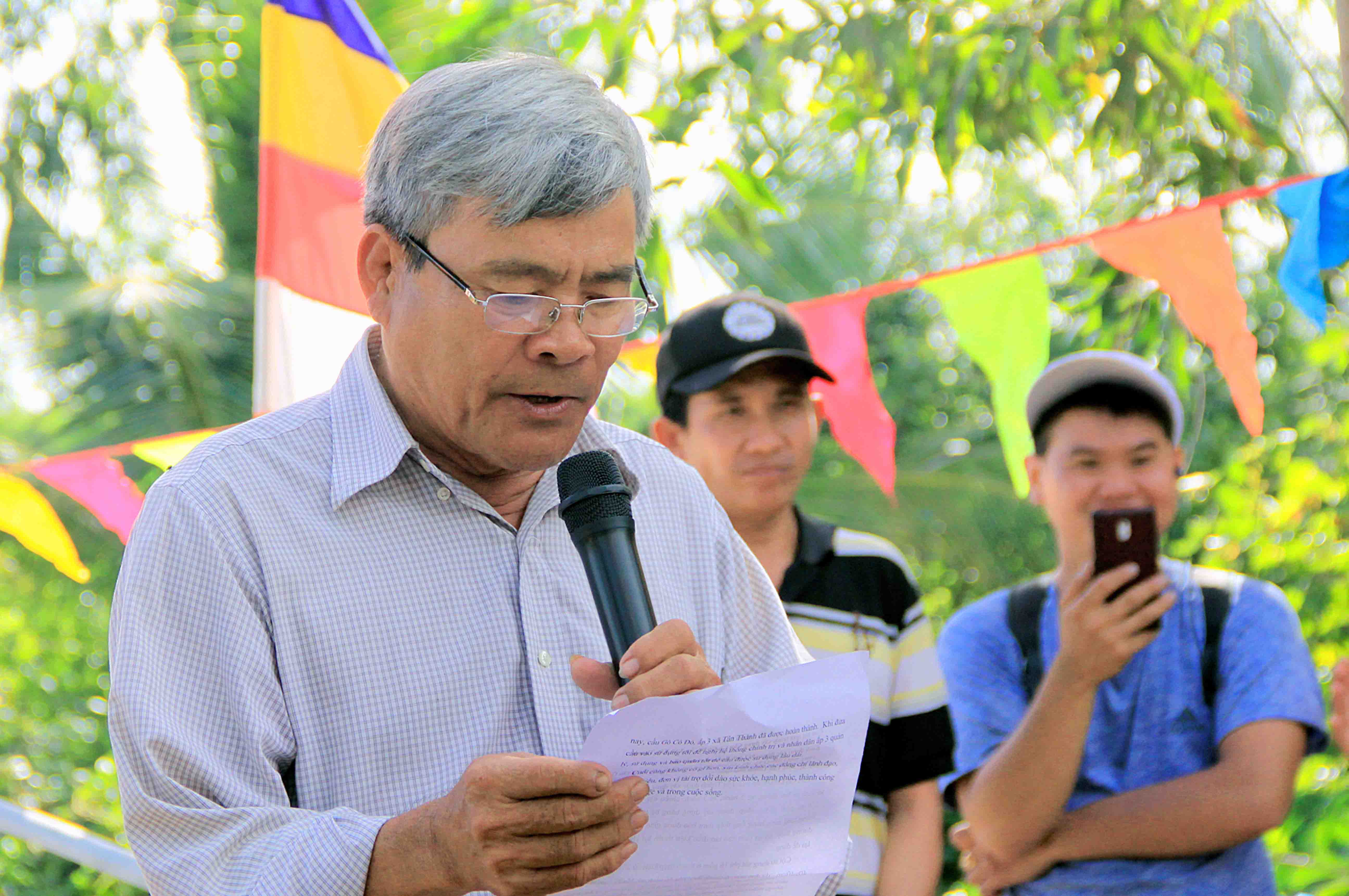 Đại Đức Thích An Điền thay lời Hòa Thượng Thích Minh Thiện gửi lời tri ân sâu sắc đến toàn thể chư Ni và Phật tử chùa Bảo Quang, do vì Phật sự nơi văn phòng nên Hòa Thượng không thể đến dự lễ. Đại đức bày tỏ niềm vui khi cây cầu đã hoàn thành nhằm để giúp đỡ bà con ấp 3 đi lại thuận tiện hơn trong những ngày mưa gió và đặc biệt là các em học sinh đi đến trường không còn phải đi đường vòng xa xôi nữa. Cuối lời đại đức cảm ơn đến Phật tử Tâm Tín đã góp công sức đóng góp cho Phật giáo tỉnh nhà và cũng như các công tác Từ thiện xã hội.