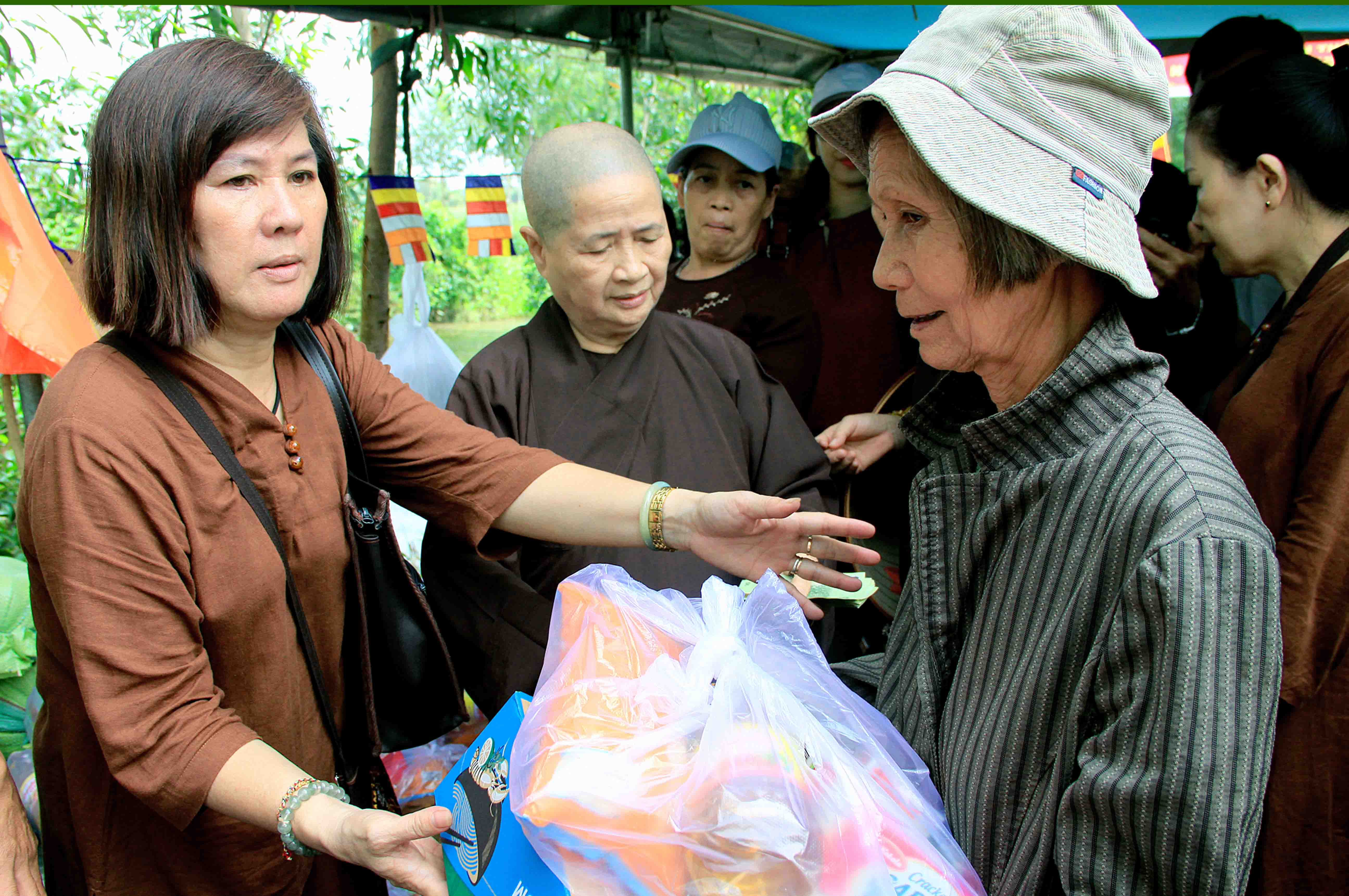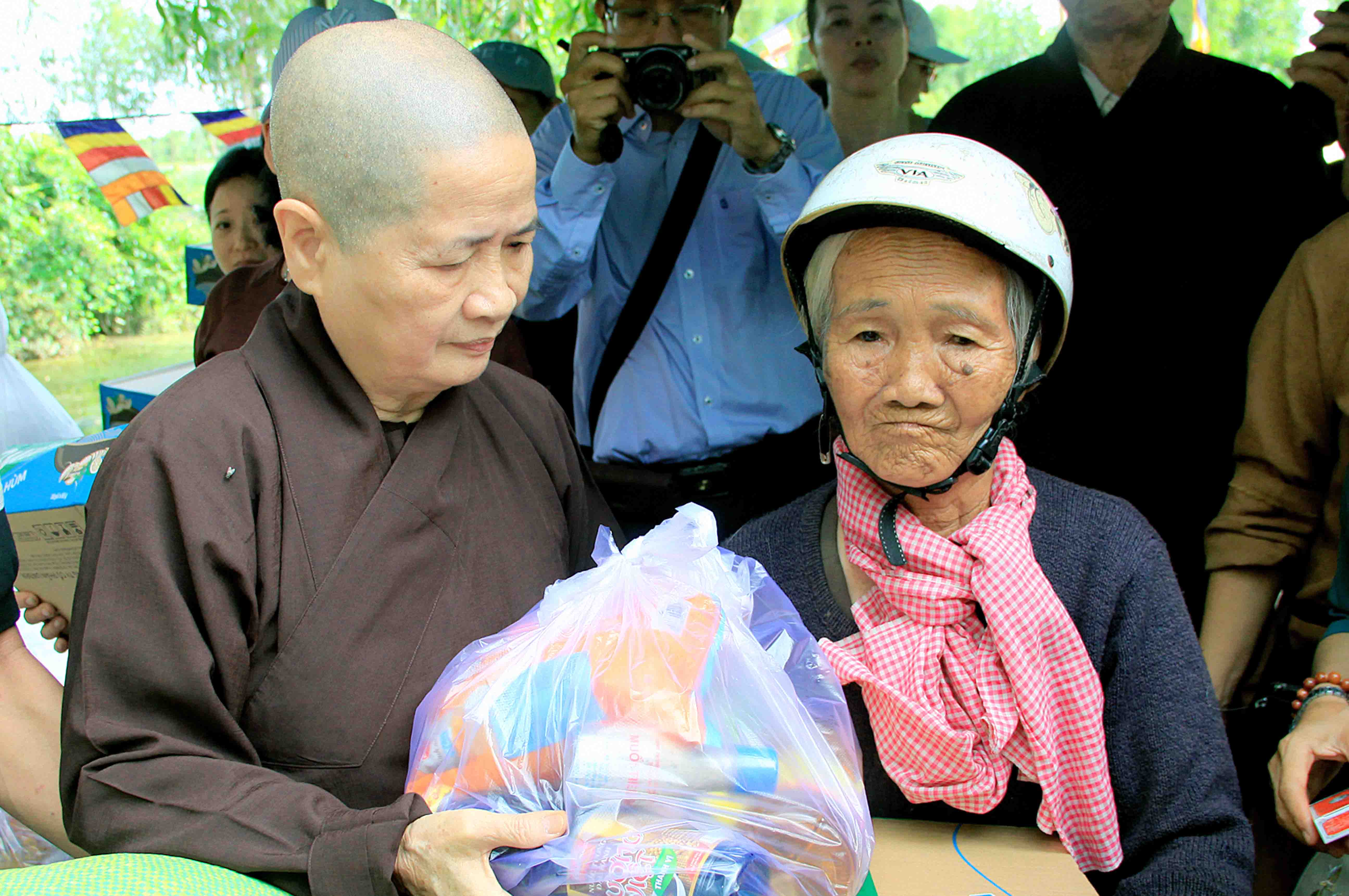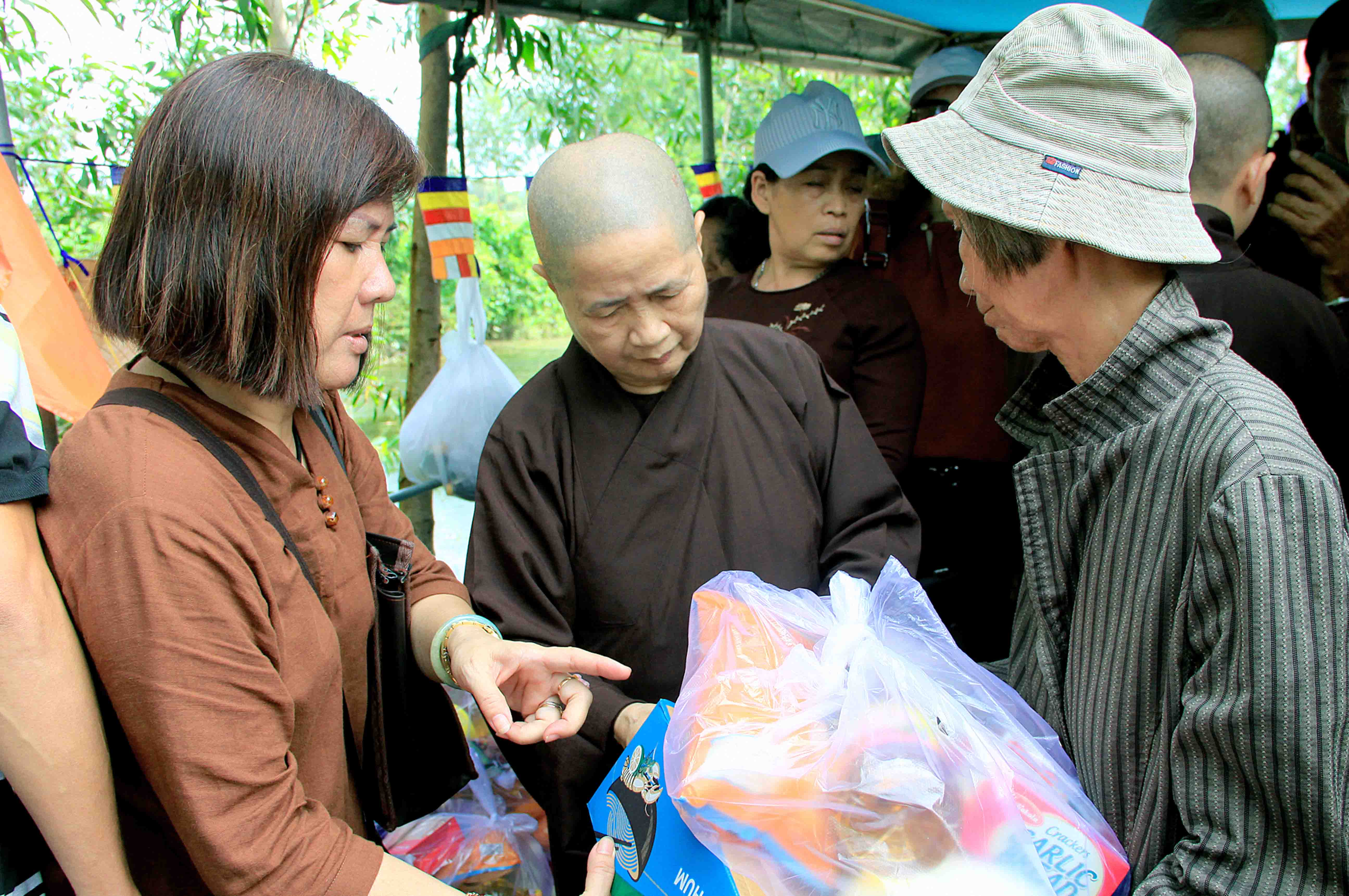 Sau nghi thức cắt băng khánh thành, Ni Trưởng và phái đoàn gửi tặng đến bà con có hoàn cảnh khó khăn 50 phần quà. Mỗi phần trị giá 500 nghìn đồng quà gồm: 10 ký gạo, 1 thùng mì,1 chai nước tương,… và một bao thư trị giá 100 nghìn đồng.