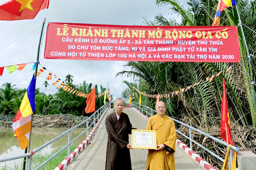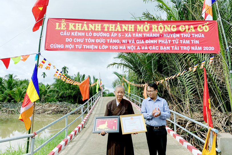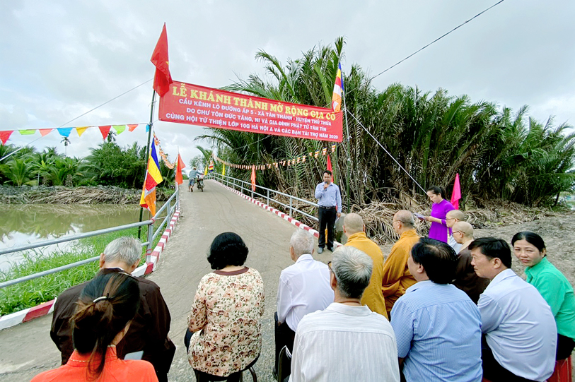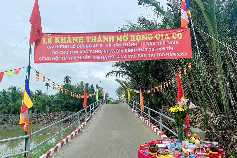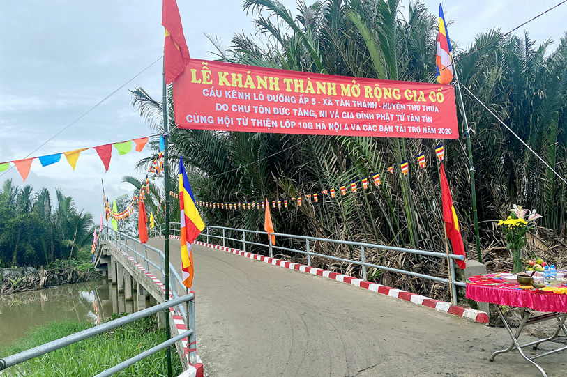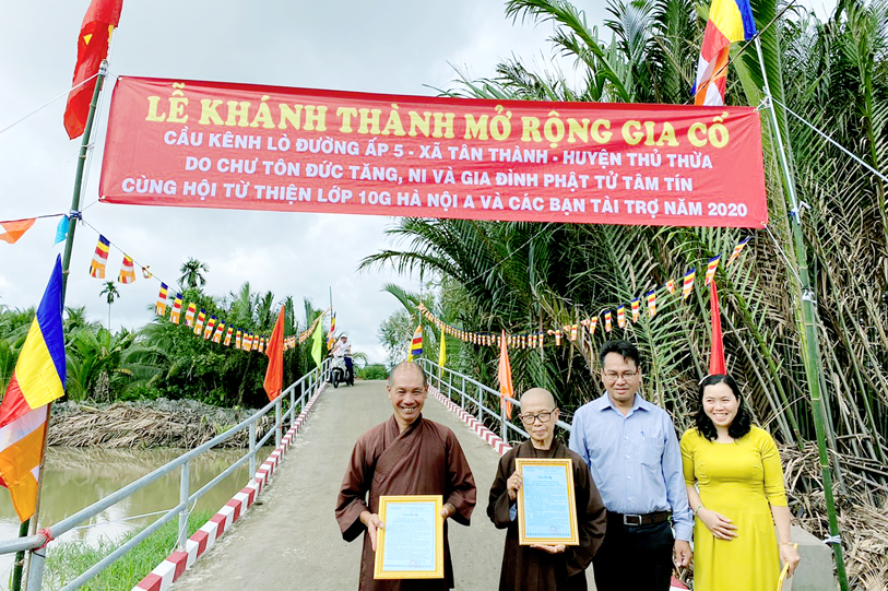 Thừa uỷ nhiệm của Hoà thượng Thích Minh Thiện- Uỷ viên Hội đồng Trị sự, Phó Ban Hoằng pháp, Trưởng Ban Trị sự GHPGVN tỉnh Long An, Sáng ngày 10/10, Ban Trị sự Giáo hội Phật giáo Việt Nam tỉnh Long An phối hợp với UBND xã Tân Thành tổ chức Lễ khánh thành cầu kênh Lò Đường, ấp 5 xã Tân Thành huyện Thủ Thừa, tỉnh Long An.