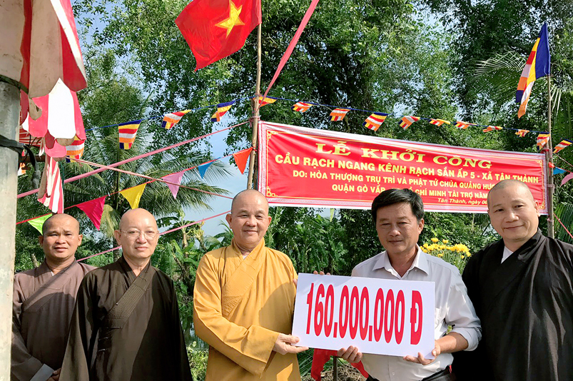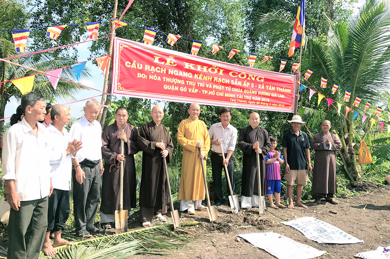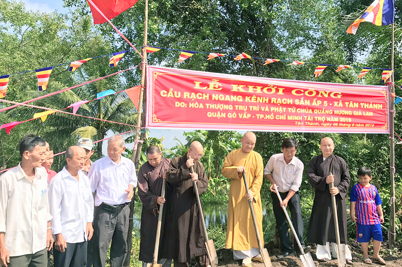 Sáng ngày 06/06/2019( 05/05/ Kỷ Hợi), Ban Từ Thiện xã hội Ban Trị sự GHPGVN tỉnh Long An, đơn vị tài trợ, phối hợp với Đảng ủy-HĐND- UBND-UBMTTQVN xã Tân Thành –huyện Thủ Thừa tổ chức Lễ khởi công cầu Kênh Ngang kênh Rạch Sắn, ấp 5.