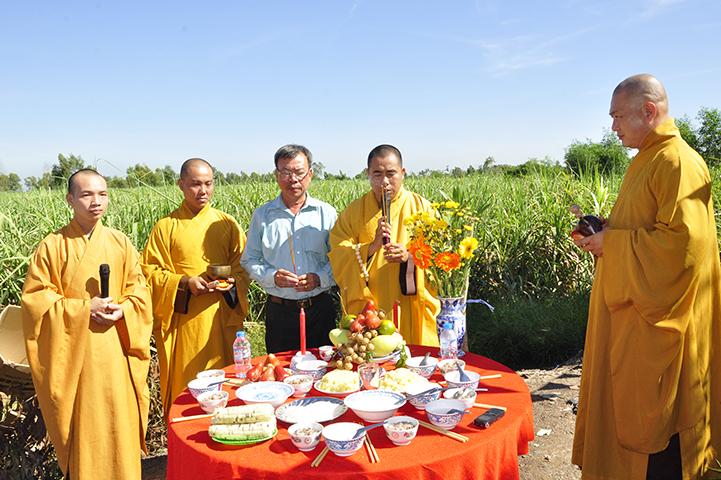 Tham dự buổi lễ có ĐĐ. Thích Hóa Minh- Trưởng Ban trị sự GHPGVN huyện Thủ Thừa, tỉnh Long An và Chư Tăng trong huyện.