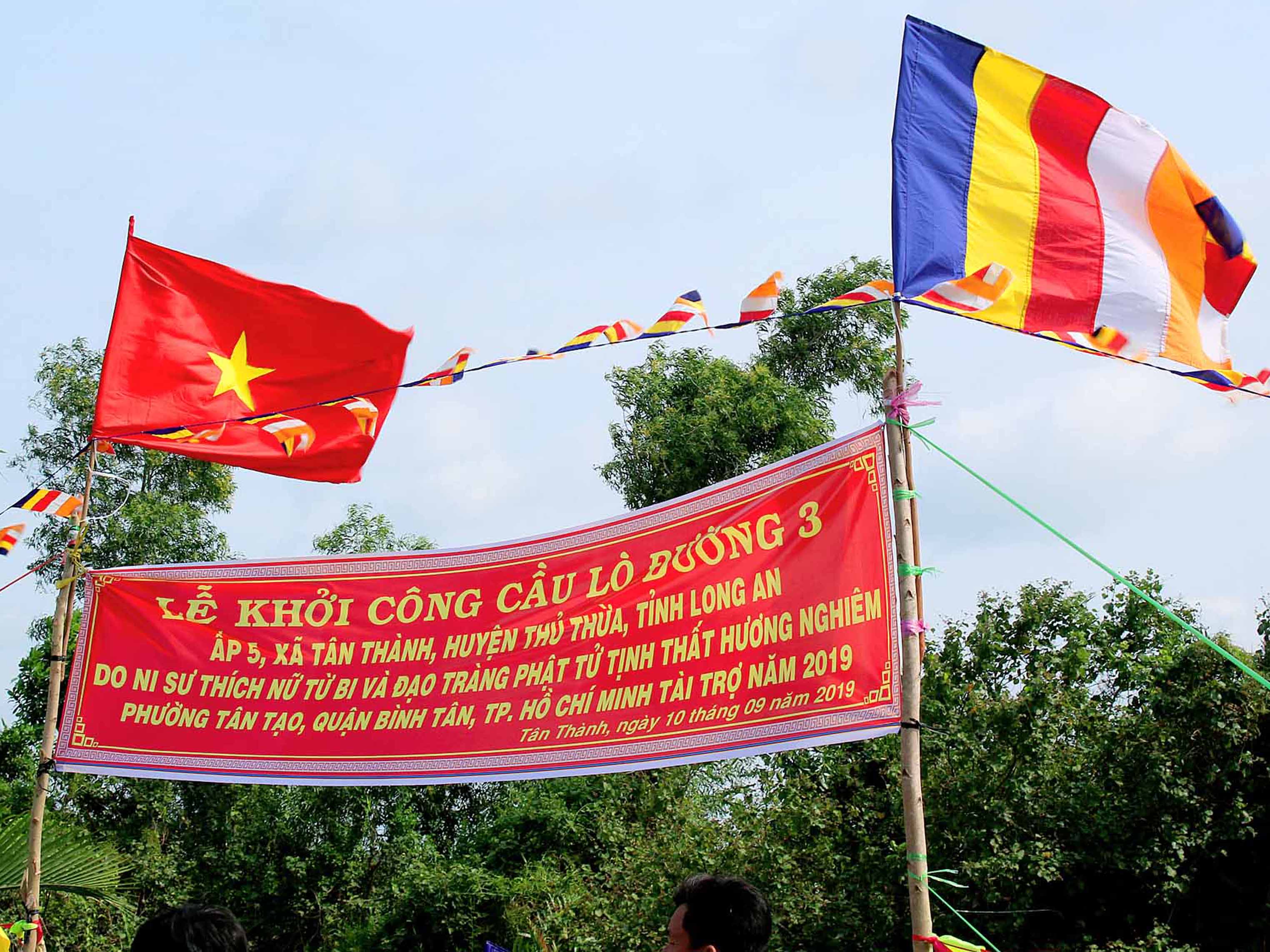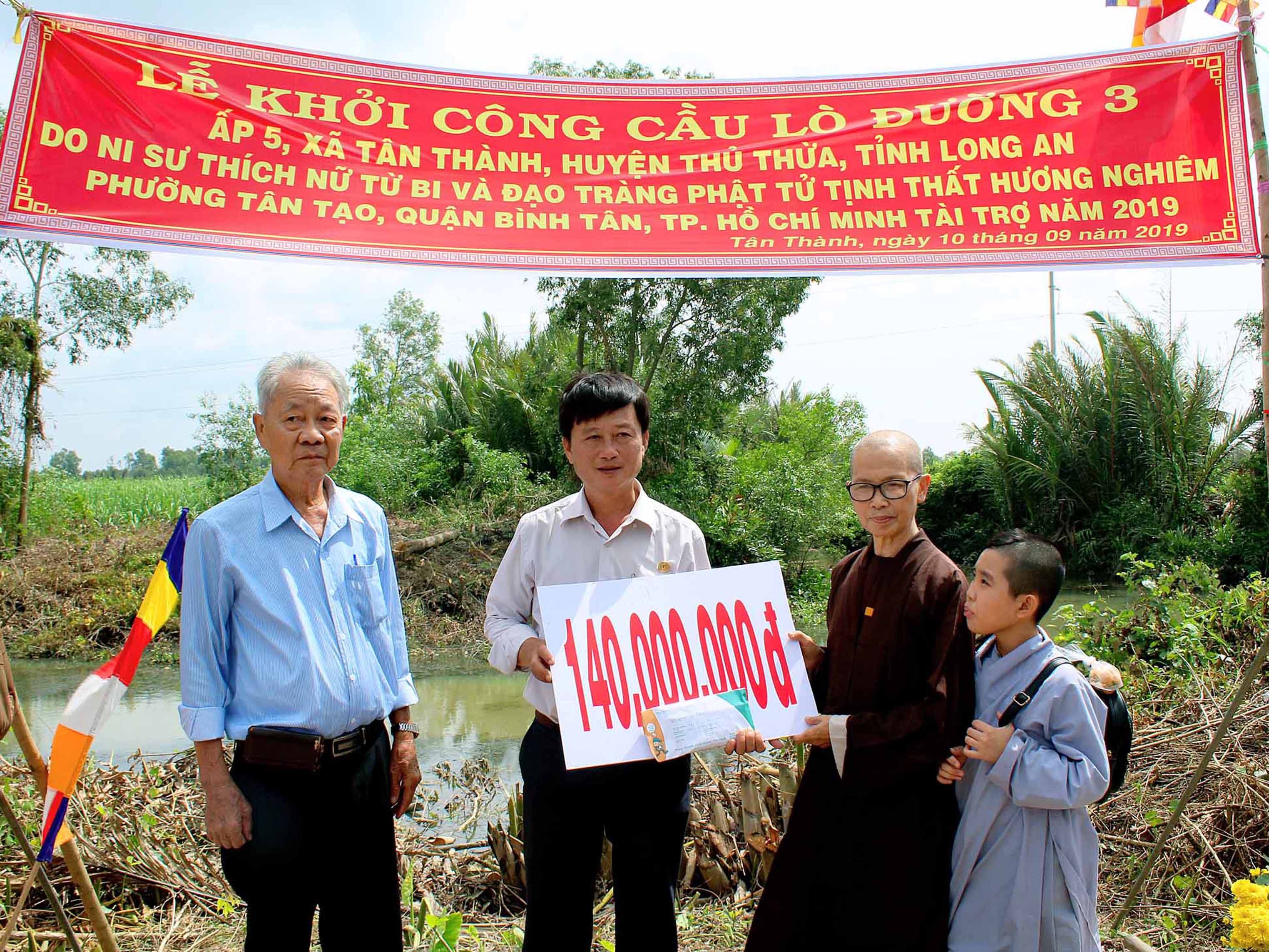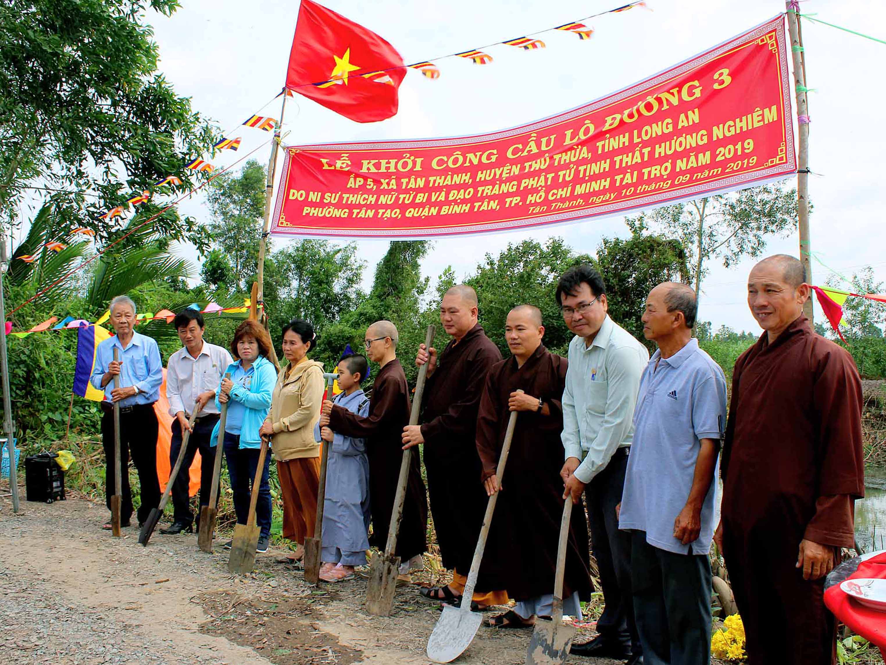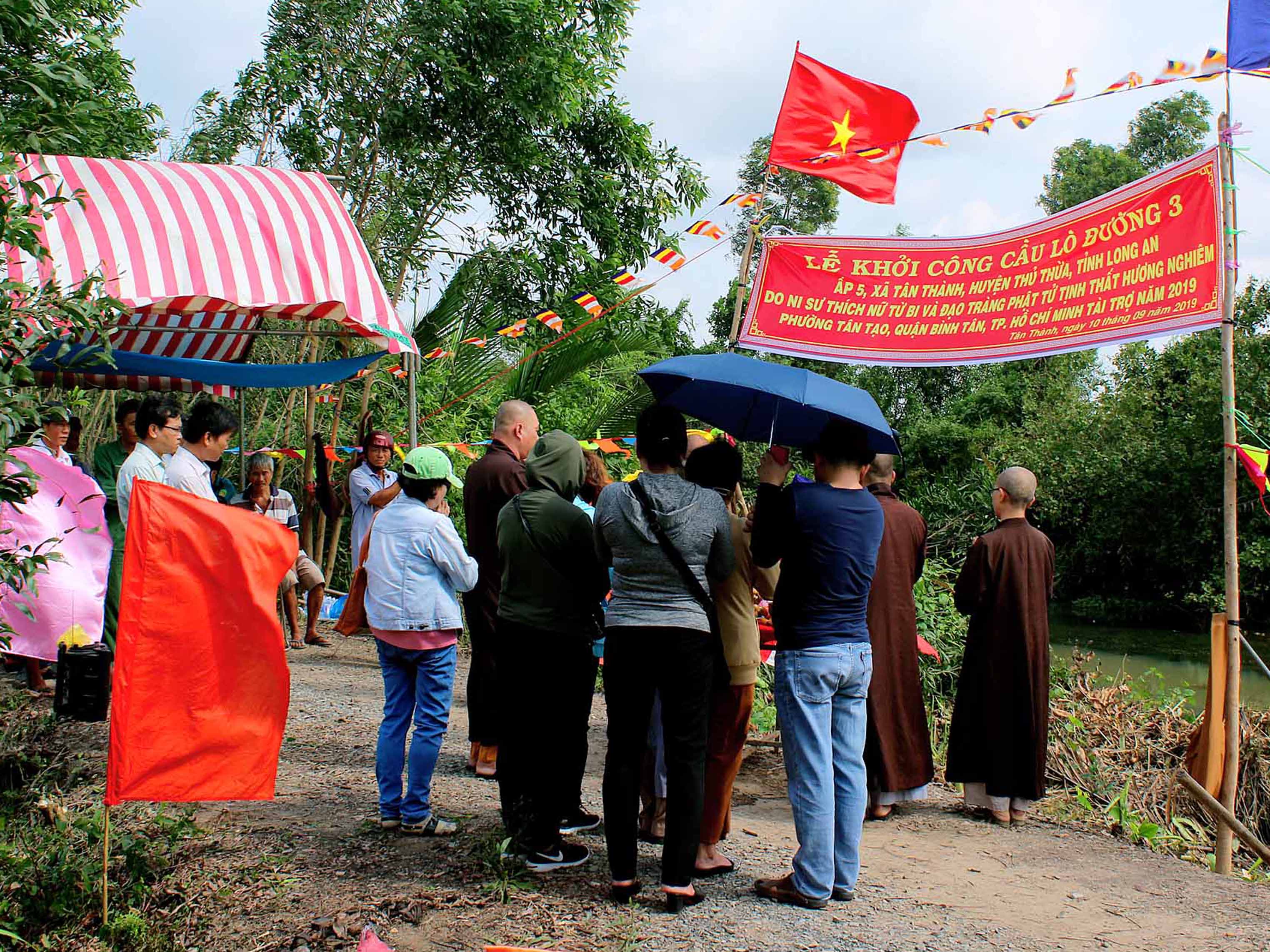 Sáng hôm nay ngày 10 tháng 9 năm 2019 (Nhằm 12/8 Kỷ Hợi), Thường trực Ban Trị Sự GHPGVN huyện Thủ Thừa kết hợp cùng UBND xã Tân Thành và đoàn từ thiện Tịnh Thất Hương Nghiêm quận Bình Tân do Ni sư Thích nữ Từ Bi làm trưởng đoàn đã đến ấp 5 xã Tân Thành, huyện Thủ Thừa, tỉnh Long An tổ chức khởi công xây dựng cầu kênh Lò Đường 3.