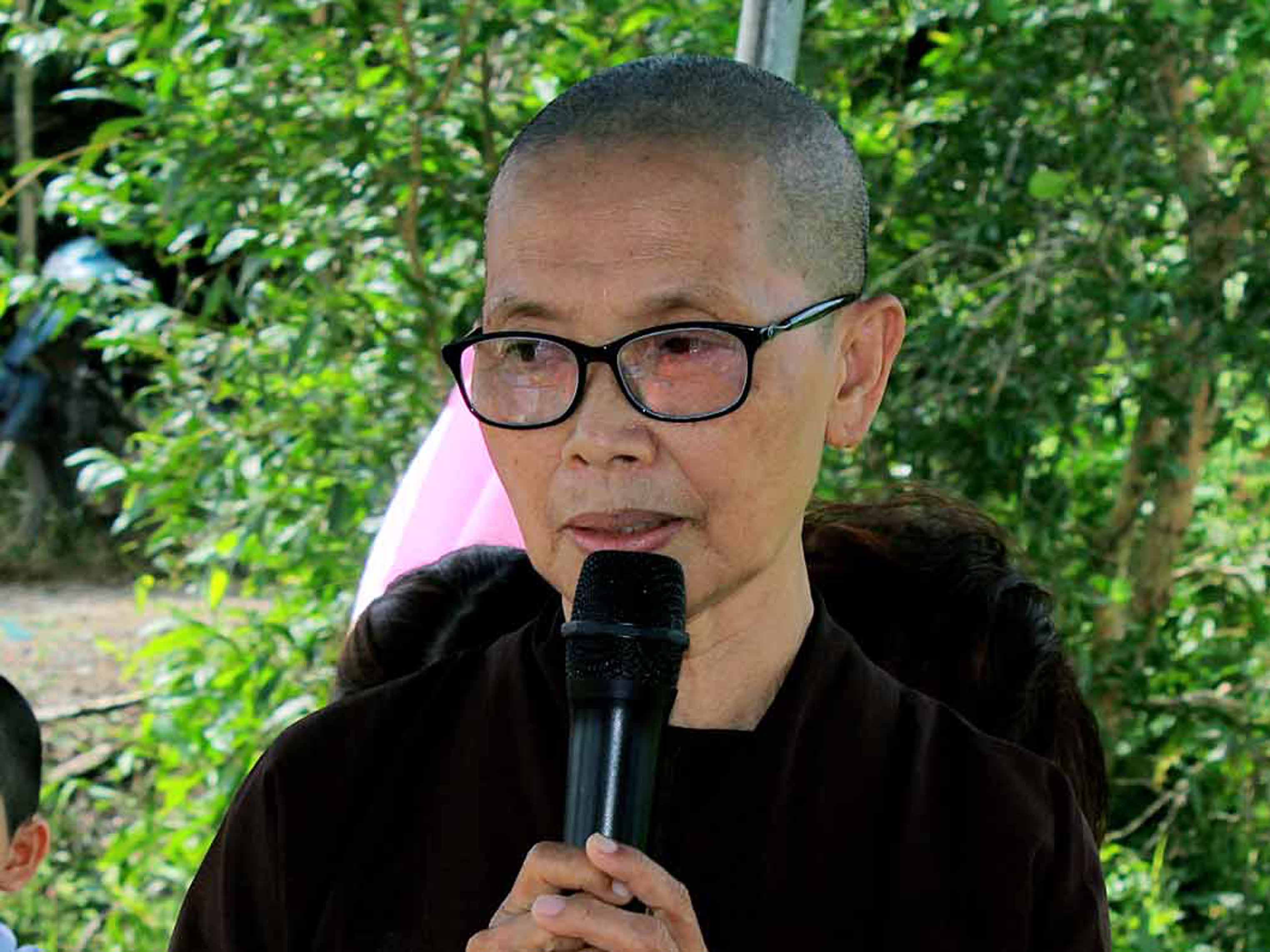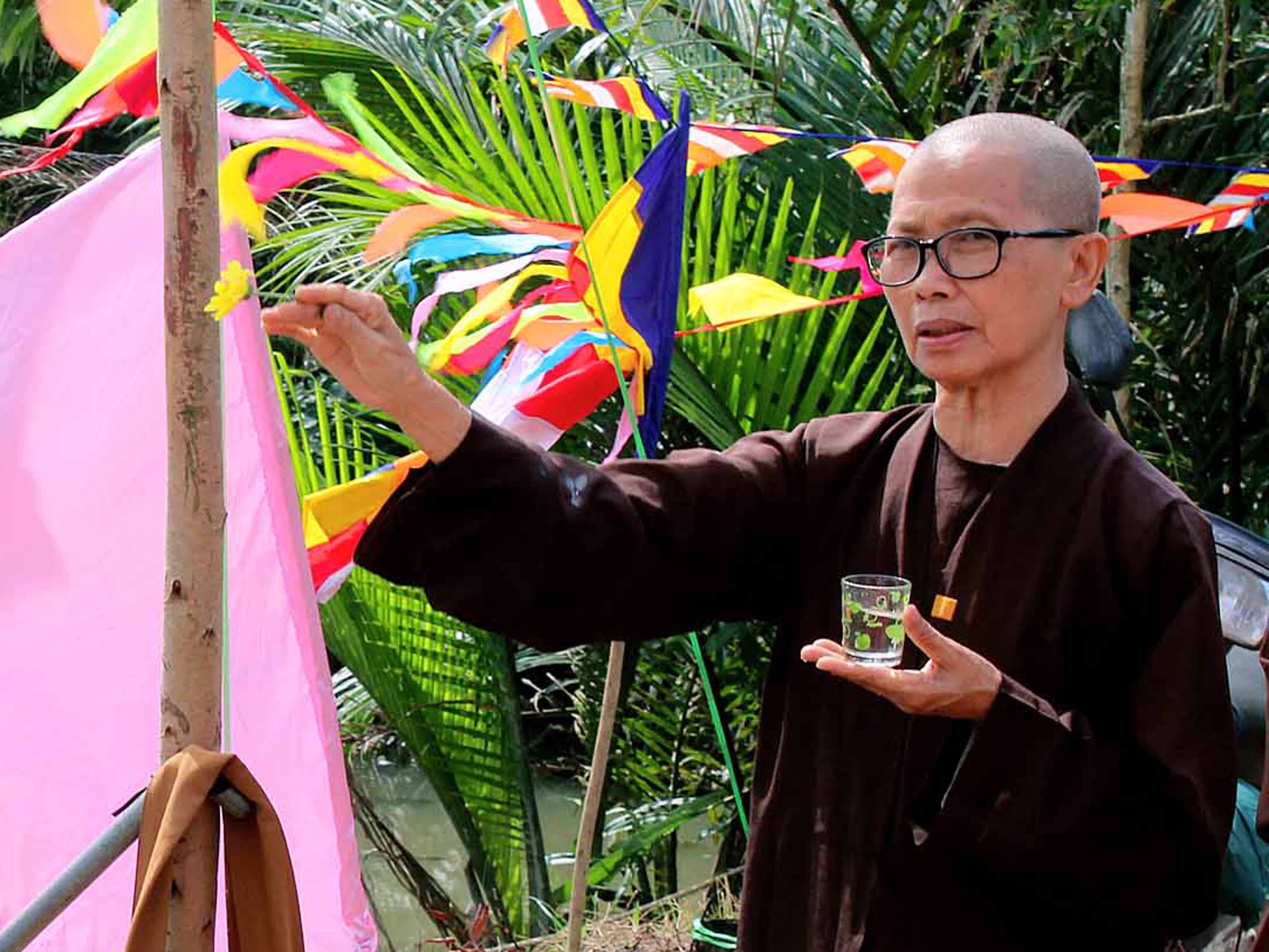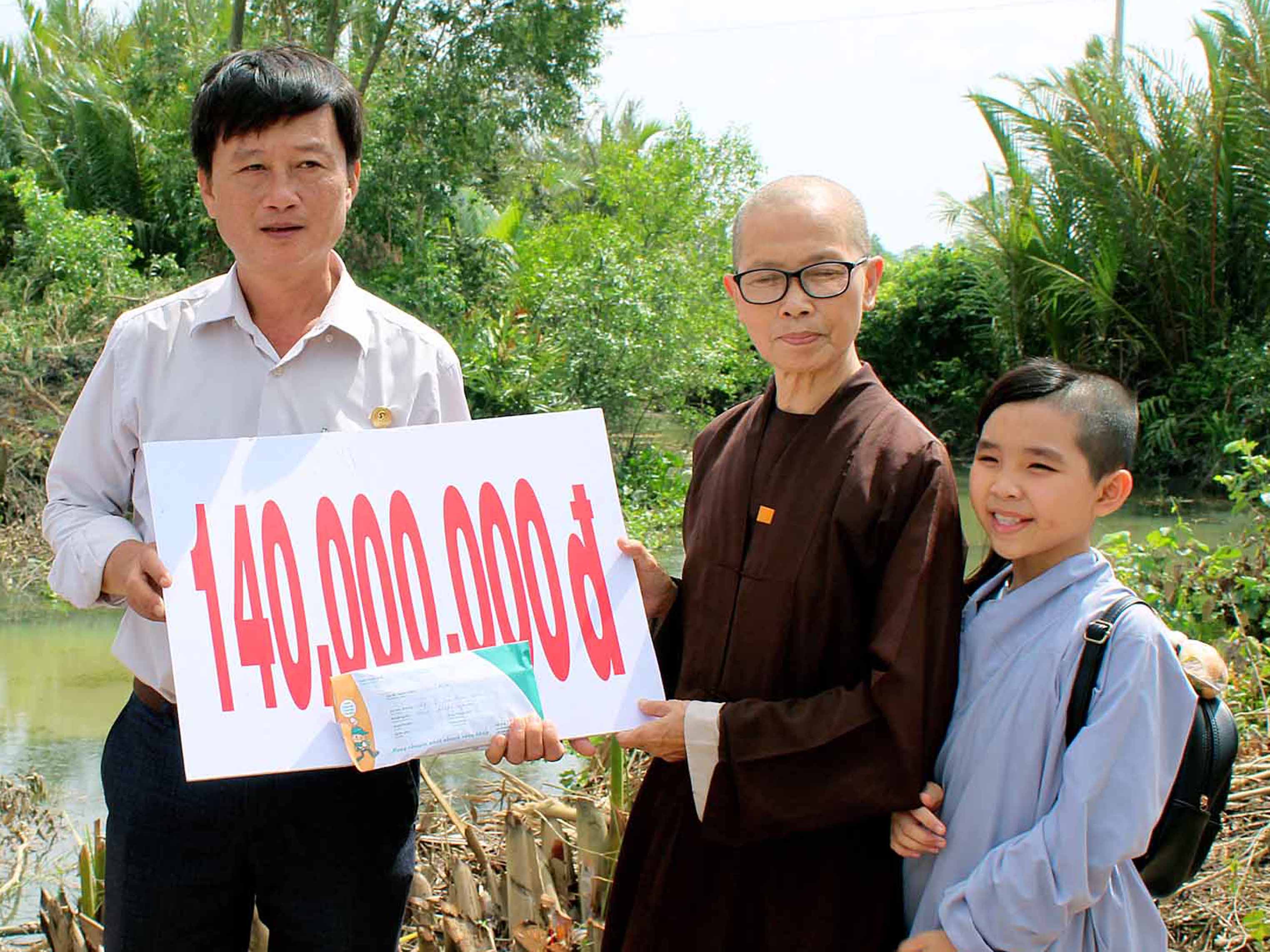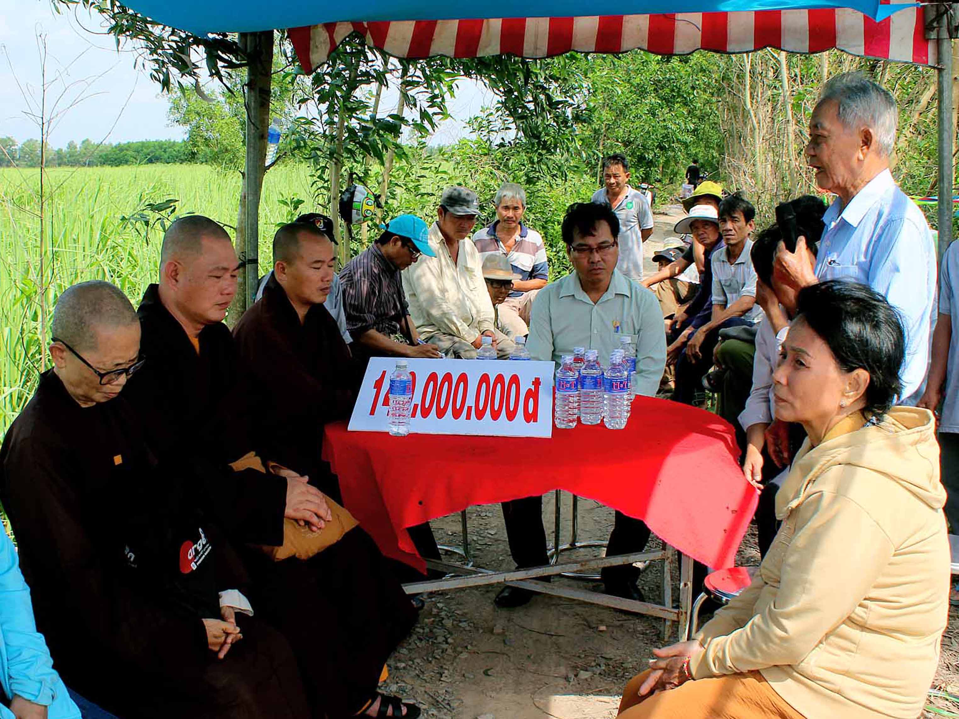 Tiếp theo là phát biểu của Ni sư Thích nữ Từ Bi. Được biết mặc dù trong lúc nền kinh tế khó khăn, nhưng Ni sư vẫn cố gắng vận động các vị Phật tử, mạnh thường quân mỗi vị nhín chút ít cùng nhau hỗ trợ bà con địa phương nơi xã Tân Thành xây dựng cây cầu nông thôn để giúp đỡ cho bà con nơi đây thuận tiện trong việc đi lại. Ni sư bày tỏ tấm lòng của mình khi thấy bà con nơi đây sinh hoạt hằng ngày phải đi rất xa để đi chợ, còn các em học sinh thì phải đi vòng mới đến được trường học, vào mùa mưa bão thì việc đi lại càng khó khăn hơn nữa. Đại diện đoàn từ thiện, Ni sư đã trao tặng đến Chính quyền địa phương số tiền là 140 triệu đồng để thi công xây dựng cầu kênh Lò Đường 3.