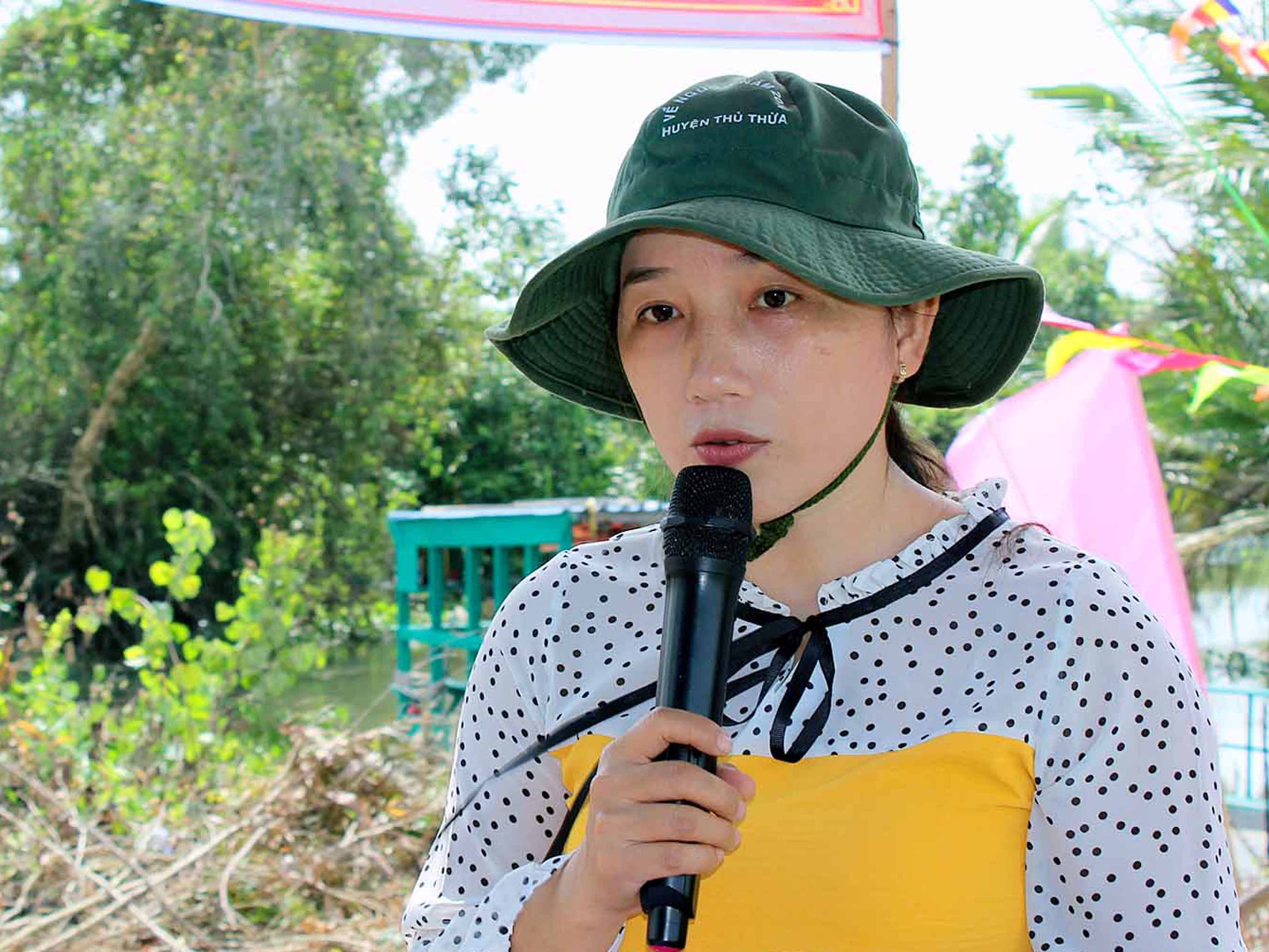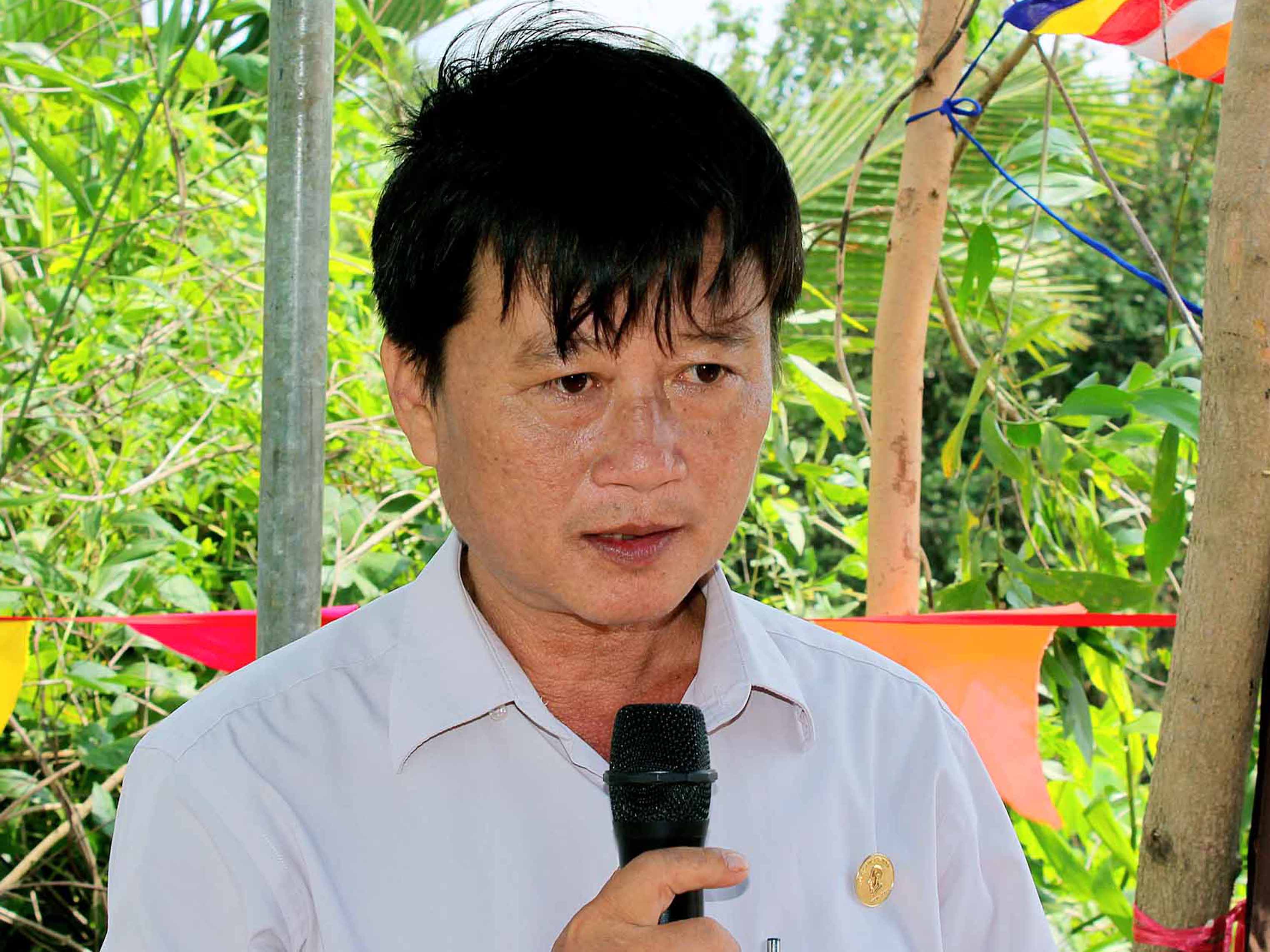 Đại diện chính quyền địa phương ông Lê Văn Hồng cũng có đôi lời phát biểu. Ông thay mặt Đảng Ủy – HĐND – UBND – UBMTTQVN xã Tân Thành cảm ơn đến Ni sư và đoàn từ thiện tịnh thất Hương Nghiêm đã hỗ trợ xây dựng cây cầu nông thôn này để tạo điều kiện đi lại thuận tiện cho bà con địa phương. Ông cũng cho hay, hiện tại ấp 5 xã Tân Thành có khoảng 200 hộ dân sinh sống chủ yếu nhờ vào canh tác mía, nhưng hiện nay cây mía bị thất thu nên thu nhập đời sống bà con còn thấp, cho nên việc đóng góp cùng chính quyền địa phương xây dựng cầu giao thông nông thôn còn gặp nhiều khó khăn. Ông cũng kính chúc đến Chư tôn Đức lãnh đạo Giáo Hội Phật Giáo Việt Nam tỉnh Long An, huyện Thủ Thừa, đoàn từ thiện Tịnh Thất Hương Nghiêm thân tâm thường lạc, vạn sự được kiết tường như ý.