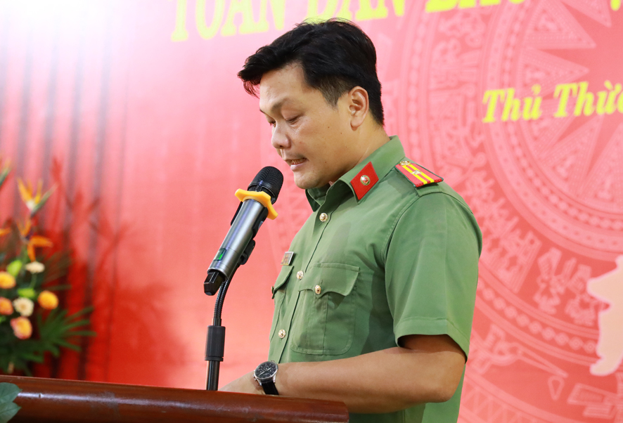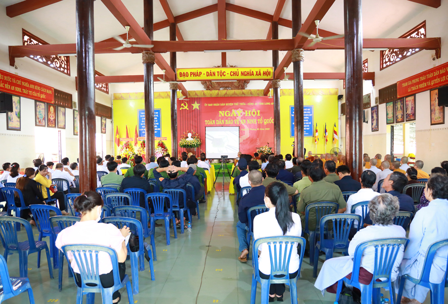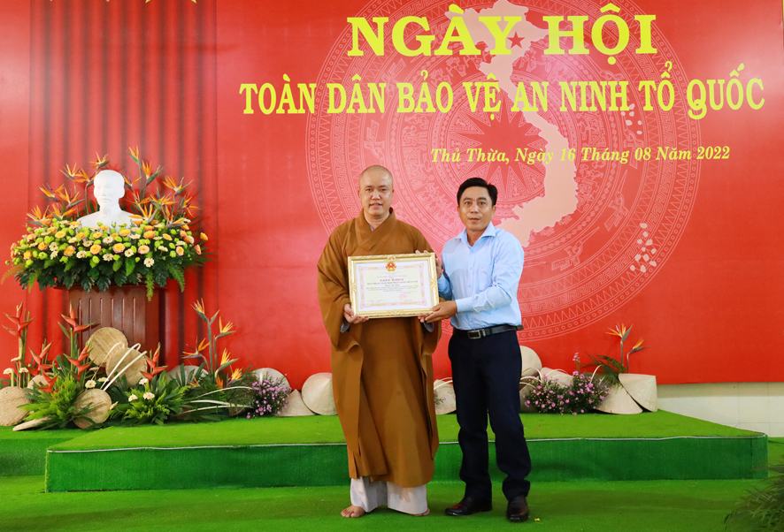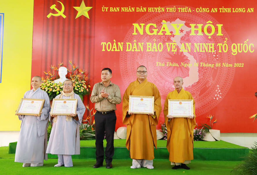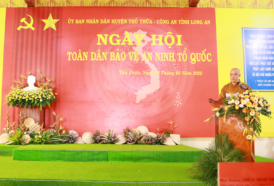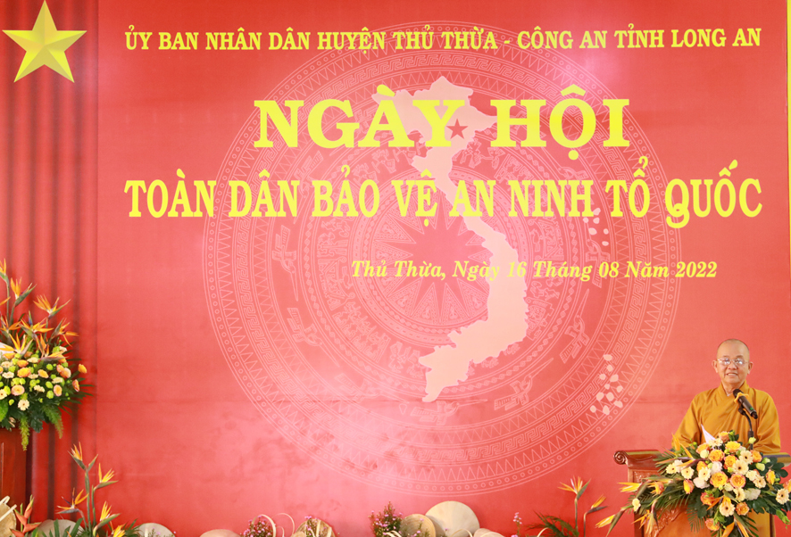 Hoà thượng Thích Minh Thiện, Trưởng Ban trị sự GHPGVN tỉnh Long An phát biểu: “Trong Ngày hội Toan dân bảo vệ ANTQ, Hoà thượng chúc mừng, Ban chỉ đạo, Ban Trị sự GHPGVN huyện Thủ Thừa, đã góp phần tích cực giúp cho Ngày hội lần thứ 17 được thành công tốt đẹp trong thời gian qua.