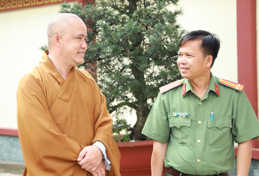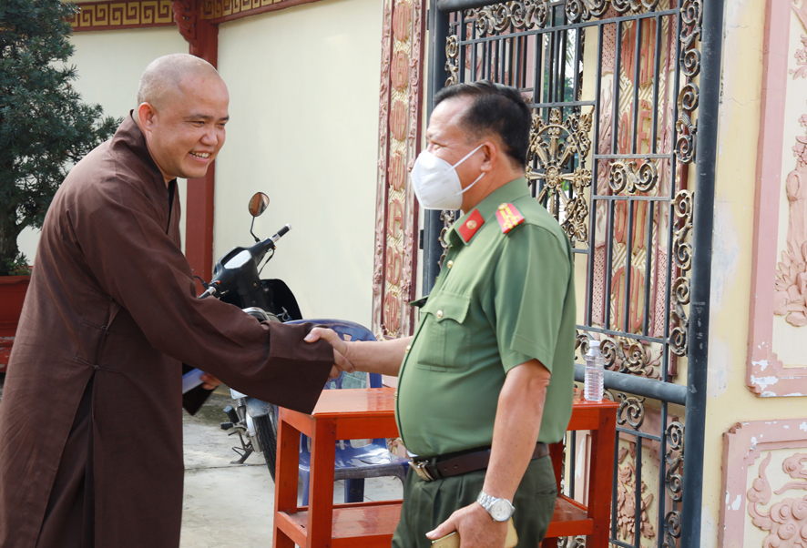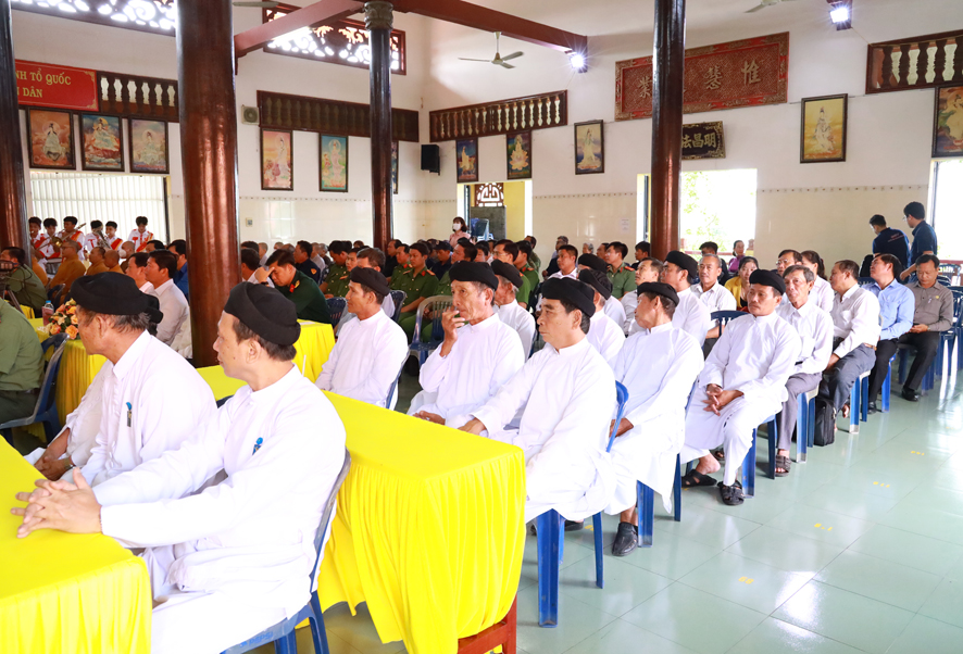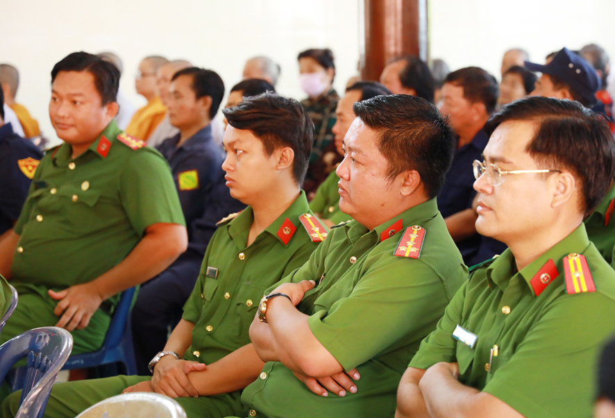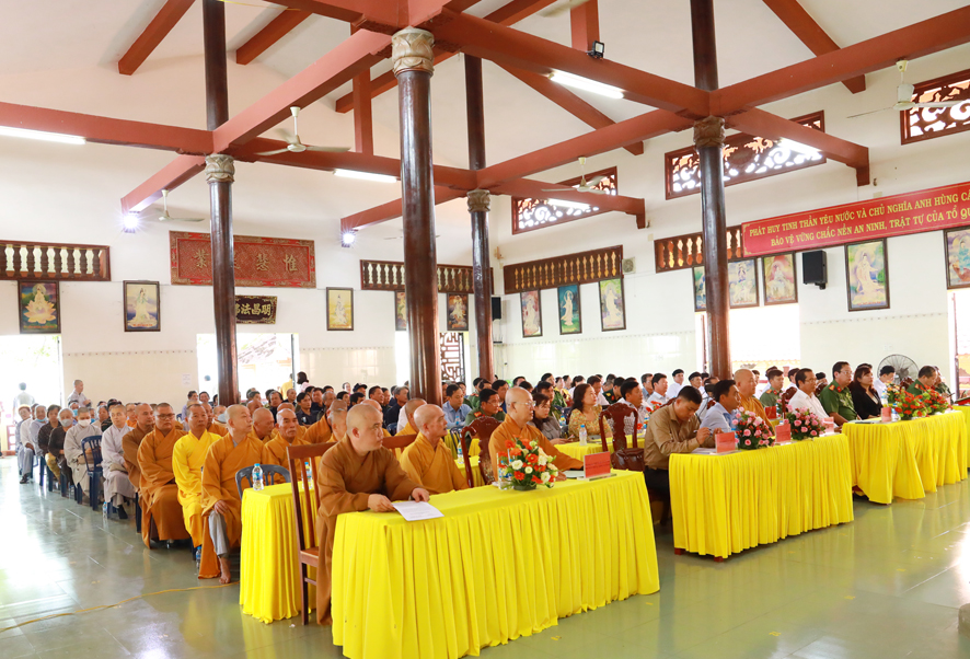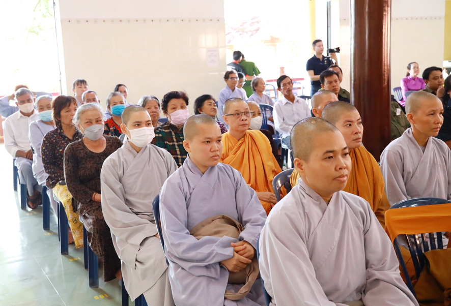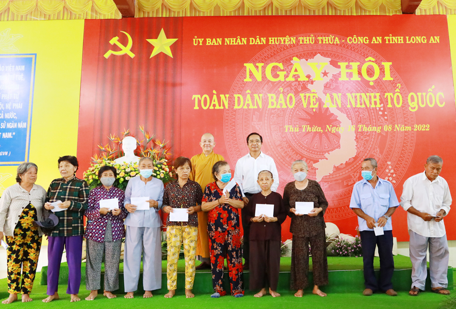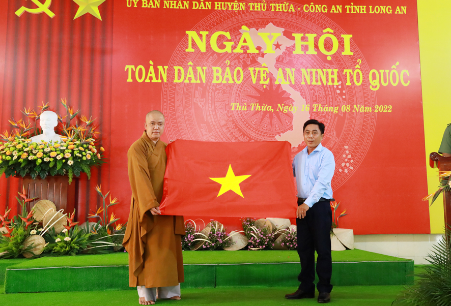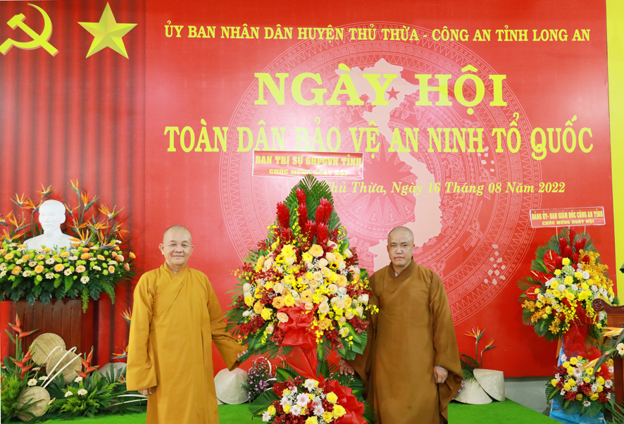 Dịp này, huyện Thủ Thừa tặng 100 lá cờ Tổ quốc cho Ban trị sự Giáo hội Phật giáo Việt Nam huyện; Đồng thời phối hợp cùng Ban trị sự Giáo hội Phật giáo Việt Nam huyện trao tặng 60 phần quà cho các hộ gia đình phật tử có hoàn cảnh khó khăn, công an viên, dân phòng, thành viên ban anh ninh nông thôn của 2 xã Nhị Thành và Bình Thạnh.