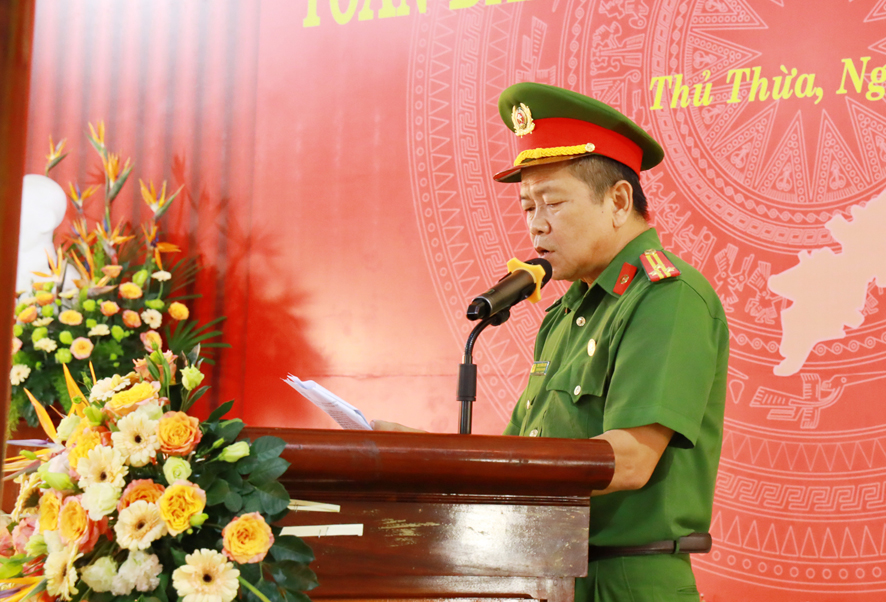 Ông Nguyễn Văn Được – Bí thư tỉnh ủy Long An yêu cầu huyện Thủ Thừa cần tập trung thực hiện tốt một số nhiệm vụ trọng tâm như tiếp tục đẩy mạnh thực hiện “Phong trào toàn dân bảo vệ an ninh Tổ quốc”, kiên quyết đấu tranh làm thất bại mọi âm mưu và hoạt động phá hoại của các thế lực thù địch, bảo vệ vững chắc an ninh quốc gia, giữ gìn trật tự an toàn xã hội. Huy động được các lực lượng nòng cốt tham gia tốt Phong trào toàn dân bảo vệ an ninh Tổ quốc, giữ gìn an ninh, trật tự ở địa bàn cơ sở theo phương châm: “Phong trào từ khu dân cư tốt thì xã tốt, các xã tốt thì huyện tốt, các huyện tốt thì tỉnh tốt”./.