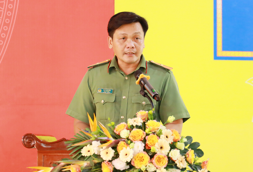Tham dự Ngày hội toàn dân bảo vệ an ninh Tổ quốc năm 2022, Đại đức Thích An Nhựt, Trưởng Ban trị sự GHPGVN huyện Thủ Thừa thay mặt Chư tôn đức Tăng Ni trong huyện nhà đọc báo cáo “Kết quả xây dựng phong trào toàn dân bảo vệ ANTQ trong đồng bào Phật giáo huyện Thủ Thừa năm 2022.