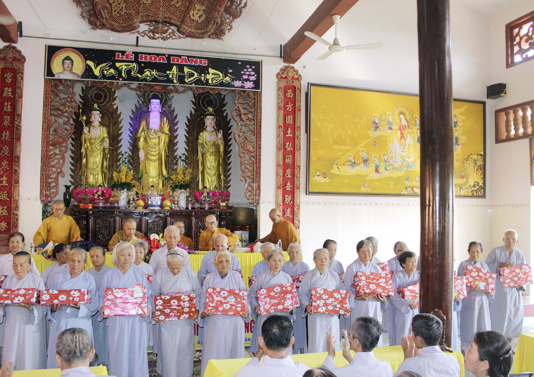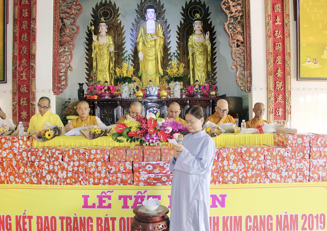 Sáng ngày 26/12/2019 (mồng 1 tháng chạp Kỷ Hợi), Tổ đình Kim Cang, ấp Bình Cang, huyện Thủ Thừa tổ chức Lễ tổng kết Tất niên với hơn 200 Phật tử tham dự.
