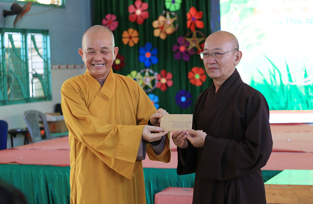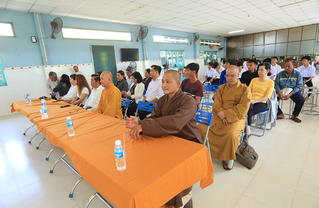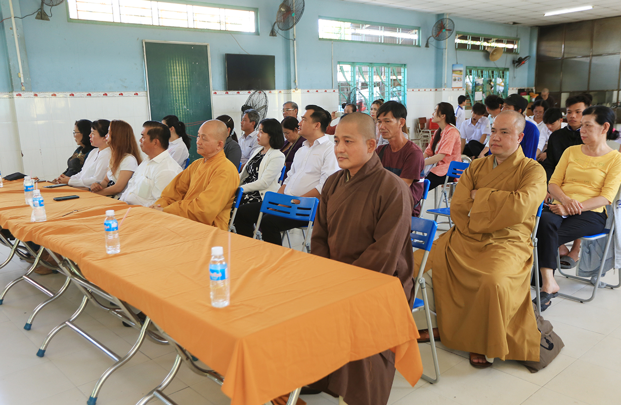 Buổi lễ có sự quang lâm: HT. Thích Minh Thiện – UV HĐTS, Phó Trưởng Ban Hoằng pháp TƯ, Trưởng BTS GHPGVN tỉnh Long An; TT. Thích Quảng Tâm – UV HĐTS, Phó TT BTS GHPGVN tỉnh Long An, Chủ tịch Hội đồng trường; ĐĐ. Thích Lệ Duyên – Phó Trưởng Ban kiêm Chánh Thư ký BTS GHPGVN tỉnh Long An, Trưởng BTS GHPGVN huyện Đức Hoà; ĐĐ. Thích An Nhựt – Trưởng Ban HDPT GHPGVN tỉnh Long An, Trưởng BTS GHPGVN huyện Thủ Thừa,… cùng Chư Tôn đức giáo phẩm trở về tham dự.