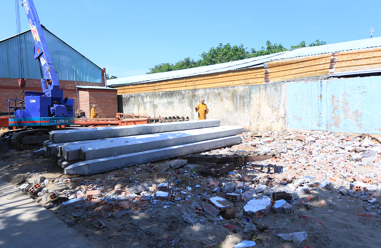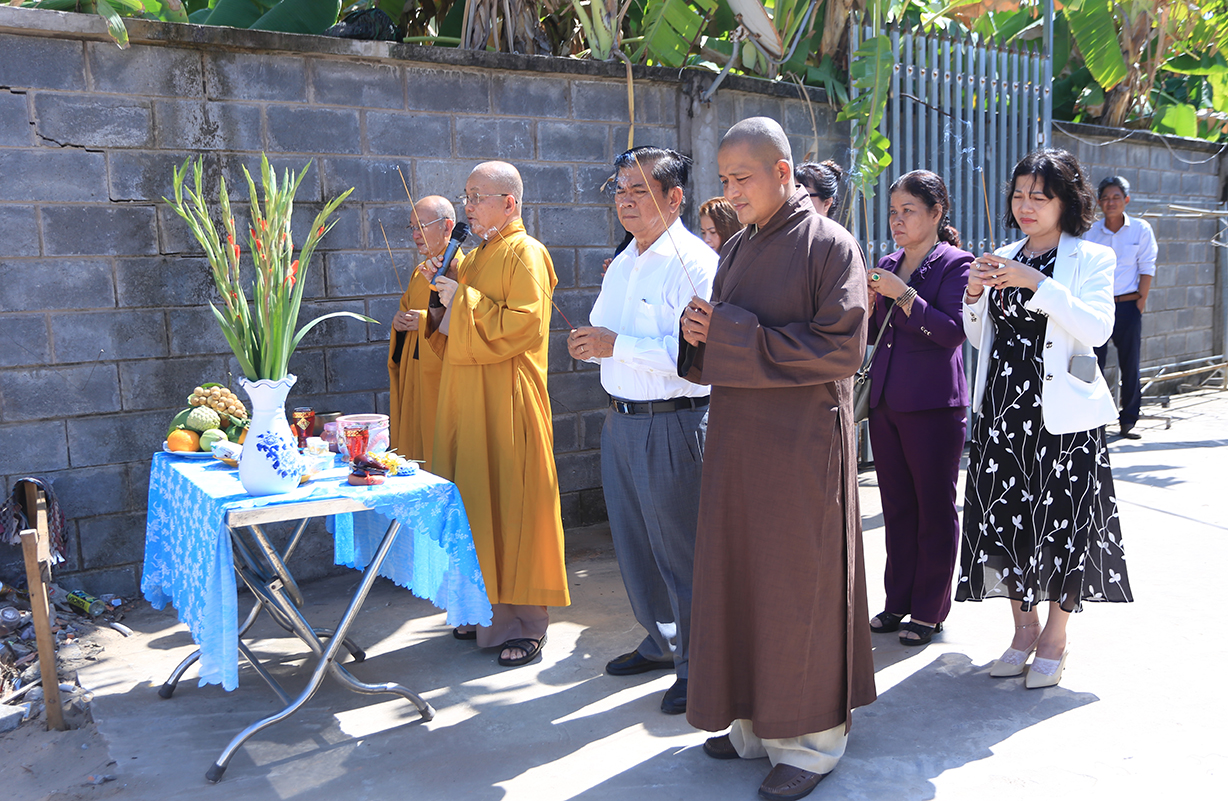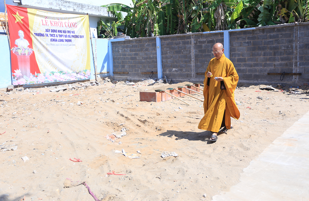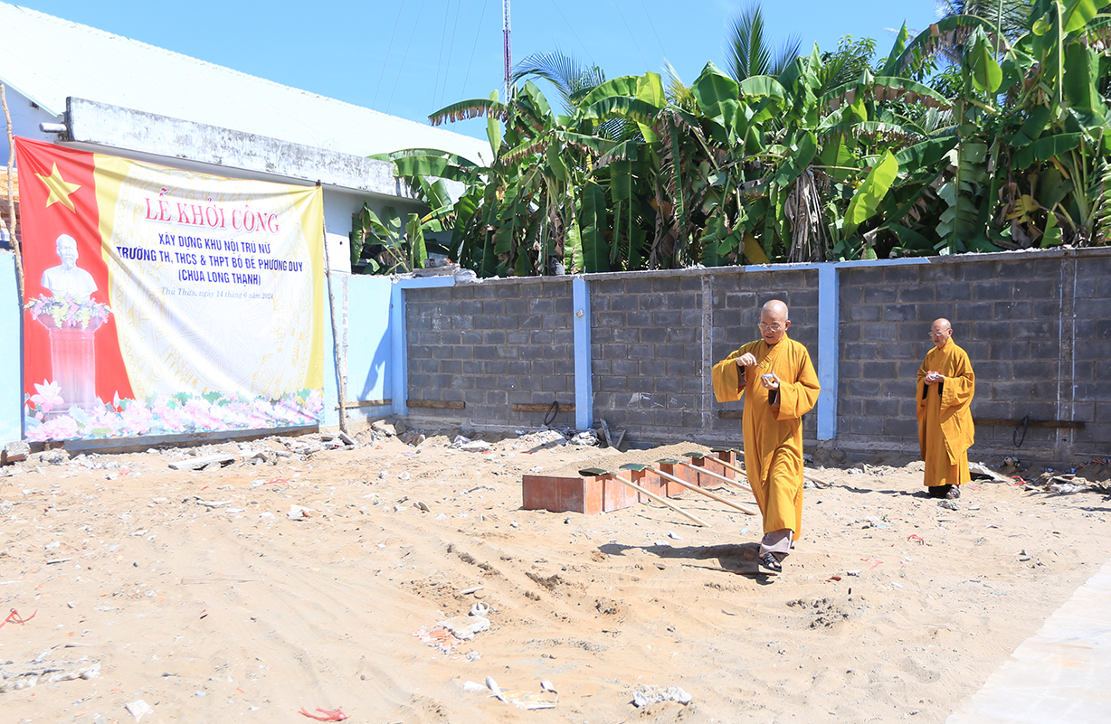 Tiếp theo chương trình, Chư Tôn đức và các đại diện các doanh nghiệp, mạnh thường quân đã thực hiện nghi thức xúc cát khởi công. Lễ Khởi công khu nội trú nữ trường Bồ Đề Phương Duy đã diễn ra thành công tốt đẹp.