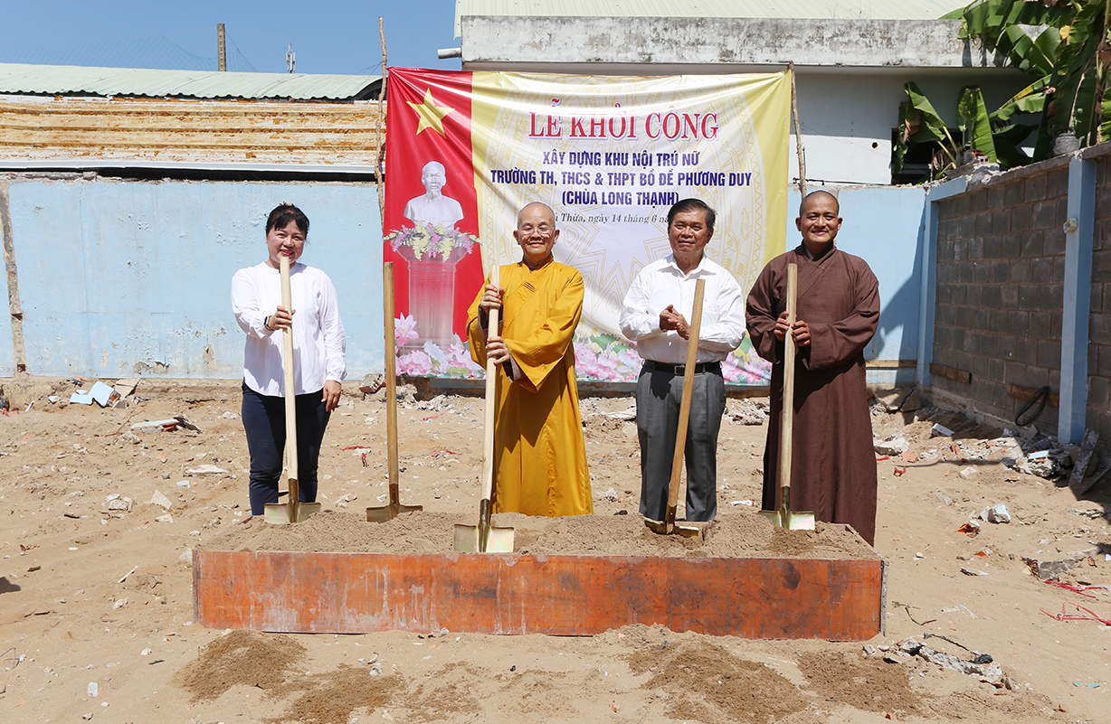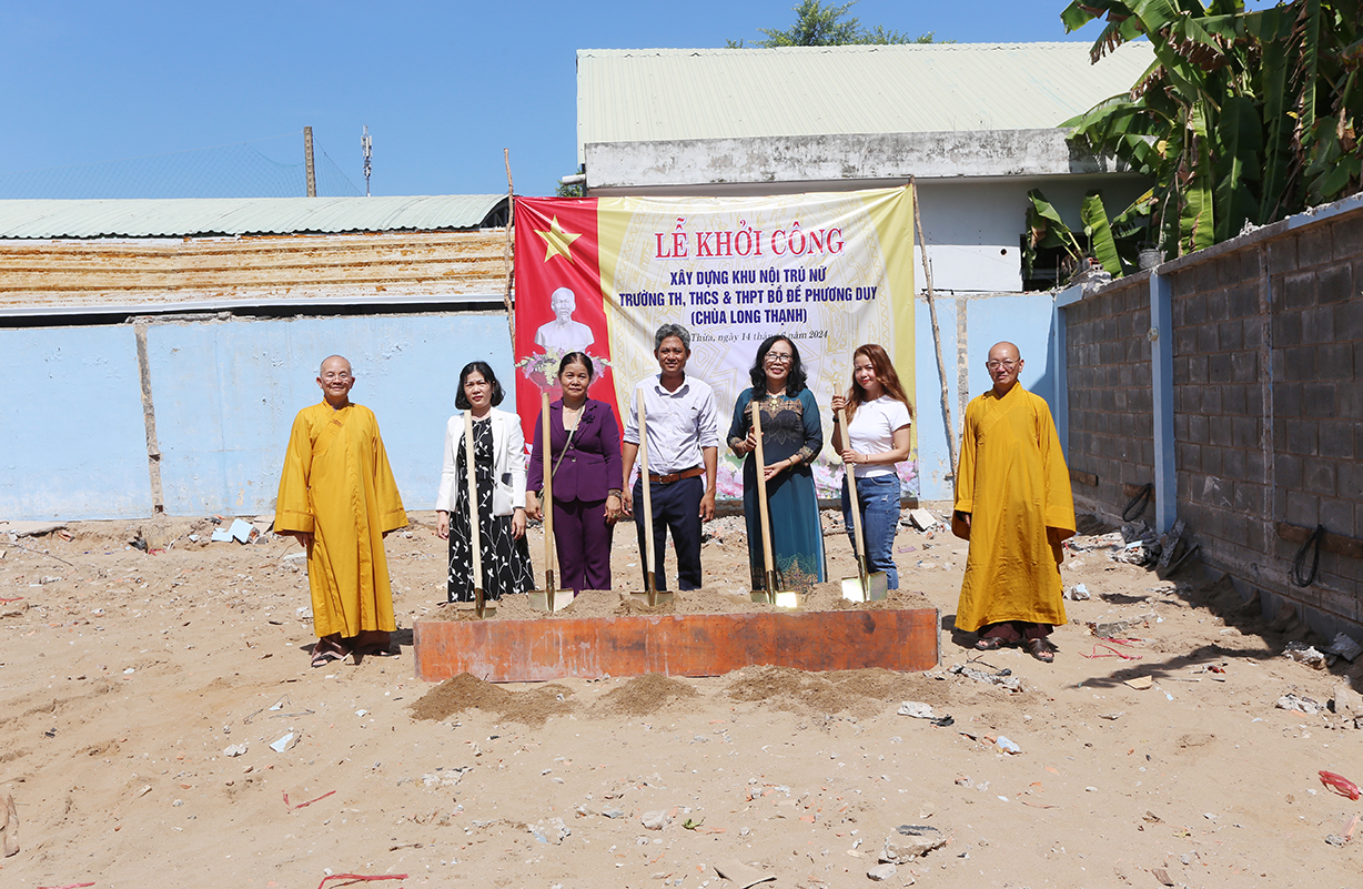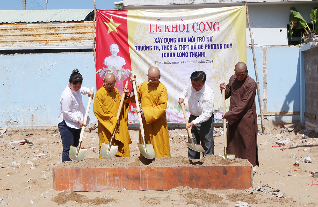Sáng ngày 14/6/2024 (nhằm ngày 09/5/Giáp Thìn), tại Trường Bồ Đề Phương Duy, huyện Thủ Thừa, tỉnh Long An đã long trọng diễn ra Lễ Khởi công xây dựng khu nội trú dành cho học sinh nữ.