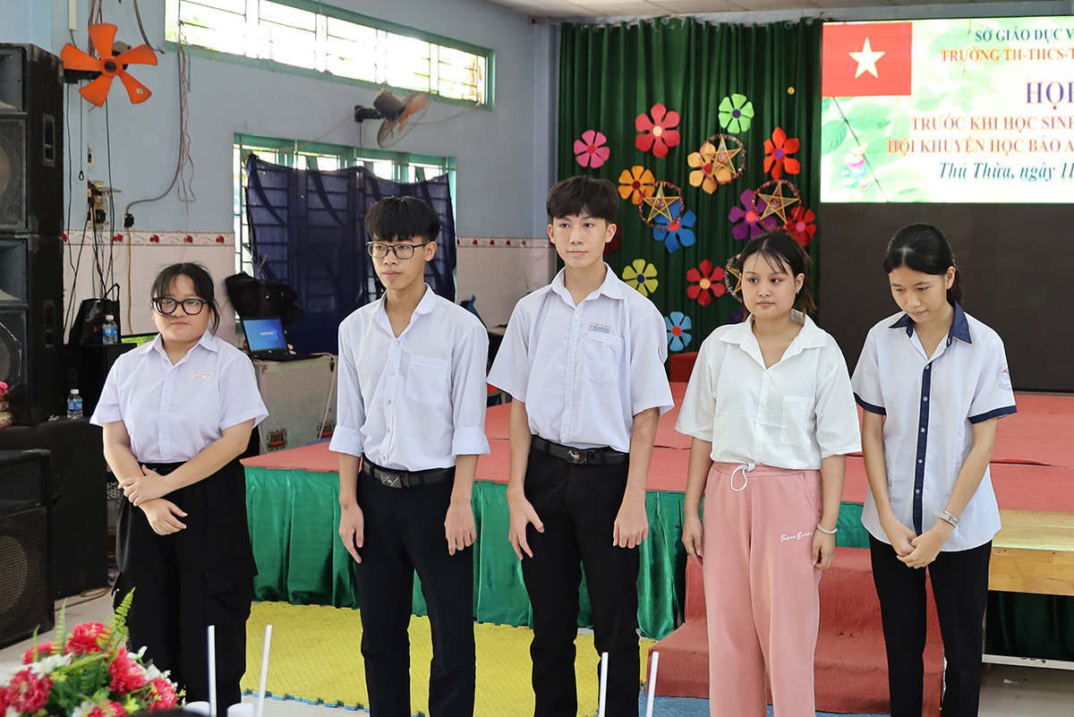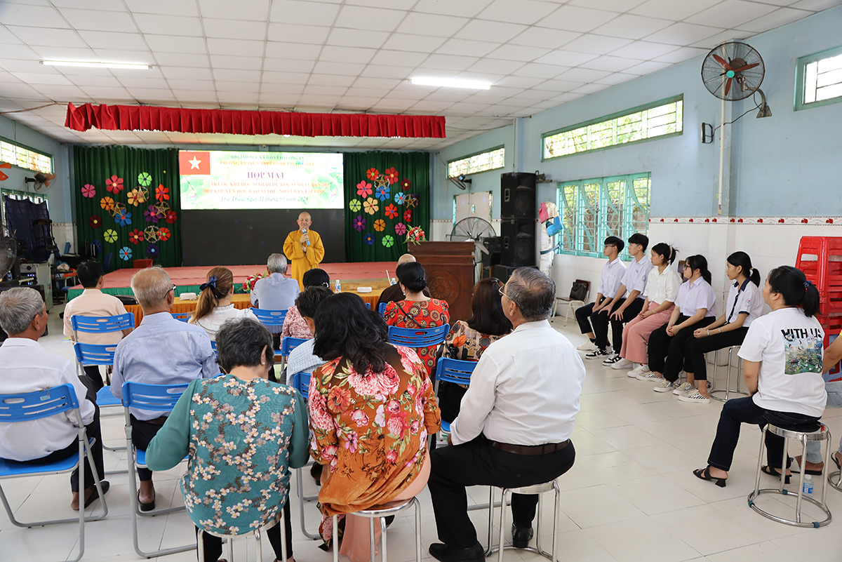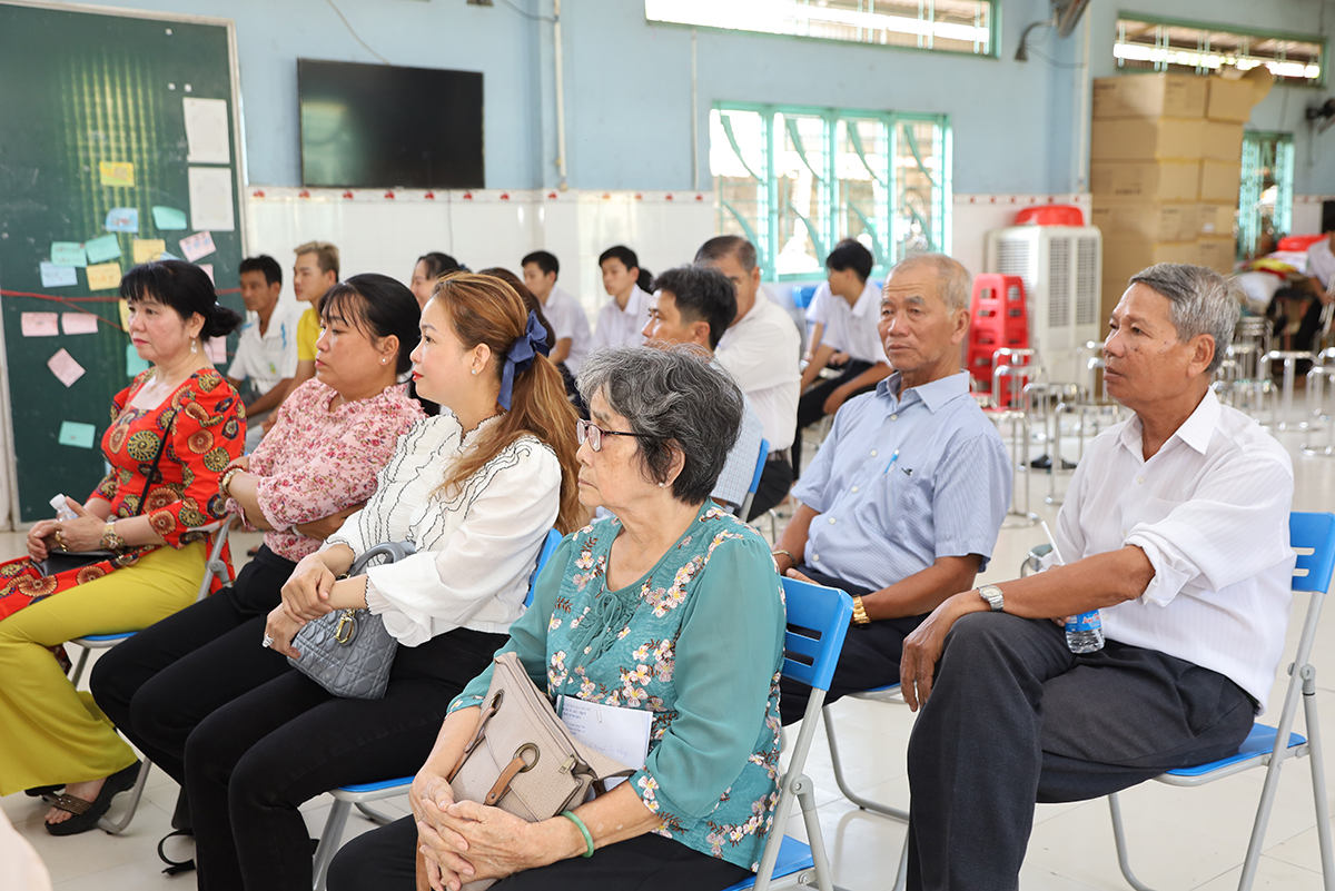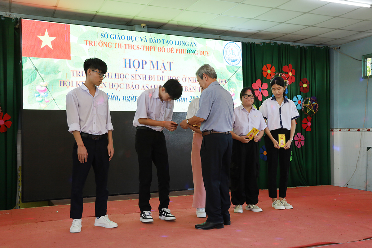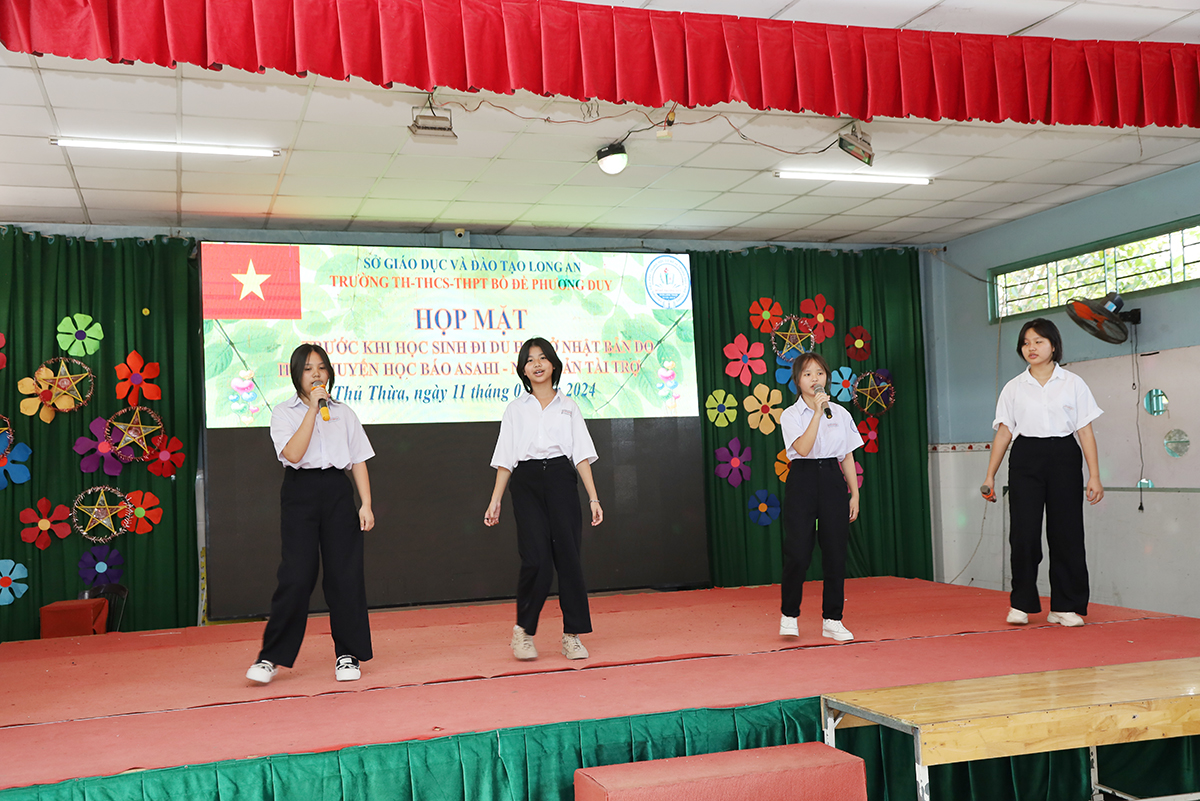 Về phía lãnh đạo nhà trường có cô Huỳnh Thị Thu Loan – Chủ tịch Hội Khuyến học huyện Thủ Thừa, Hiệu trưởng Trường Tiểu học – THCS – THPT Bồ Đề Phương Duy, cùng toàn thể các quý thầy cô là giáo viên đang giảng dạy tại trường, quý phụ huynh và các em học sinh chuẩn bị du học Nhật Bản trở về tham dự.