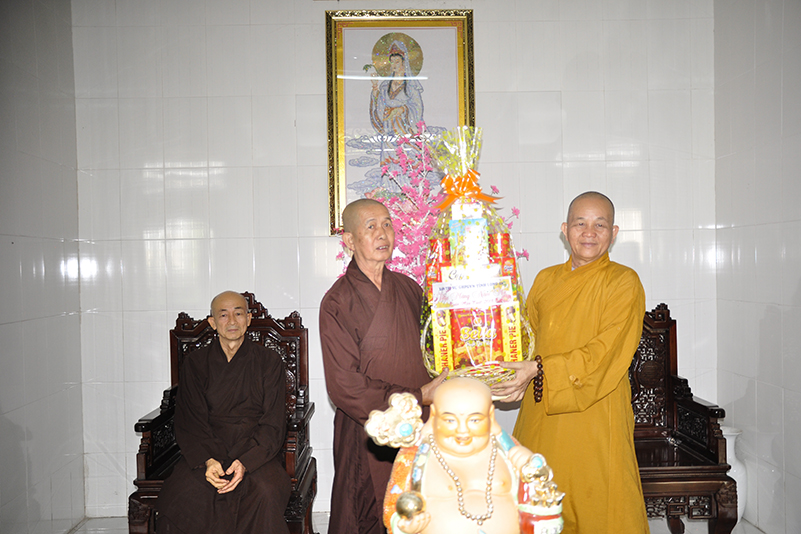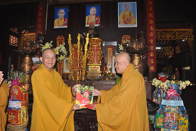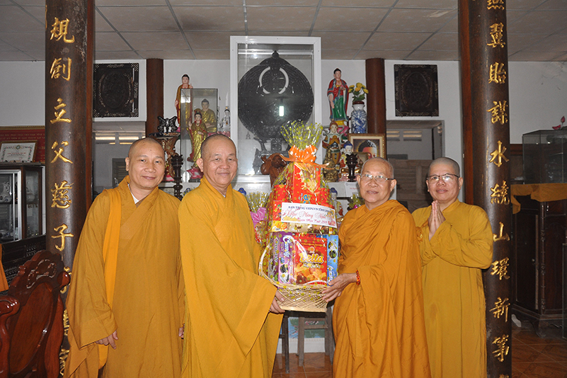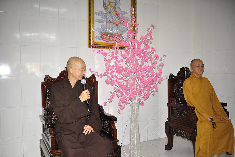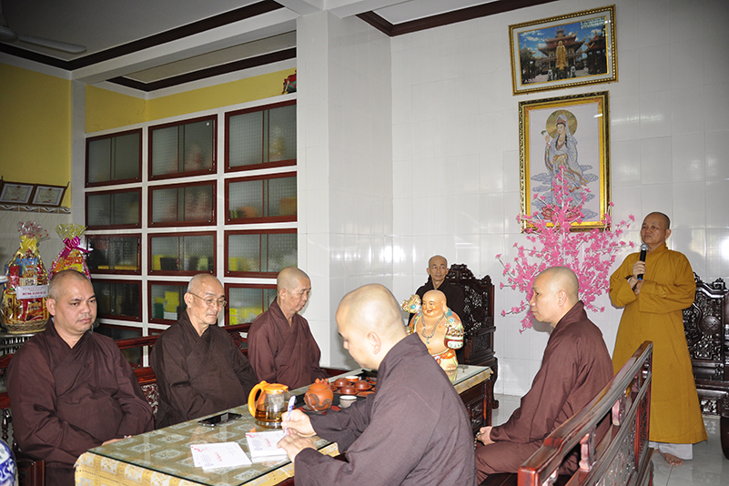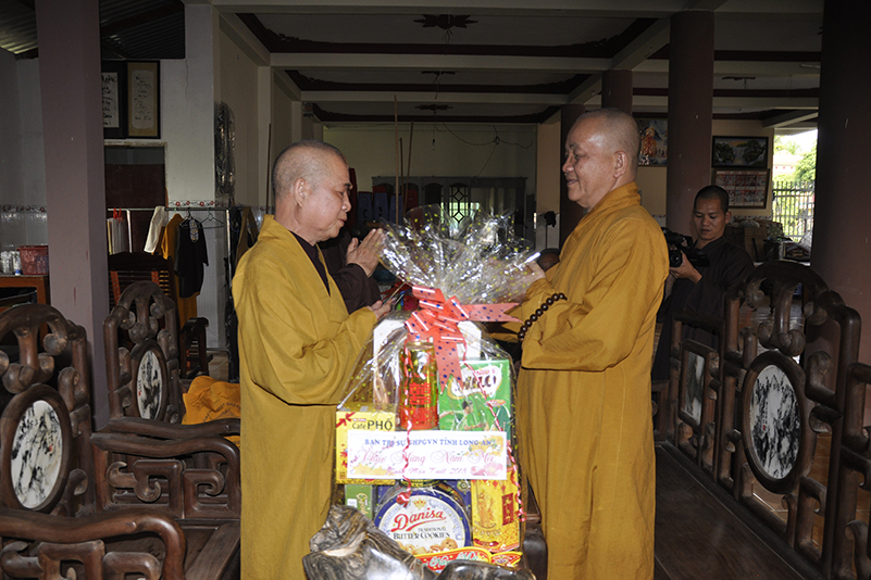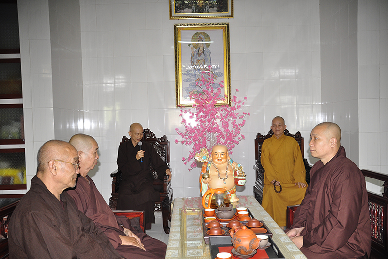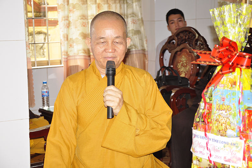Thay lời cho phái đoàn Thường trực BTS Phật giáo tỉnh, Hòa thượng kính nhờ chuyển lời vấn an sức khỏe và khánh xuân đến tất cả quý chư tôn đức và đồng bào Phật tử trong mỗi huyện thị. Chúc chính quyền lãnh đạo địa phương sức khỏe tốt, vạn sự hanh thông, người lãnh đạo có tâm có tầm.