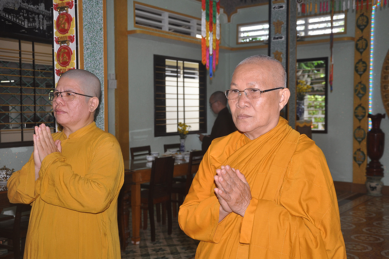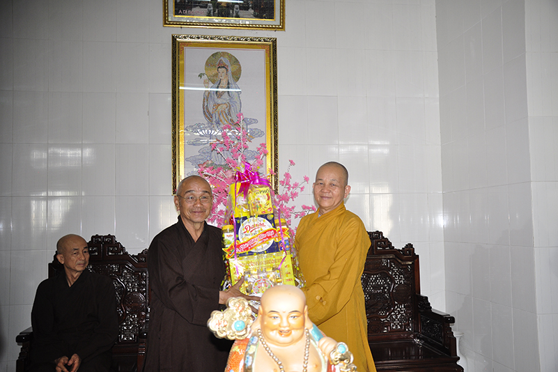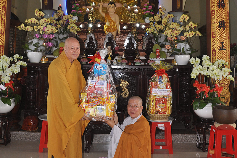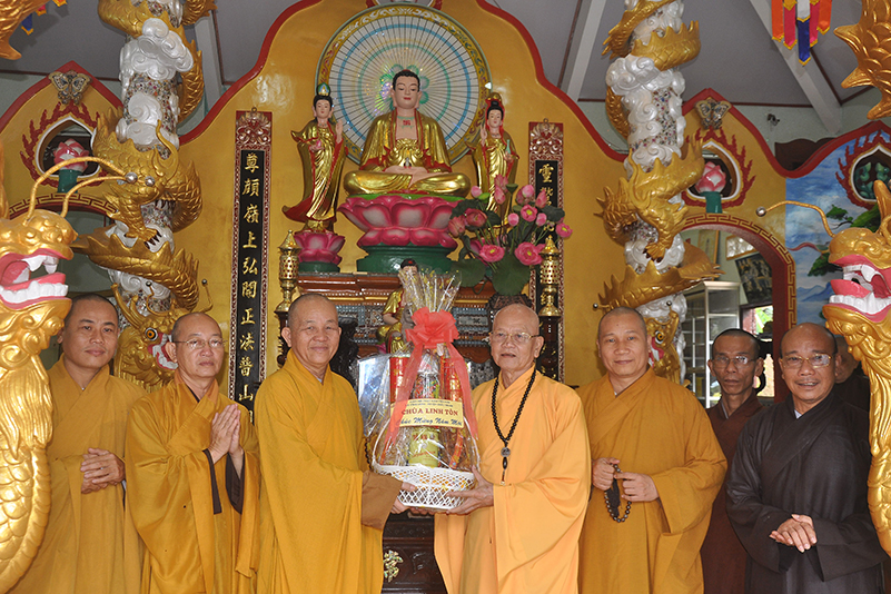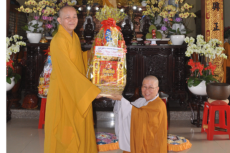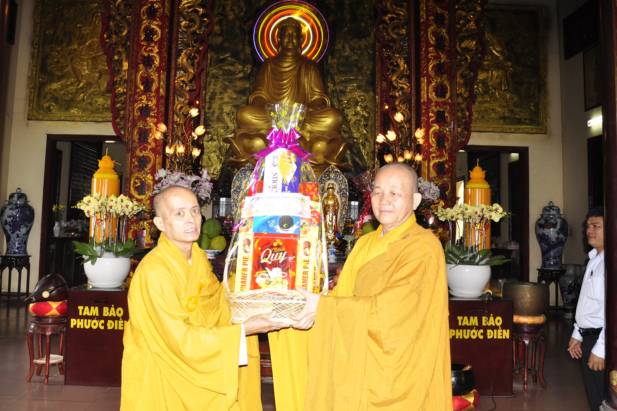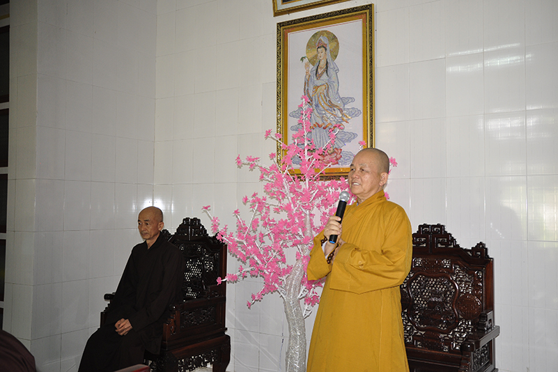 Thay lời cho phái đoàn Thường trực BTS Phật giáo tỉnh, Hòa thượng kính nhờ chuyển lời vấn an sức khỏe và khánh xuân đến tất cả quý chư tôn đức và đồng bào Phật tử trong mỗi huyện thị. Chúc chính quyền lãnh đạo địa phương sức khỏe tốt, vạn sự hanh thông, người lãnh đạo có tâm có tầm.