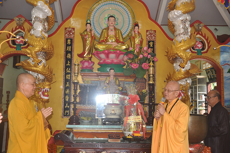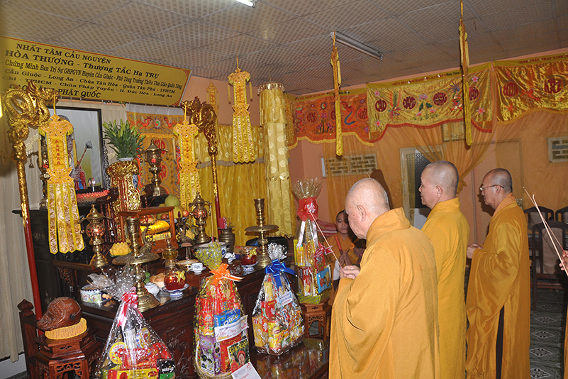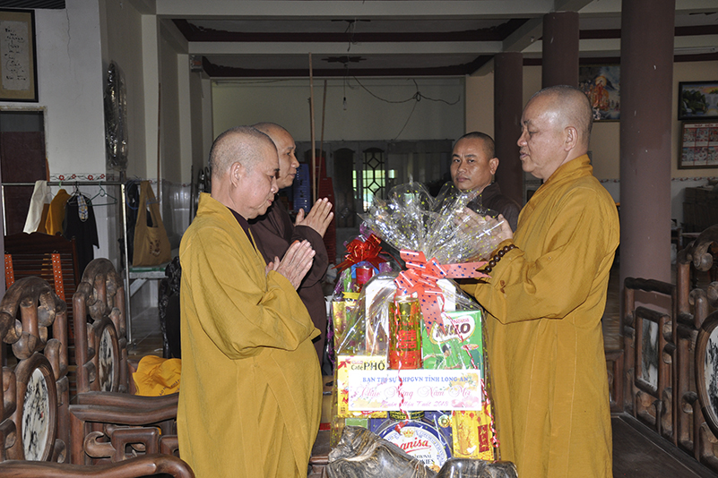Trưởng đoàn do  HT Thích Minh Thiện – Ủy viên HĐTS, Phó Trưởng ban Hoằng pháp TW, Trưởng ban Trị sự GHPGVN tỉnh Long An, cùng quý chư tôn giáo phẩm Thường trực BTS GHPGVN tỉnh Long An tổ chức.