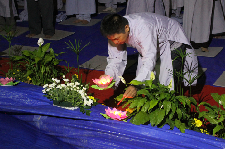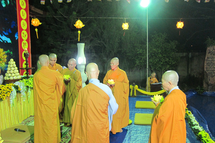Buổi lễ diễn ra trong không khí trang nghiêm, dưới sự hướng dẫn của Đại đức Trụ Trì Thích Tắc Tấn. Các nghi thức niêm hương, nghi thức truyền đăng, ngồi thiền noi theo gương Đức Từ Phụ, sám Phật Thành Đạo,… được thực hiện tuần tự theo chương trình.