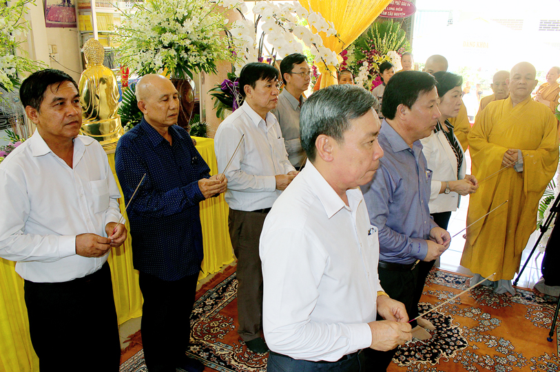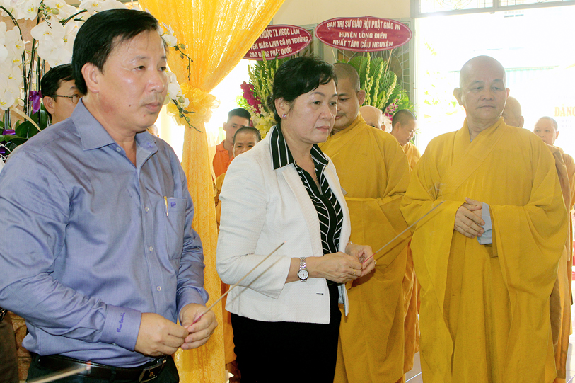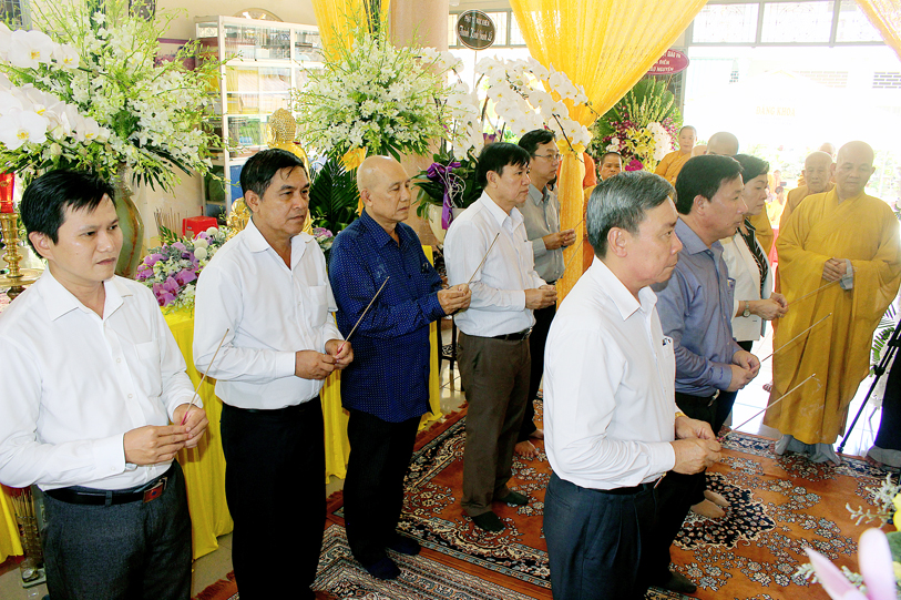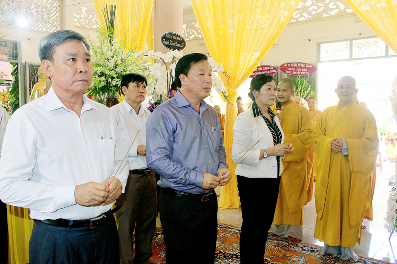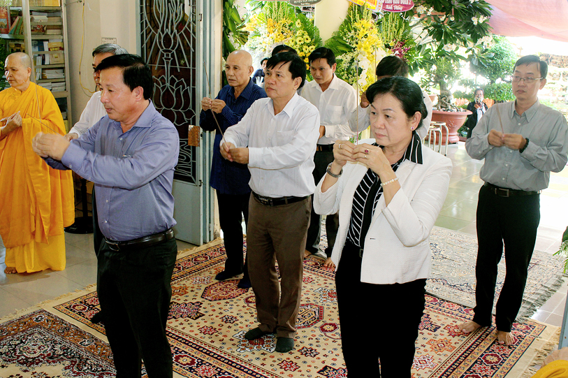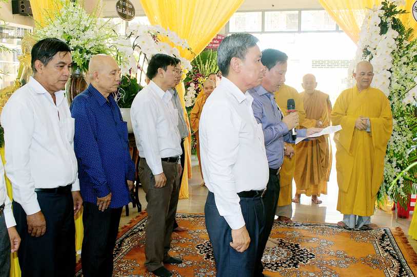 Đại diện Tỉnh ủy – Hội đồng Nhân dân – Ủy ban nhân dân – Ủy ban Mặt trận Tổ quốc Việt Nam tỉnh Long An, Sở Nội Vụ – Ban Tôn giáo tỉnh Long An ông Nguyễn Văn Út có lời chia sẻ sự viên tịch của Ni trưởng là sự mất mát lớn lao của Phật giáo Long An. Ông cũng thay mặt tỉnh ghi nhận nhiều đóng góp to lớn của Ni Trưởng cho tỉnh Long An nói chung và Phật giáo Long An nói riêng trên tinh thần “vì đạo pháp, vì dân tộc”.