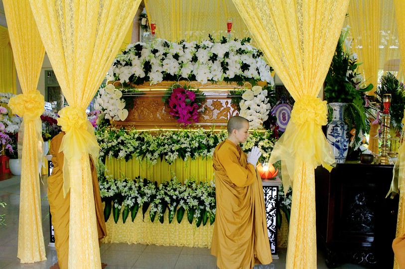 Sau lời phát biểu của phái đoàn Tỉnh ủy, Hòa thượng Thích Minh Thiện – Ủy viên HĐTS, Phó Trưởng Ban Hoằng pháp TW, Trưởng Ban Trị sự Phật giáo tỉnh Long An trân trọng ghi nhận sự thân lâm của phái đoàn Tỉnh ủy đến viếng tang lễ trong tinh thần đạo vị. Nhân đây, Hòa thượng cũng nhắc lại công hạnh của Ni trưởng lúc sinh tiền, nhất là hạnh nguyện độ sanh và xây dựng khối đại đoàn kết dân tộc. Cuối lời, Hòa thượng chúc phái đoàn thân khỏe, tâm an, hoàn thành tốt nhiệm vụ được Đảng và nhân dân tin tưởng giao phó.