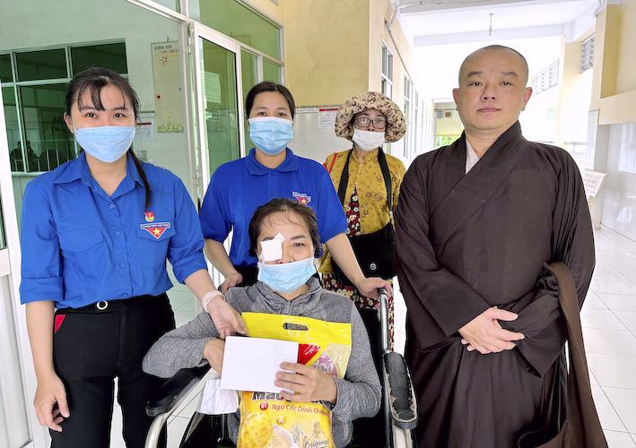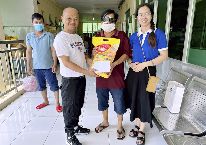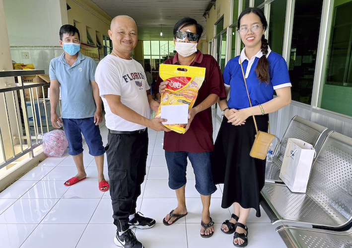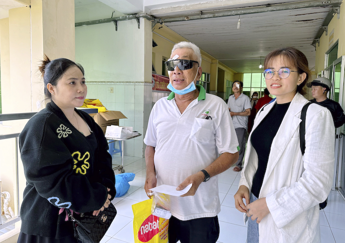 Sau khi được khám và mổ mắt từ thiện, mỗi bệnh nhân được nhận một phần quà hỗ trợ gồm tiền mặt một trăm nghìn đồng (100.000đ), mắt kính và bột ngũ cốc.